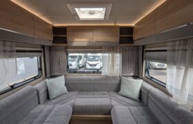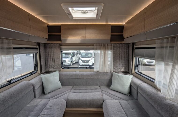 Built on the reliable Fiat Ducato chassis, this lovely vehicle features a powerful 2.3L Euro 6 engine with a smooth 9-speed automatic gearbox. This motorhome with less than 17,000 miles on the clock this motorhome could be the perfect option for you! Driving is made effortless thanks to cruise control, cab air conditioning, a panoramic skylight, reversing camera, and stylish alloy wheels. Inside, the layout is both practical and luxurious. At the rear, there is a U-Shaped Lounge which can be converted into a large double bed using the cushions. The lounge itself is bright and sociable. In the front of the motorhome there is lots of storage above the cab, with swivel cab seats, too.