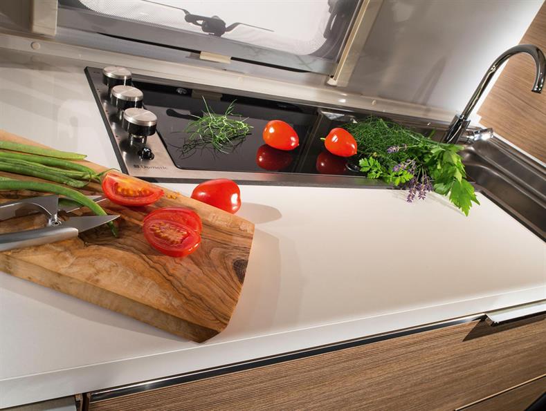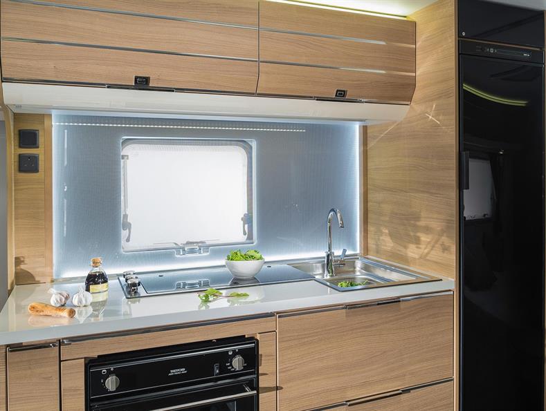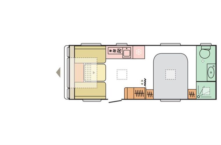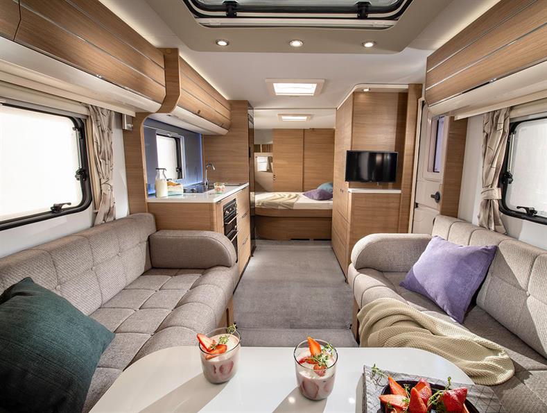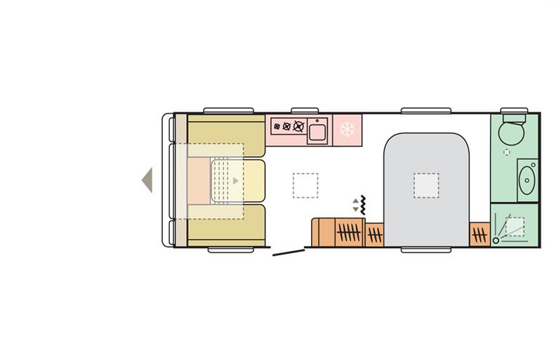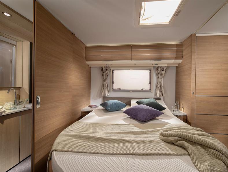 The Isonzo is a spacious and well equipped 8ft wide model from Adria, with a large transverse island bed & end washroom.