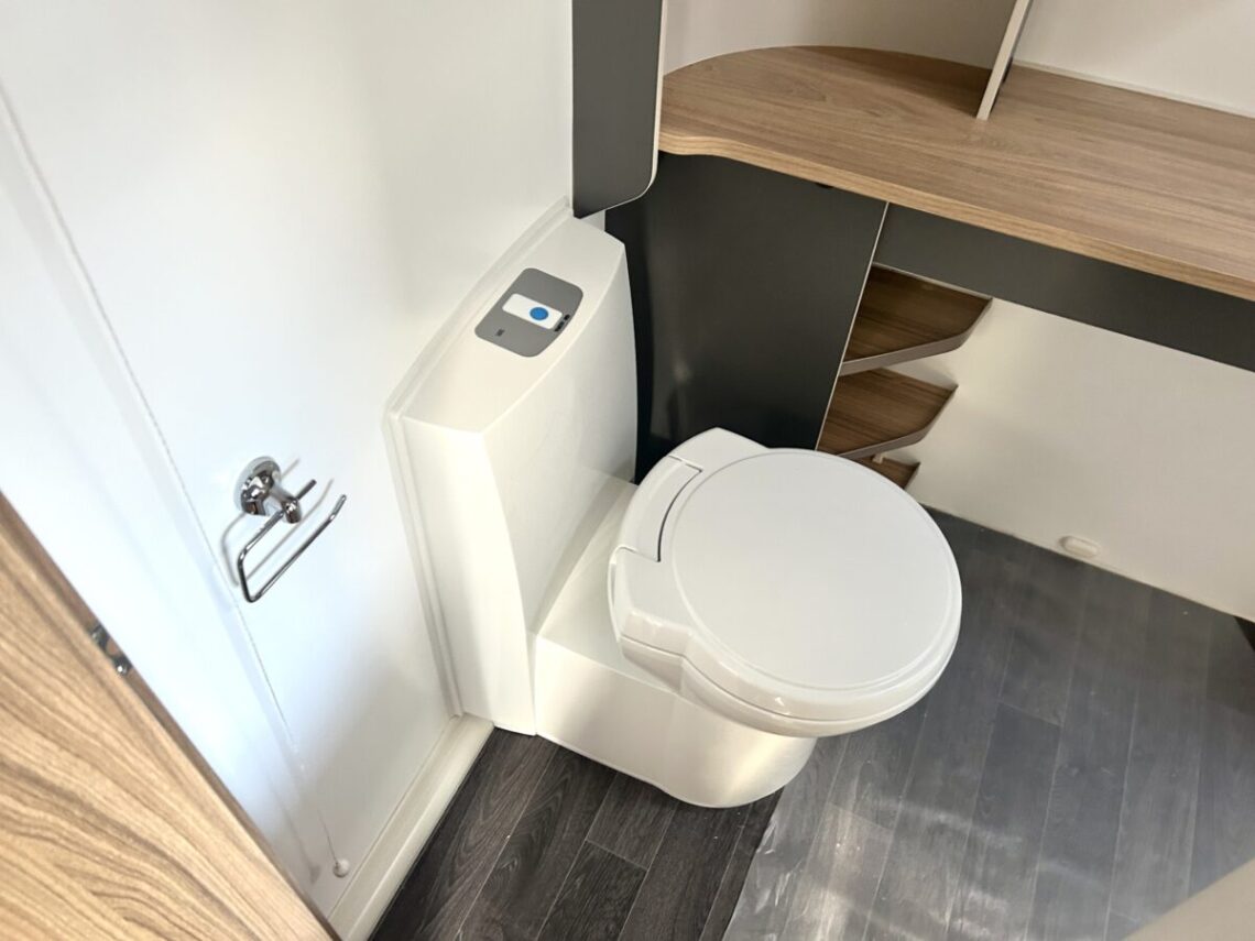 The Discovery D4-4 features a fixed bed and a full width end washroom in a compact, lightweight bodyshell