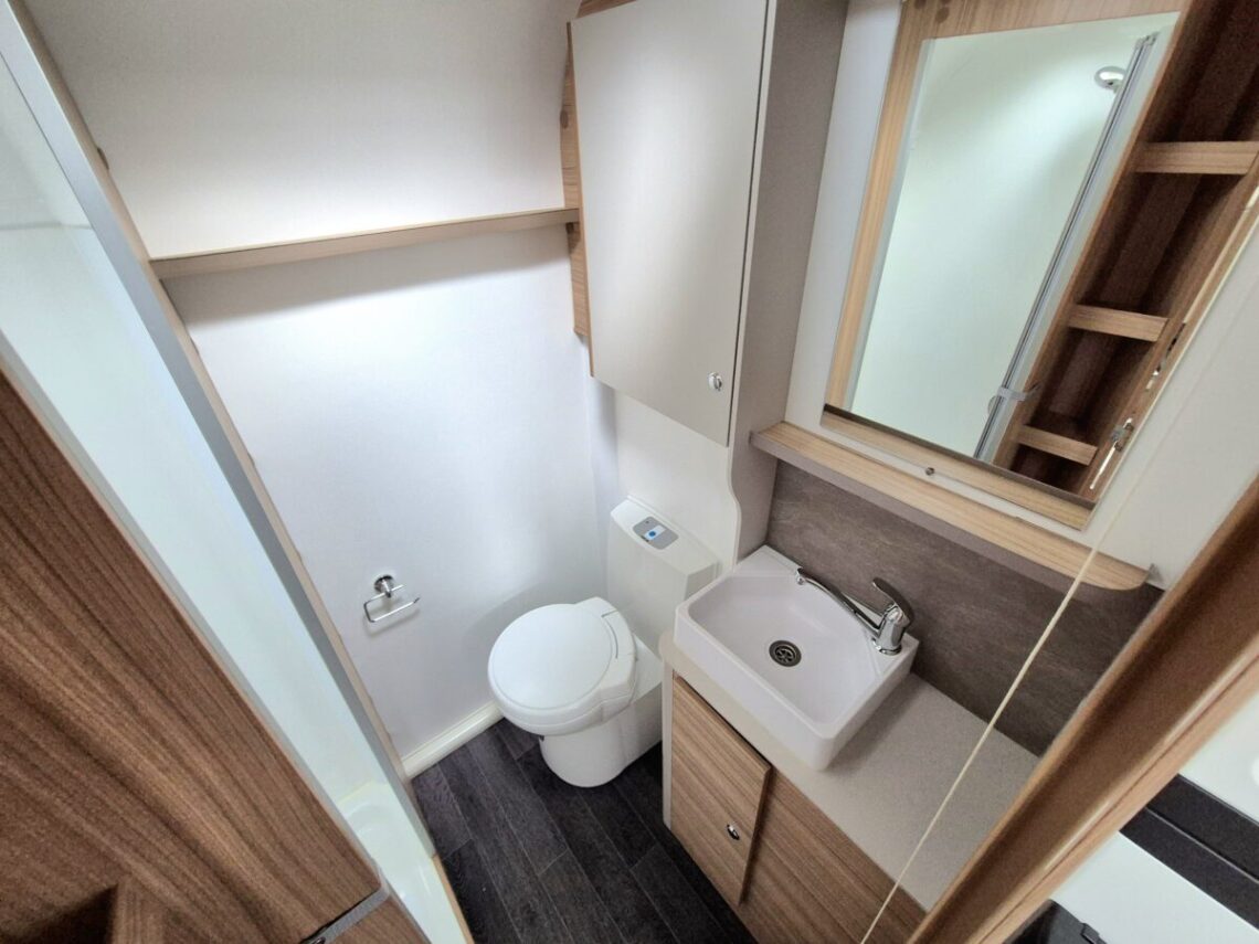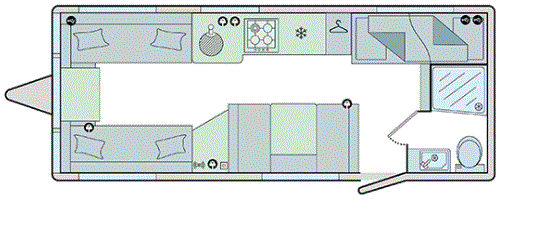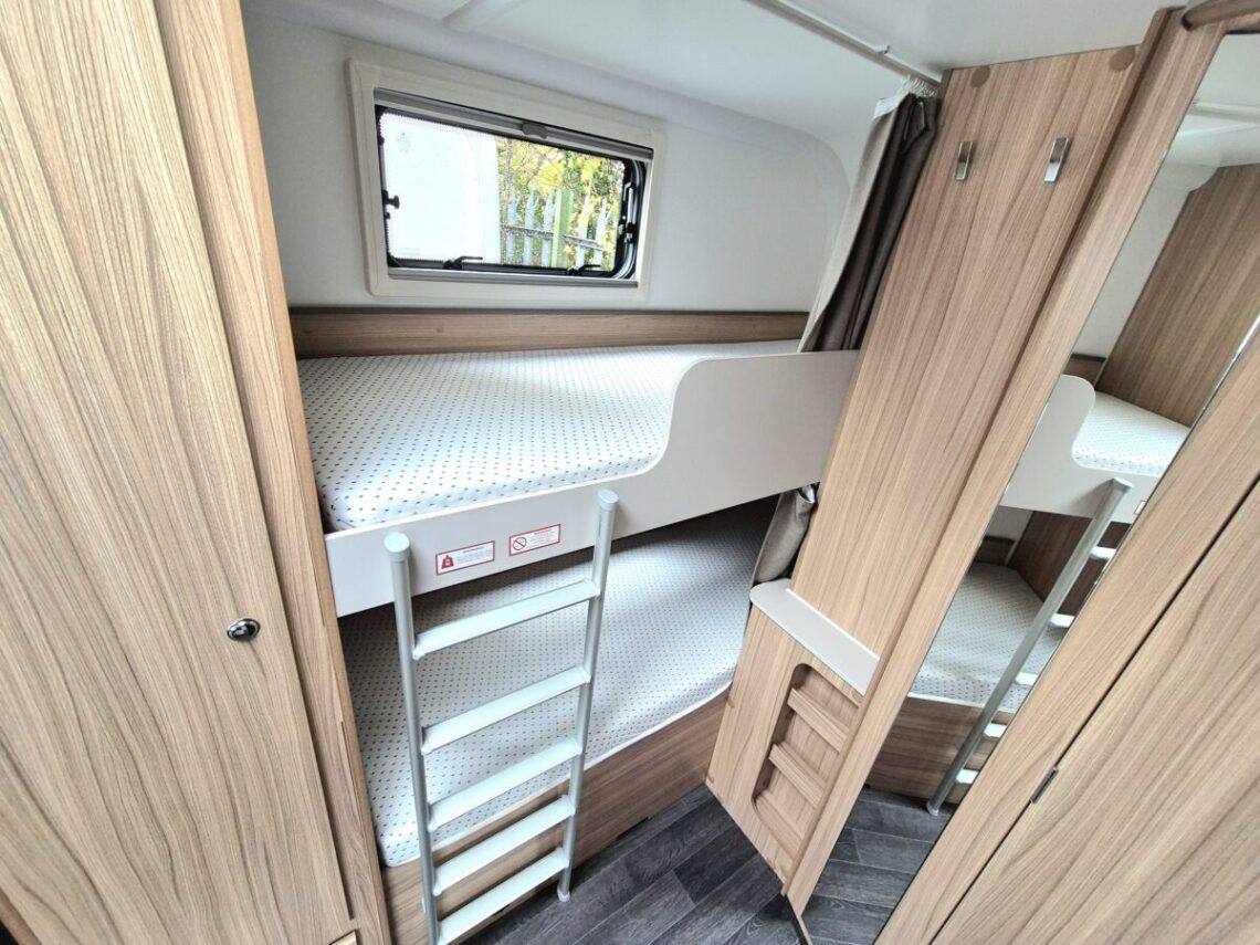 The GT75 Ancona offers a very spacious 8ft wide bodyshell to accommodate 5 people, with dedicated fixed bunks, side dinette & corner end washroom.