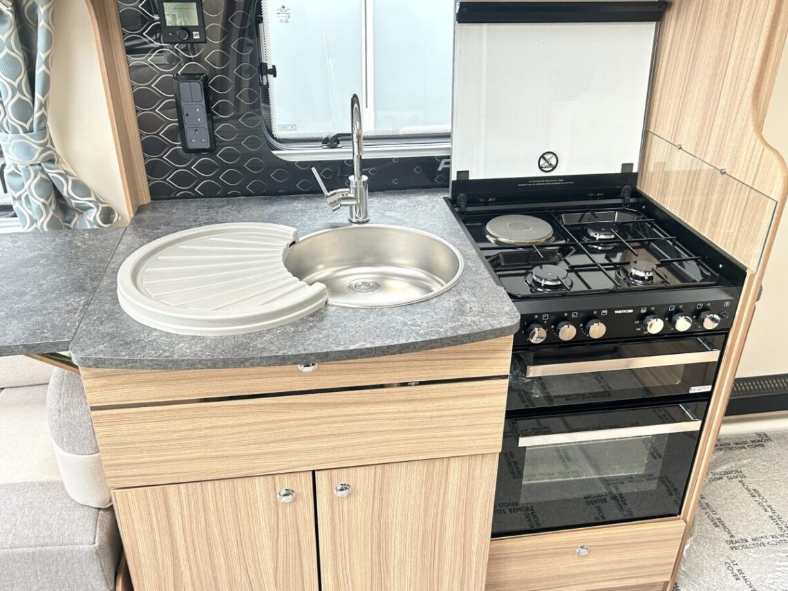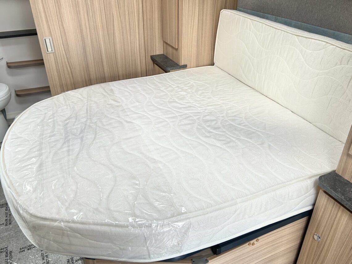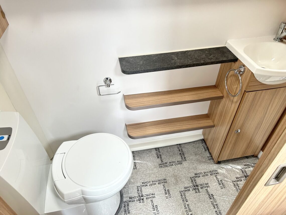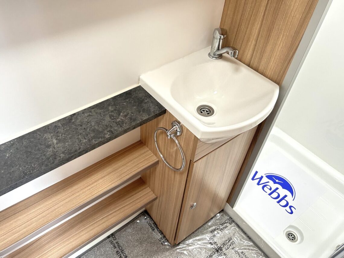 The Brindisi features a spacious 8ft wide design, with a ‘G’ shaped lounge, transverse island bed, and a full-width end washroom.