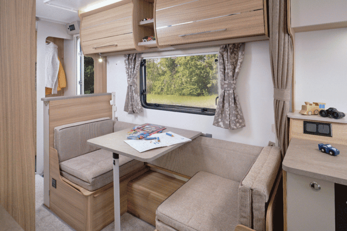 ARRIVING SOON! (end Oct) The GT75 762 is a very spacious 6 berth twin axle model with dedicated fixed bunks and an end washroom.