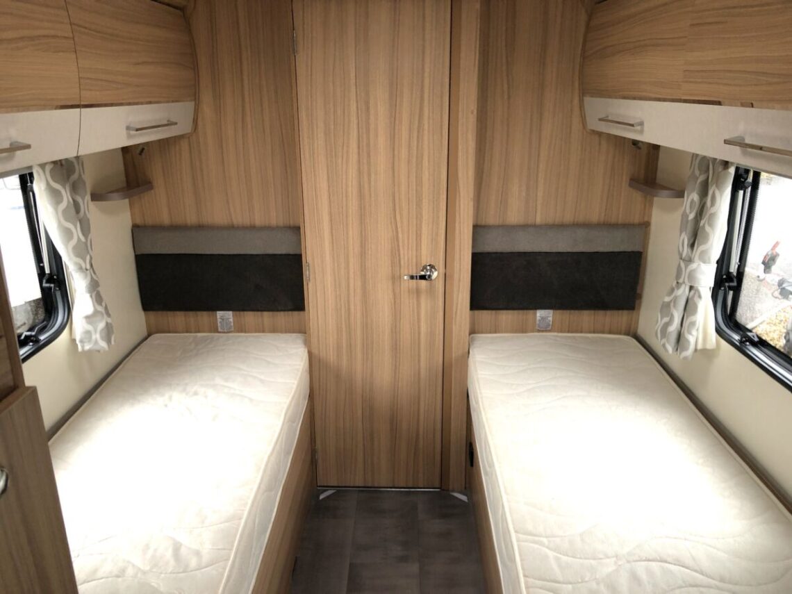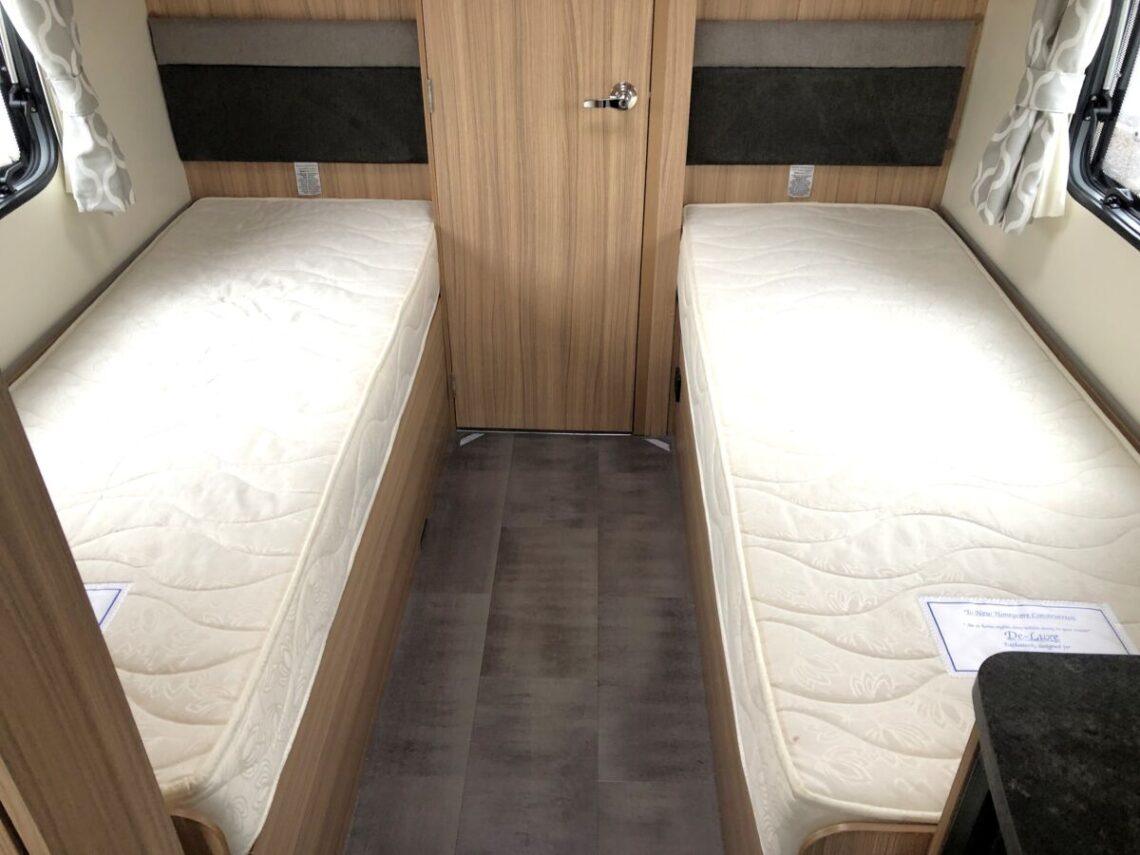 The 642 is a spacious lightweight model featuring twin fixed single beds and an end washroom