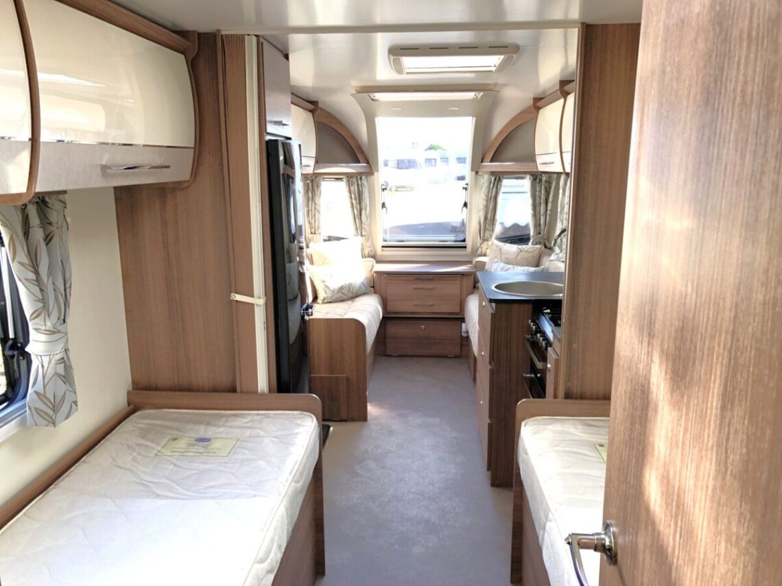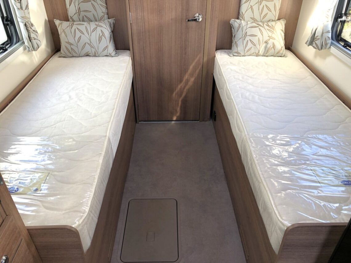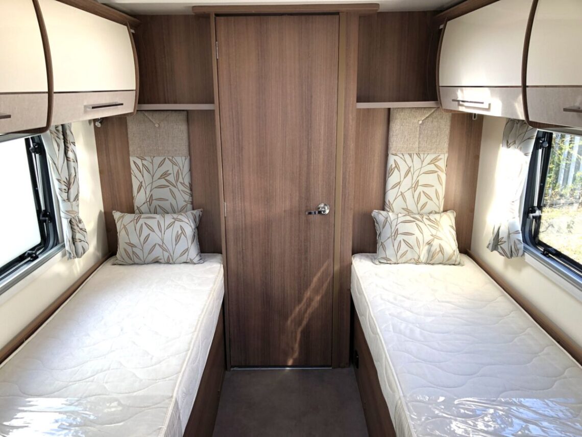 The Cadiz is a sought-after single axle model with twin fixed single beds, end washroom and ‘tower’ fridge & freezer