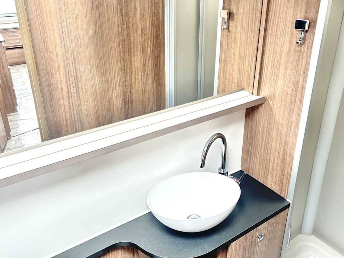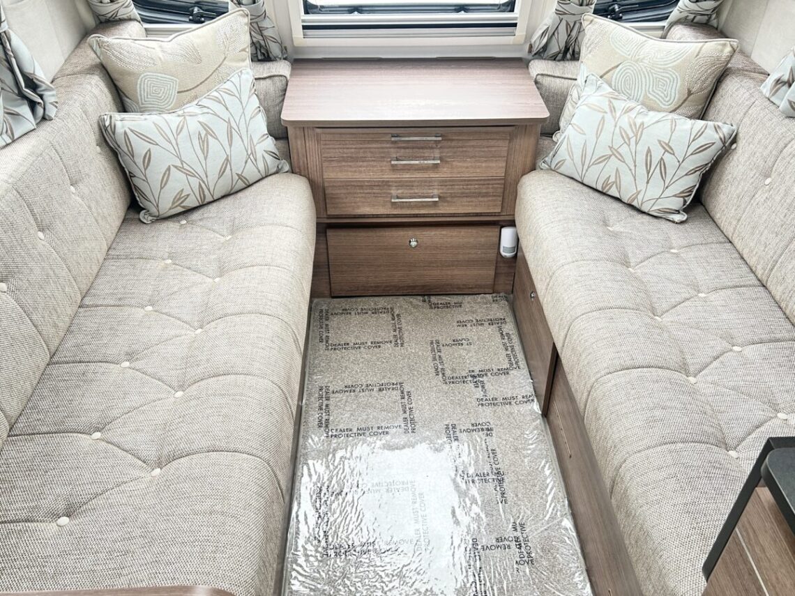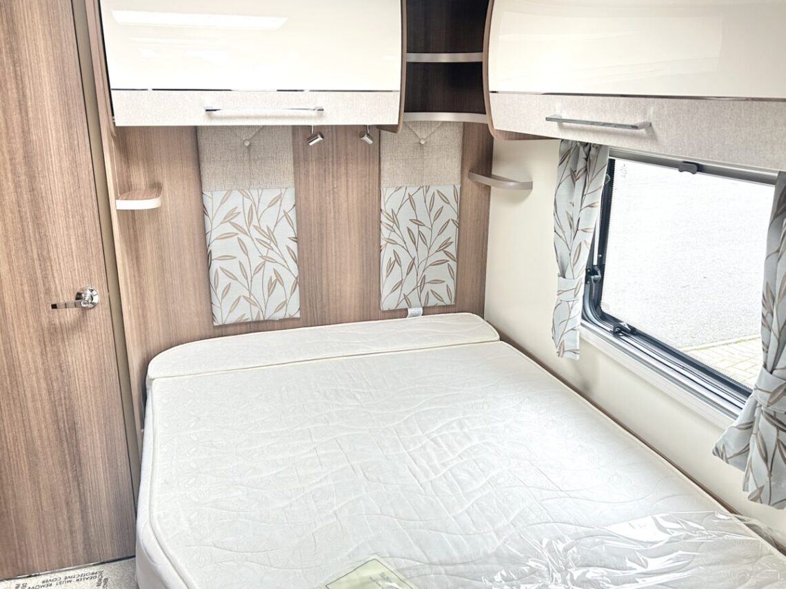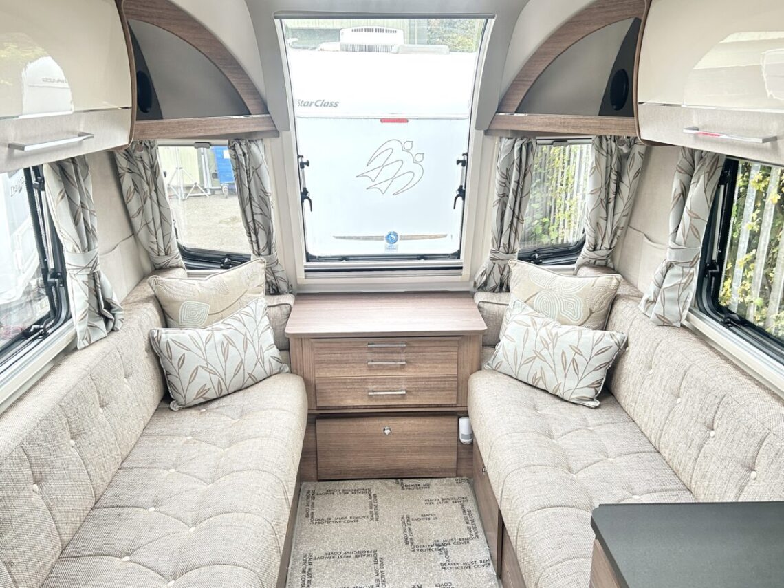 The Black Valencia is a spacious 4 berth model featuring a fixed side double bed and a full-width end washroom.