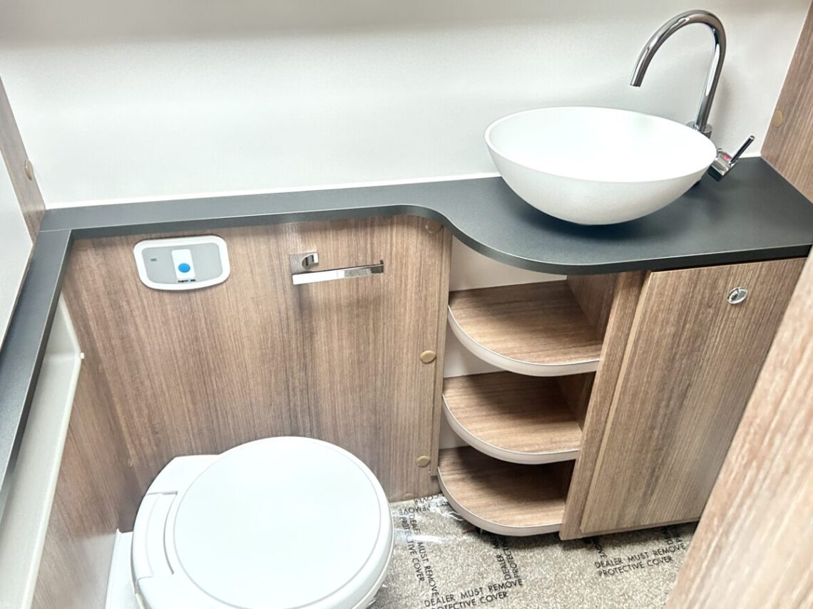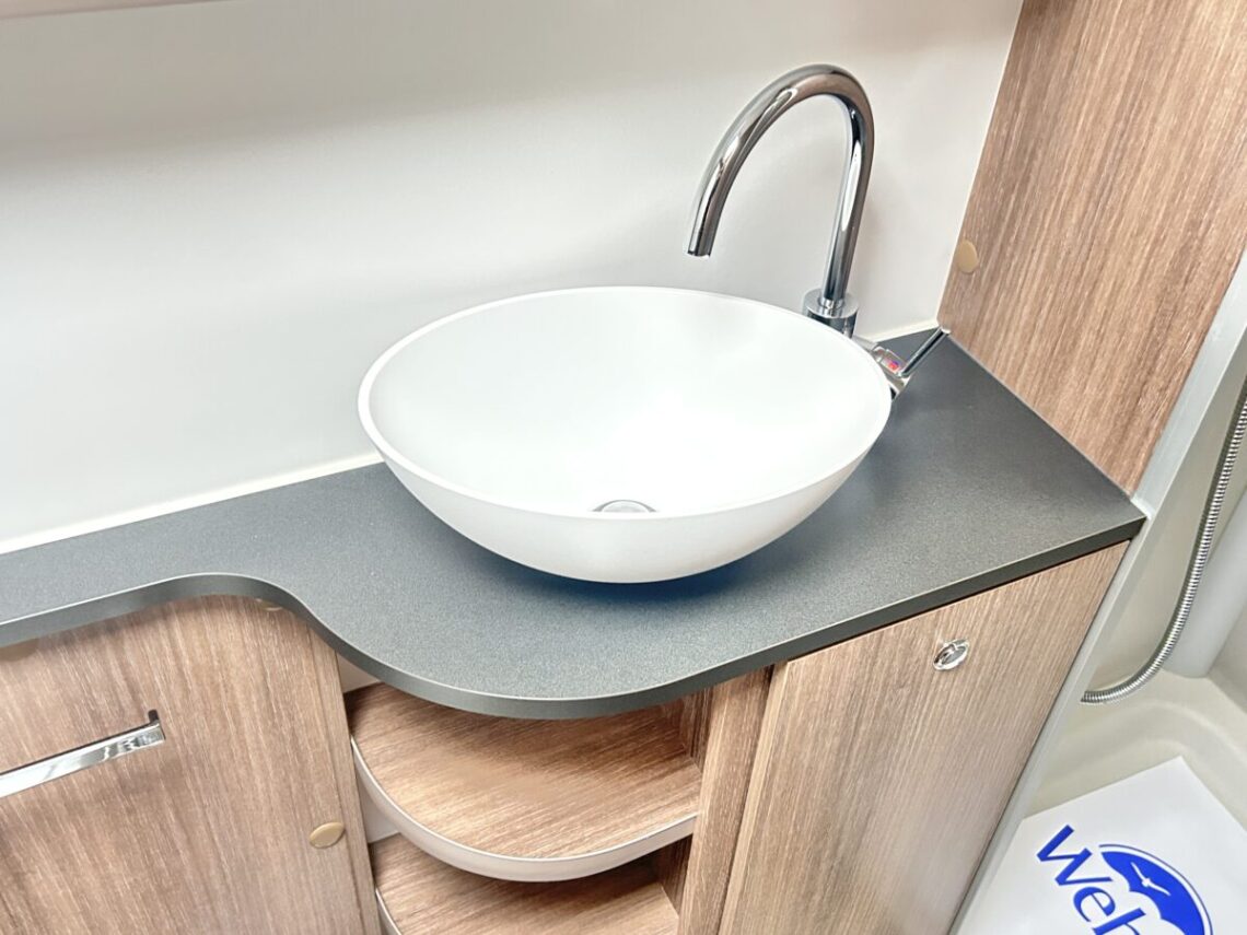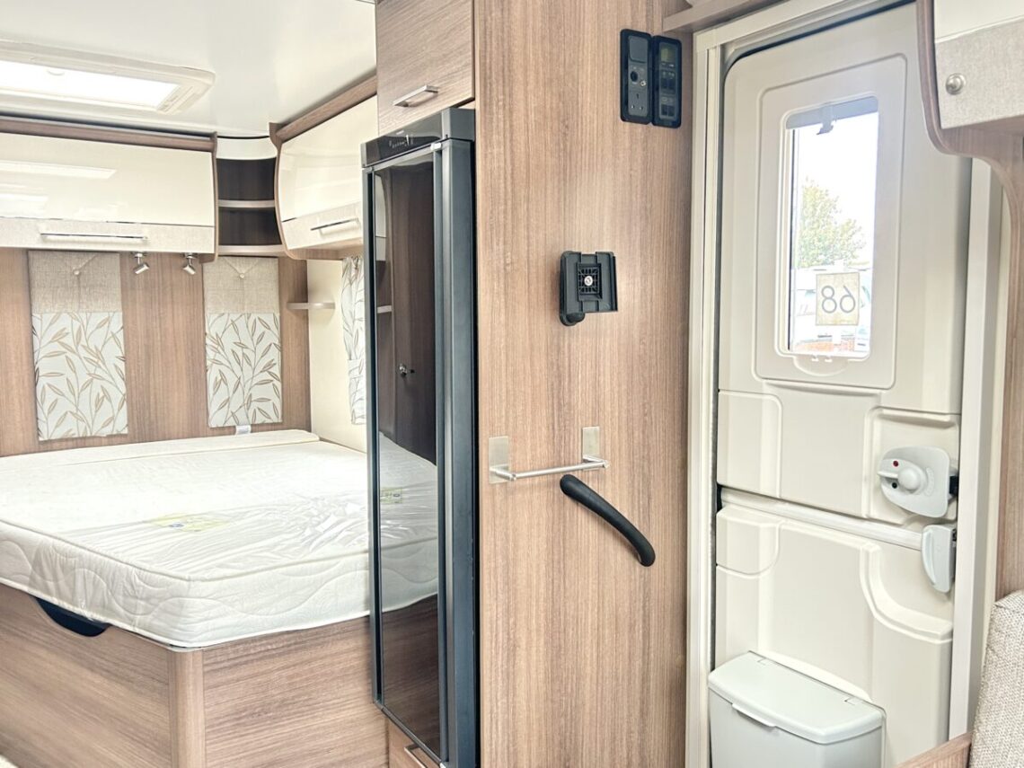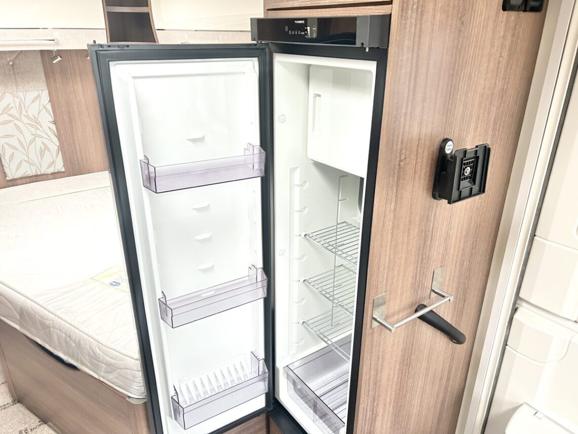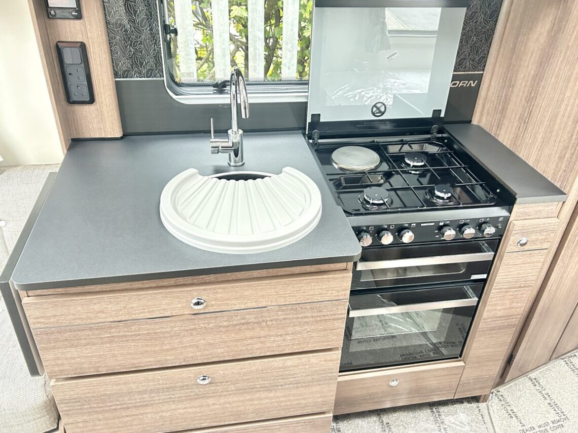The Black Valencia is a spacious 4 berth model featuring a fixed side double bed and a full-width end washroom.
