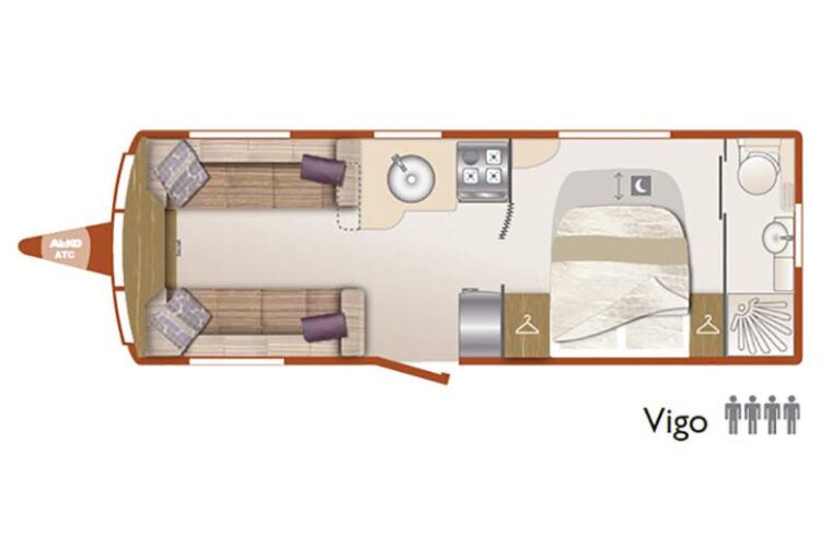 The Unicorn S3 Vigo is a luxury single axle model featuring a transverse island bed and a full width end washroom