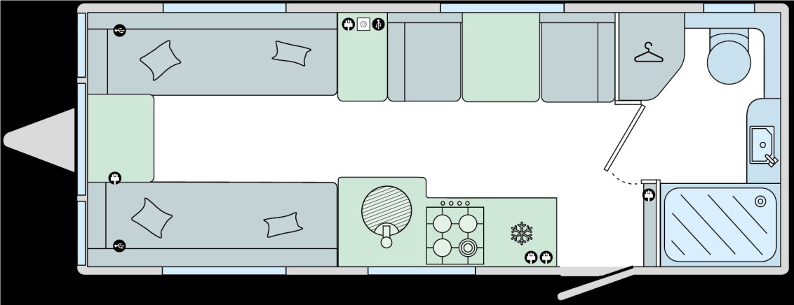 The S5 Madrid is a spacious 4 berth model with an open side dinette design & luxury end washroom