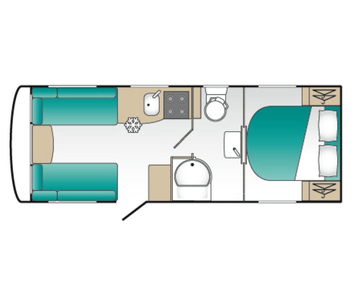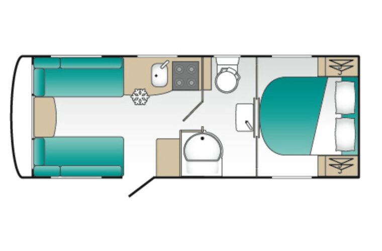 The 545 is a sought-after single axle model featuring the ever-popular fixed rear island bed and central washroom