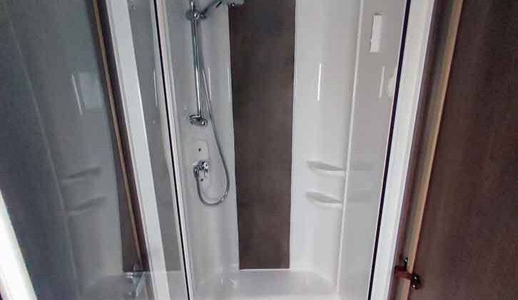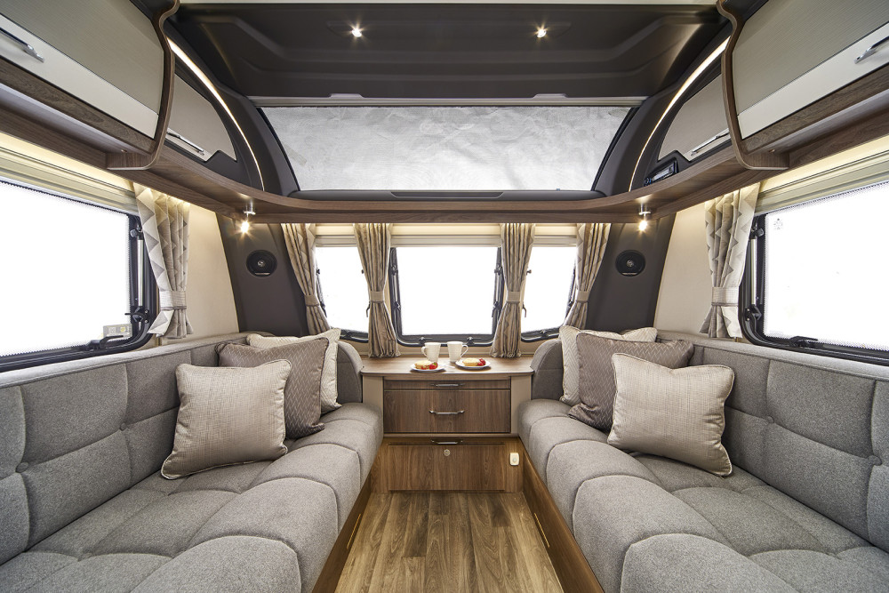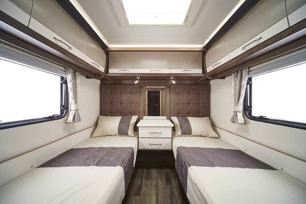 This luxury model from Coachman is ideal for couples or families, with the generous fixed twin single beds measuring 6’4″ x 2’10” thanks to the 8ft wide bodyshell.