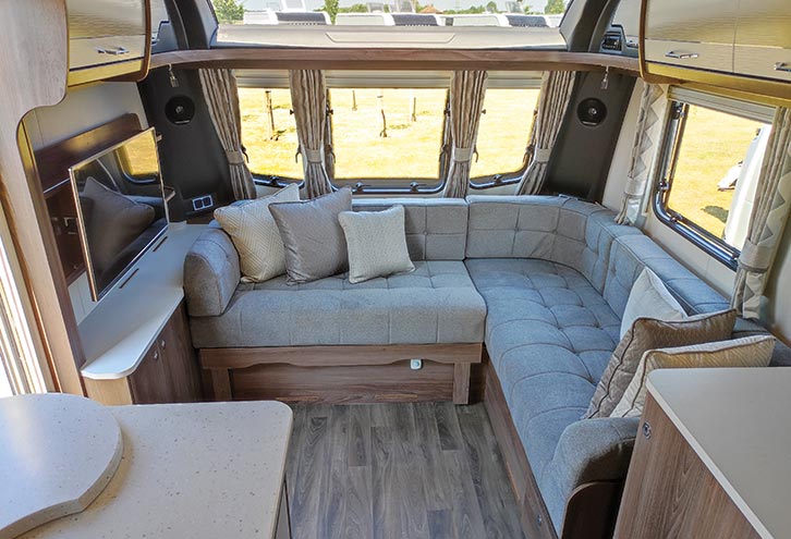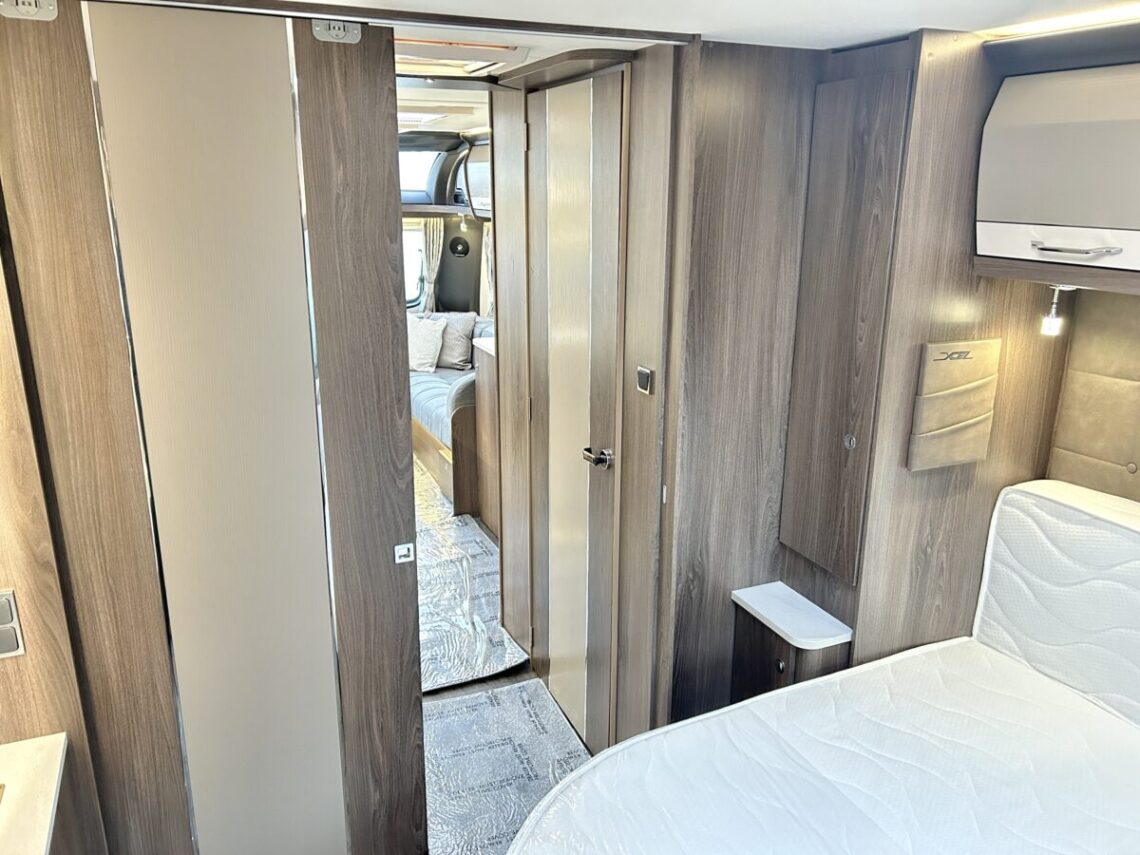 The Laser Xcel 855 is a highly sought-after rear island bed model with central washroom and spacious ‘L’ shaped lounge, built on an 8ft bodyshell.
