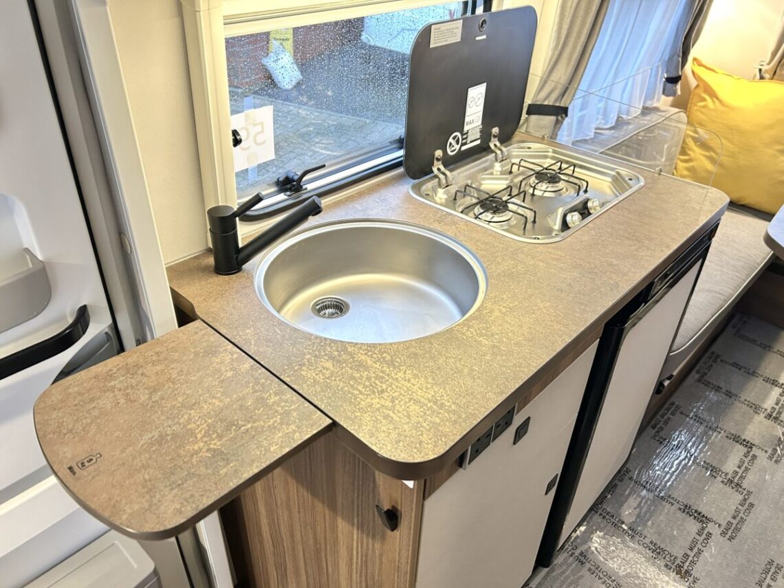 The Triton 430 is a rare ‘pop-top’ model with front and rear lounges and a central washroom