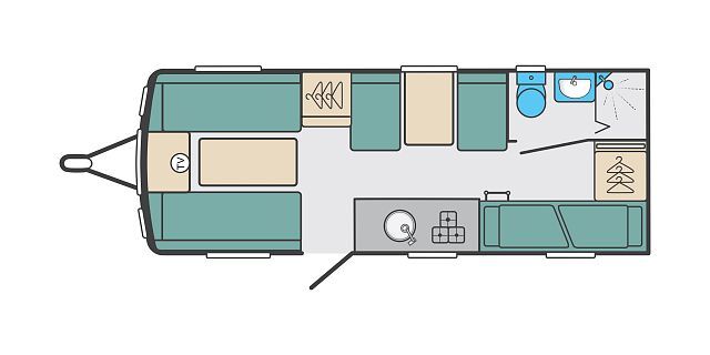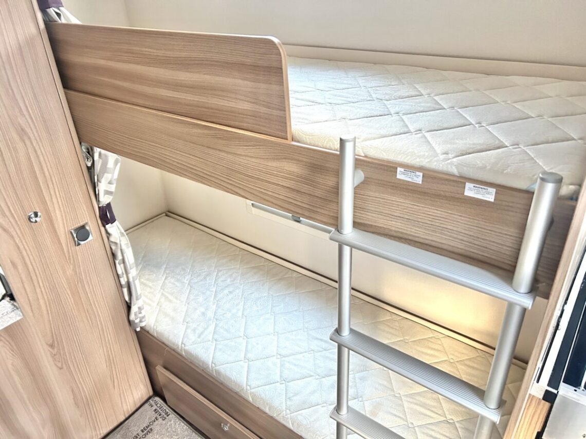 The Maidwell is a spacious 6 berth model featuring fixed bunk beds, a side dinette and an end washroom