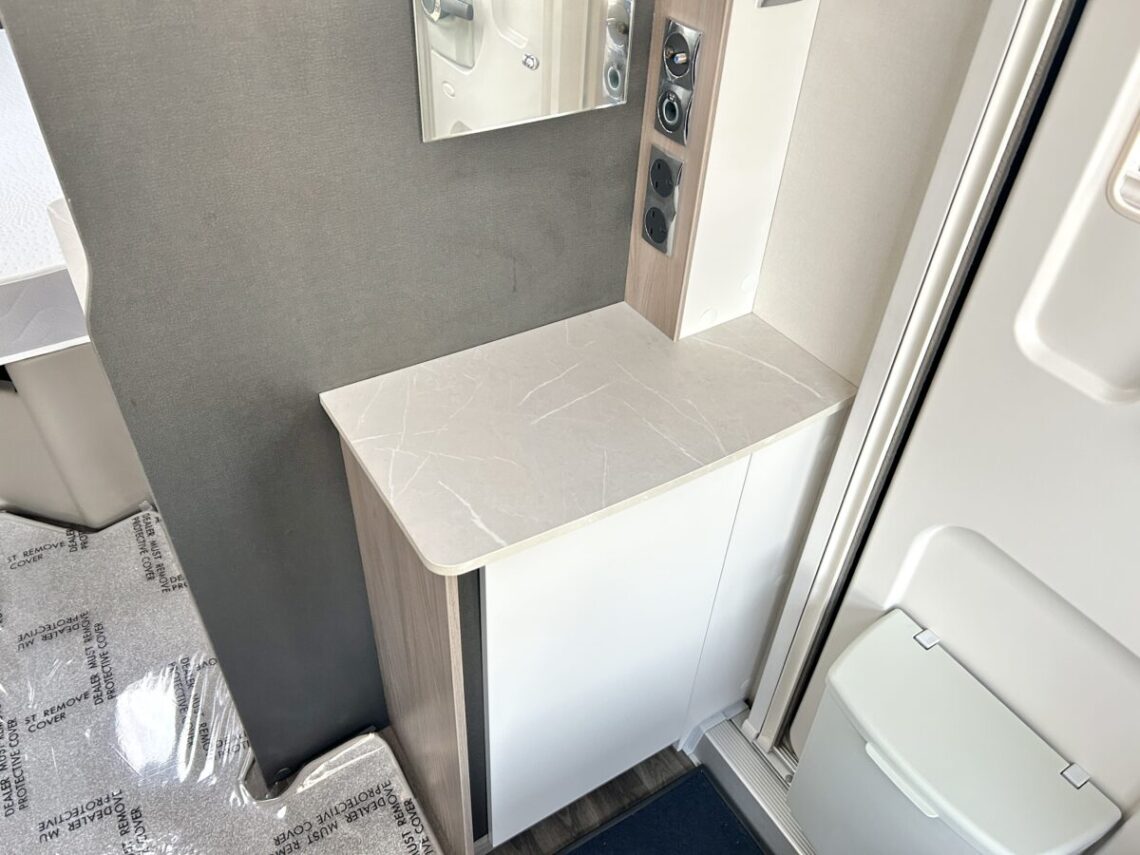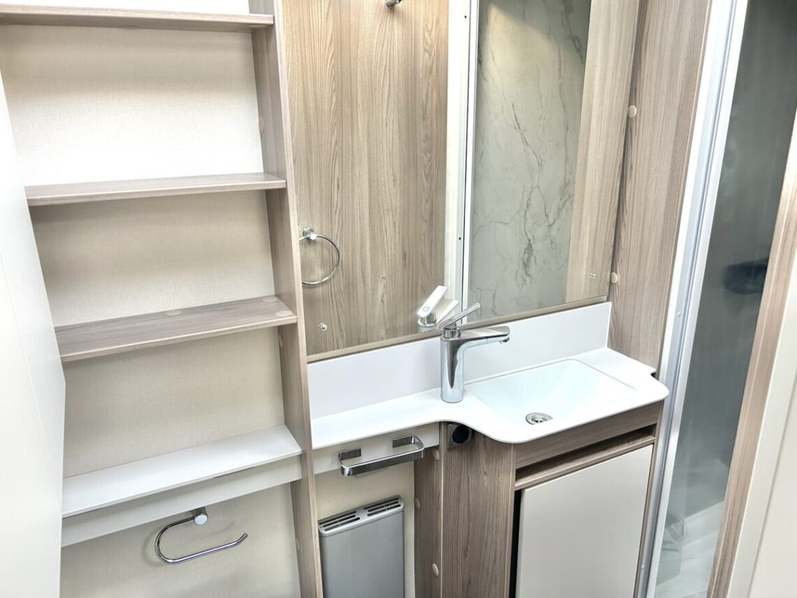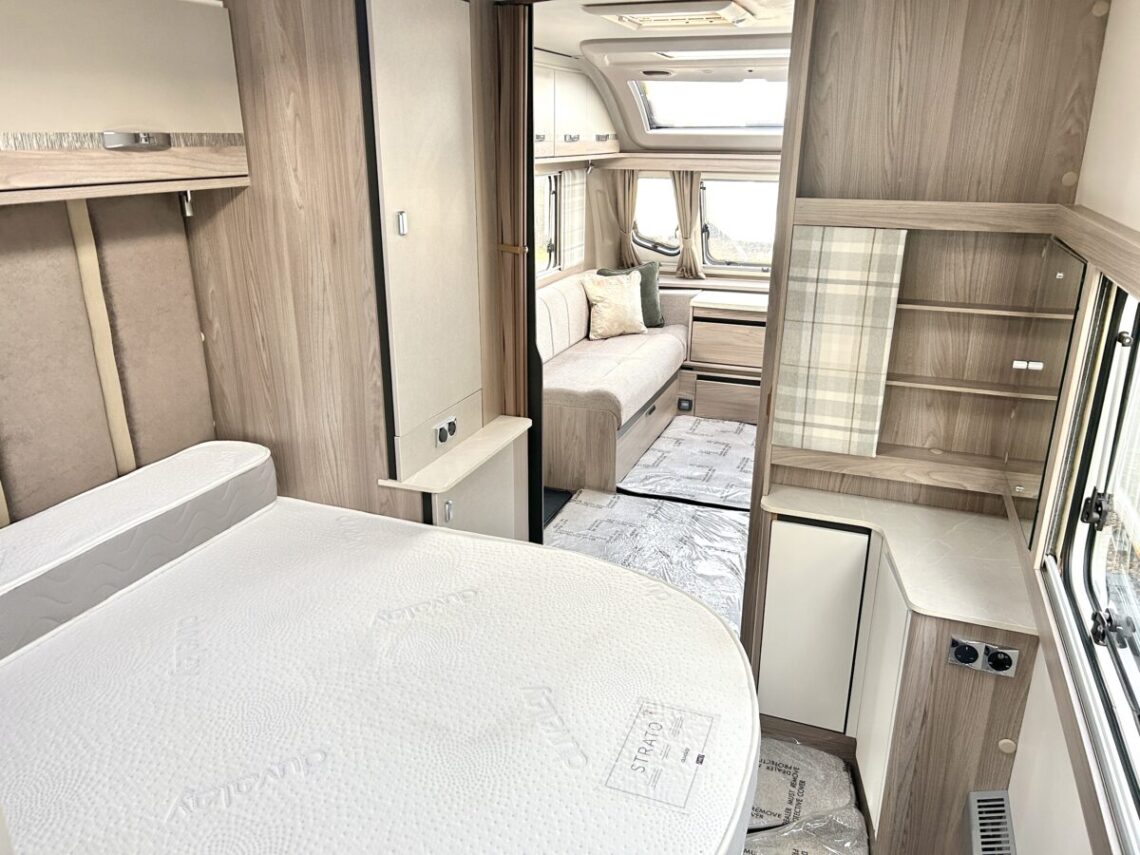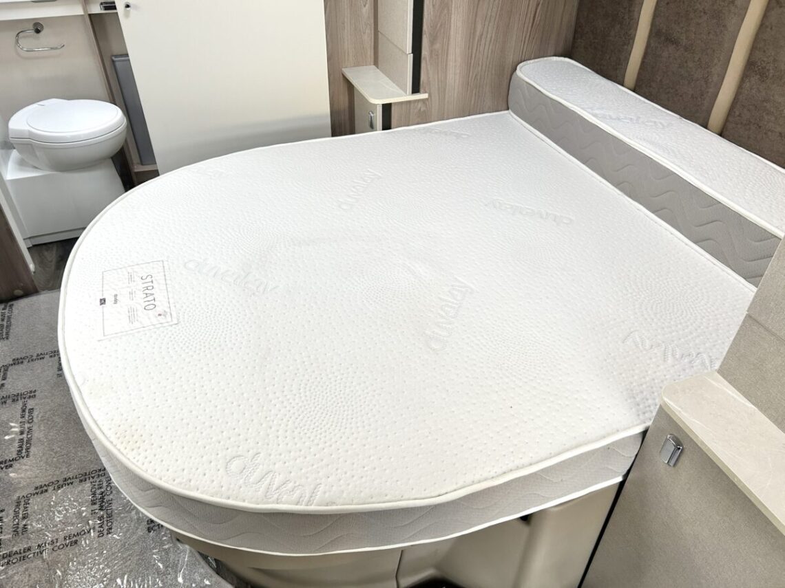 The 580 SE is a spacious single axle model featuring a transverse island bed and a full-width end washroom