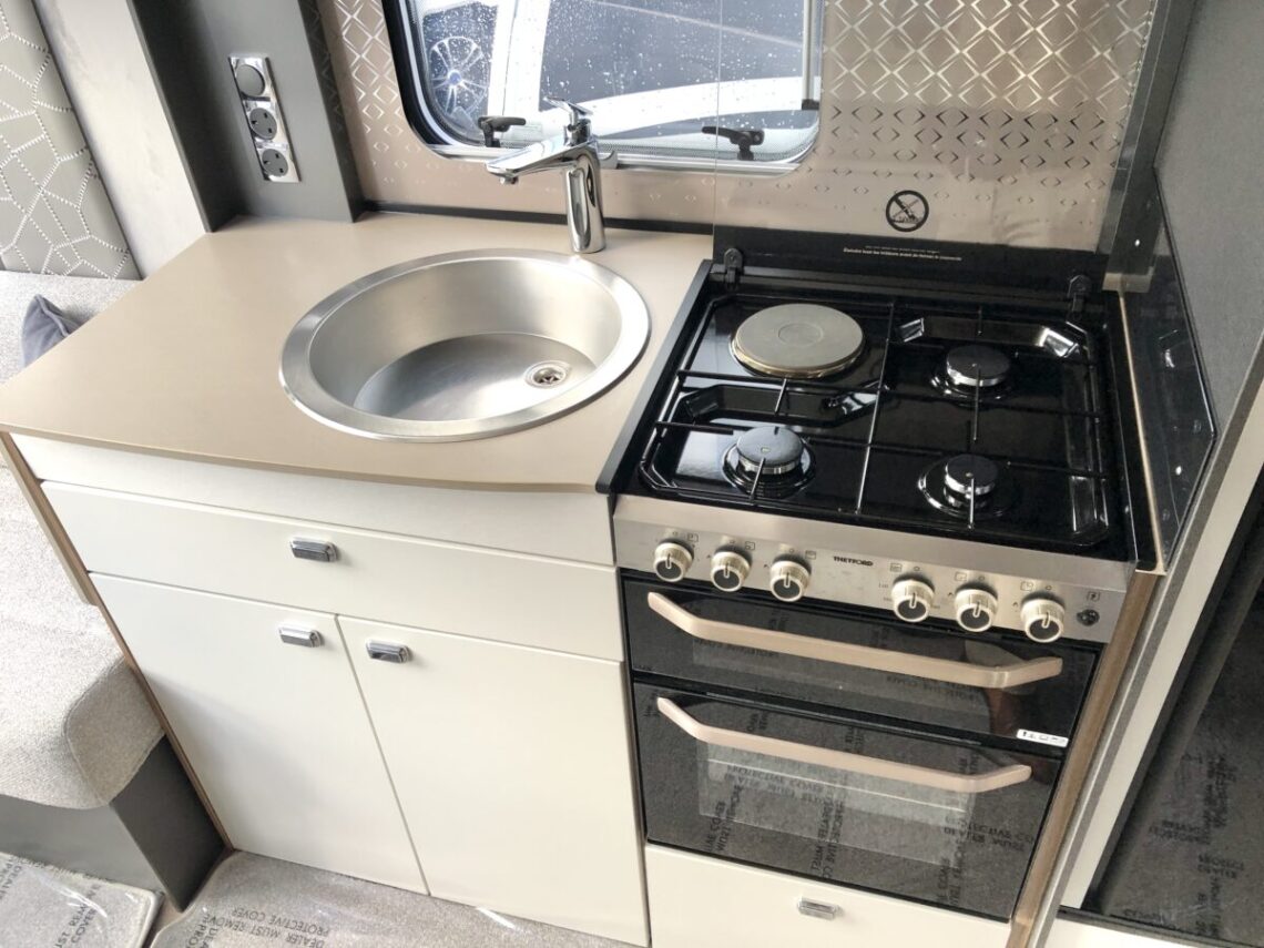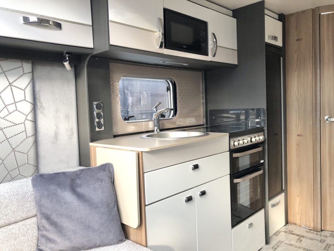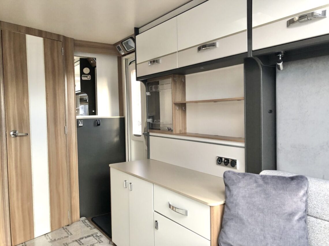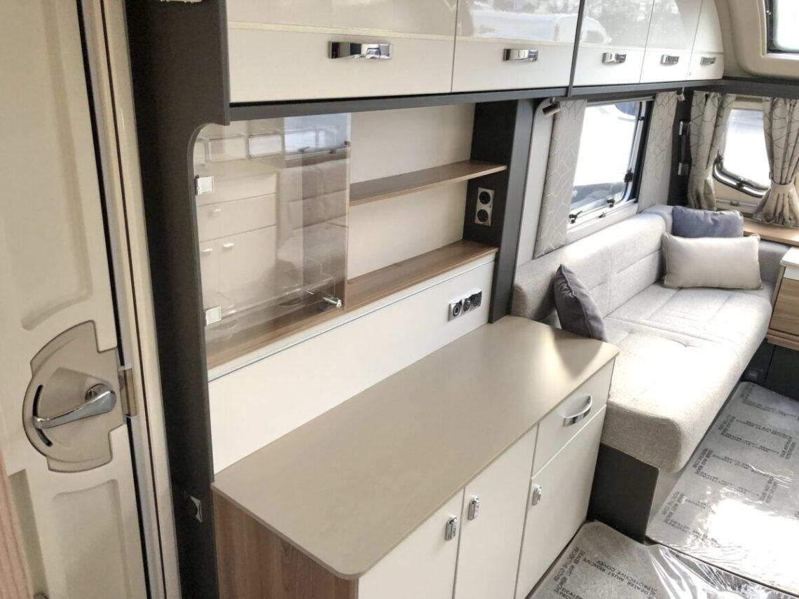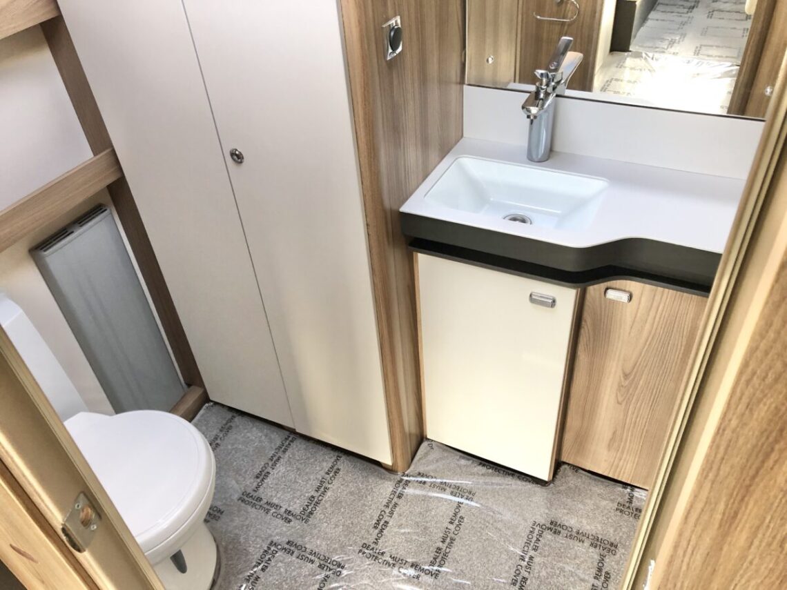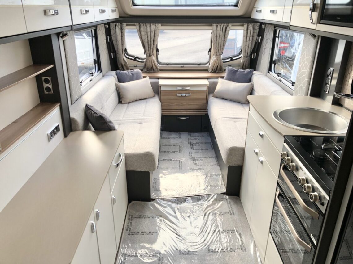 The Conqueror 480 is a luxury 2 berth model with a ‘Tower’ fridge & freezer and full width end washroom