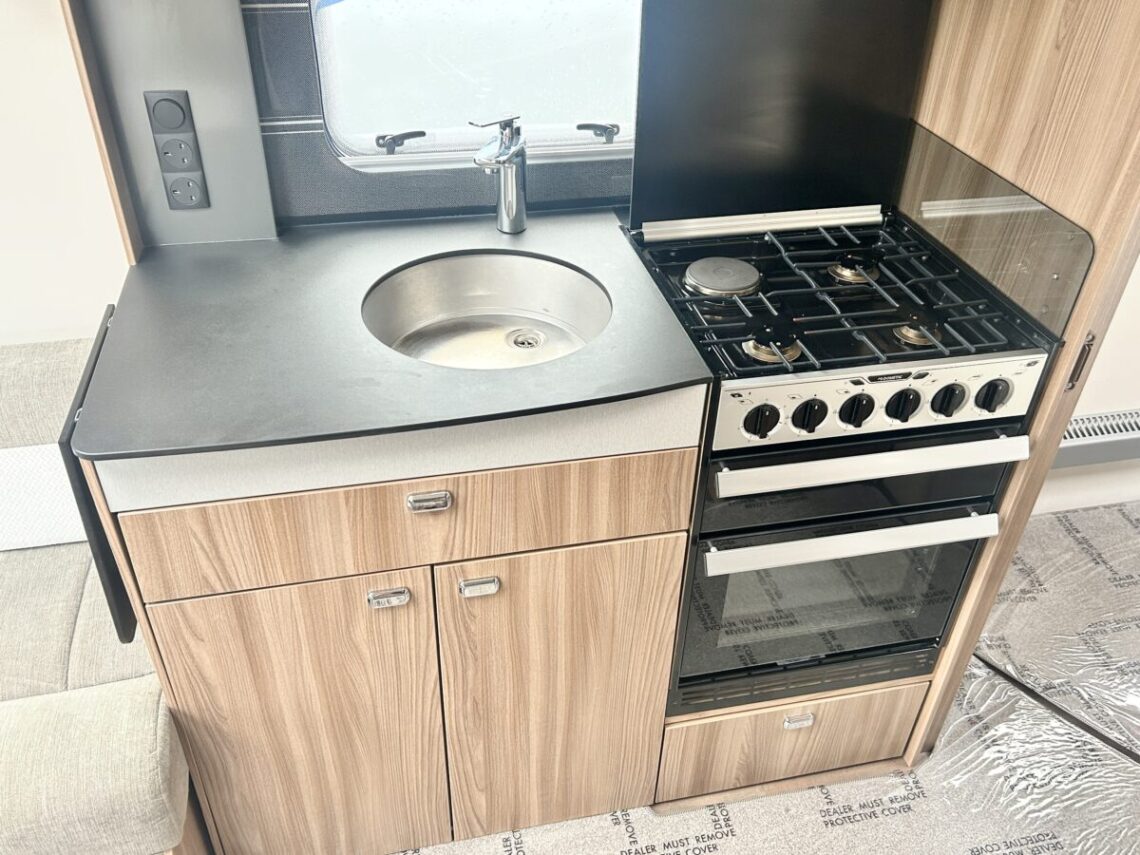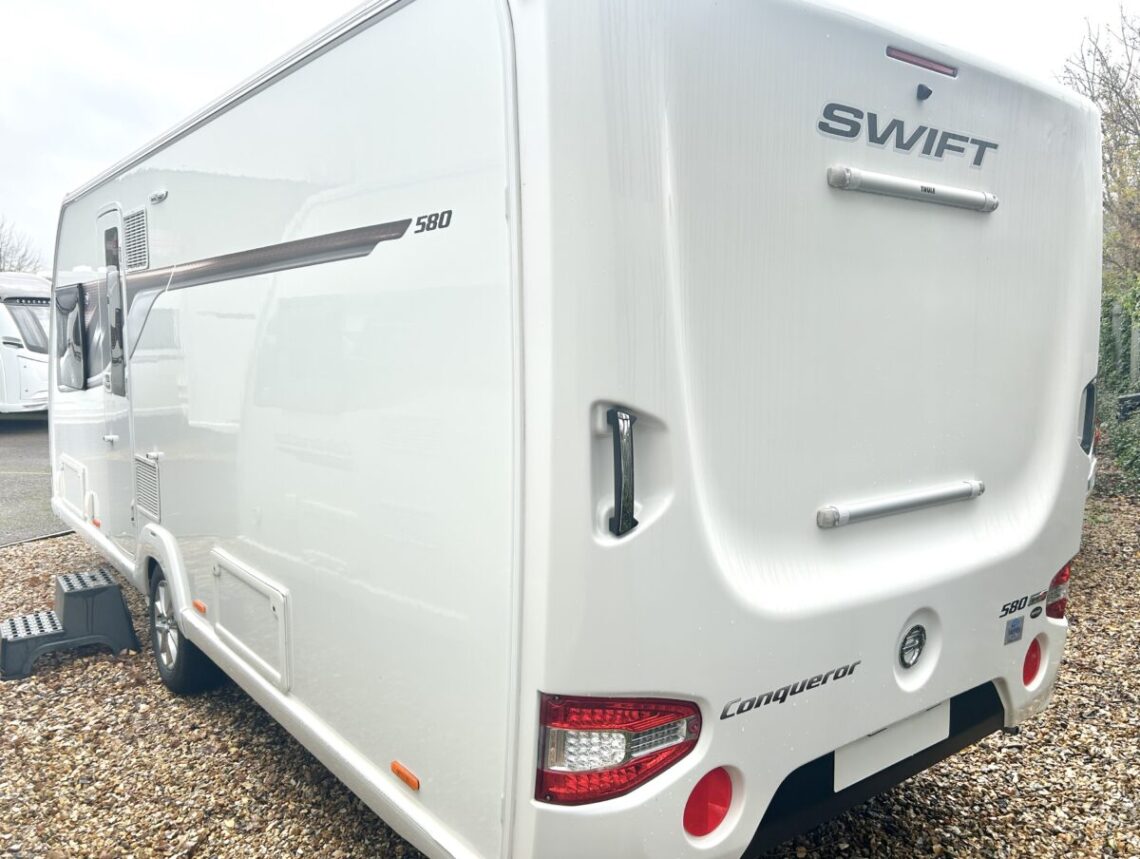The Conqueror 580 is a well-specified luxury model featuring a transverse island bed and a full width end washroom