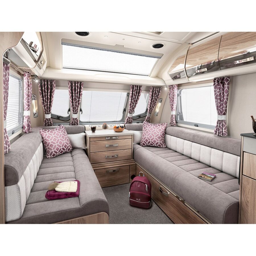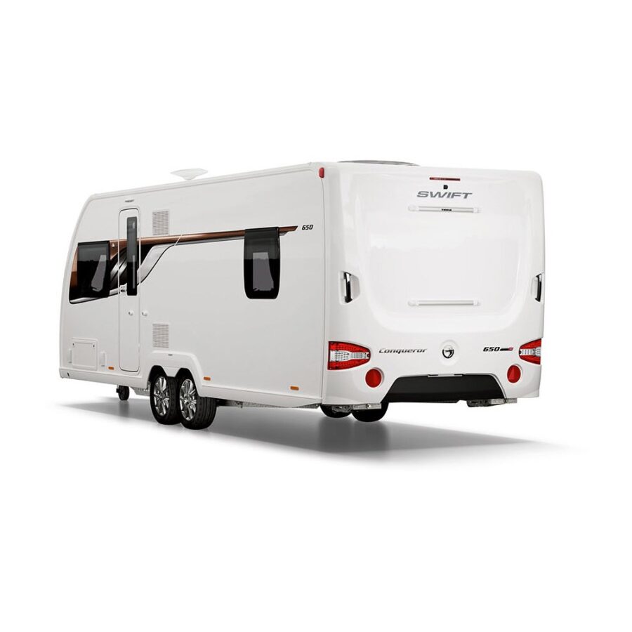 The Conqueror 650 is a luxurious fixed Rear Island Bed model with ‘Jack & Jill’ designed central washroom.
