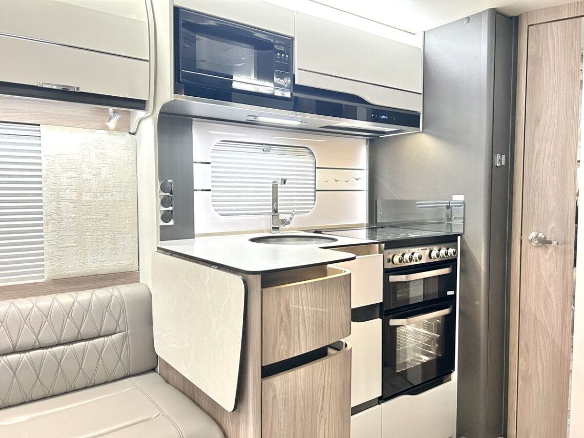 This flagship model already boasts an impressive specification level; however, the previous owner added E&P Self Leveling, Truma Compact PLUS Air Conditioning, and a Powrtouch EVO AUTO AWD Motor Mover. These extras are worth well over £6,000!