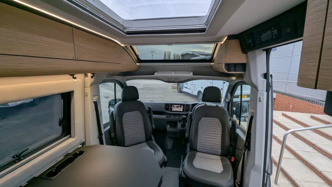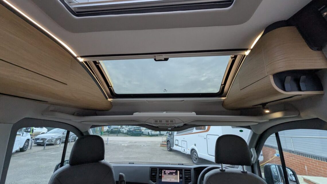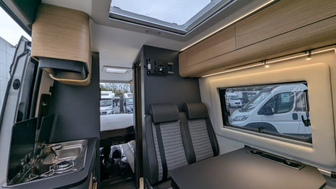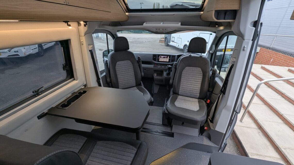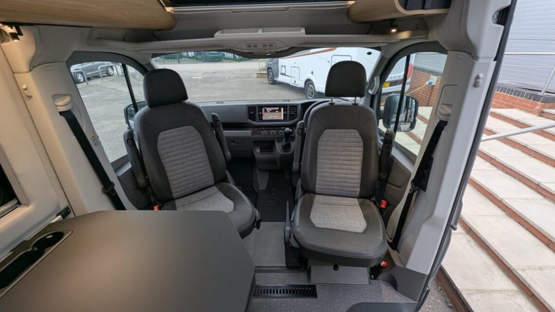 At 6.84m long this motorhome has a notably spacious interior with a large transverse bed in the rear which can b listed up to allow huge amounts of storage space beneath! The open-plan design creates a seamless flow between driving cab and living area. Swivel cab seats, a flexible dinette, and a panoramic roof window enhance the sense of space and comfort. Enjoy extras like a touchscreen digital control panel, ambient LED lighting, solar panel, heated steering wheel! Don’t miss your Chance to own an unregistered Adria Twin Max 680SGX , supplied with manufacture warranty at a great discounted rate!