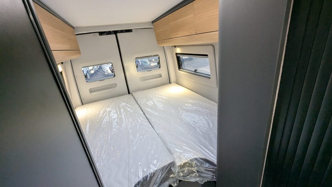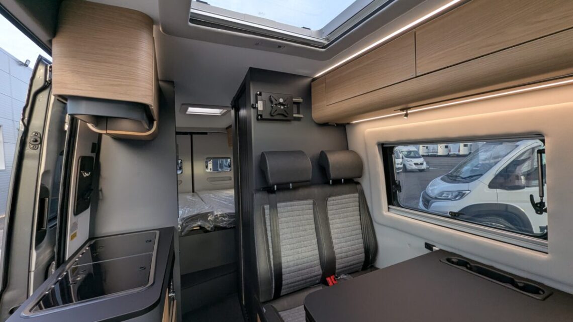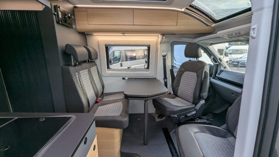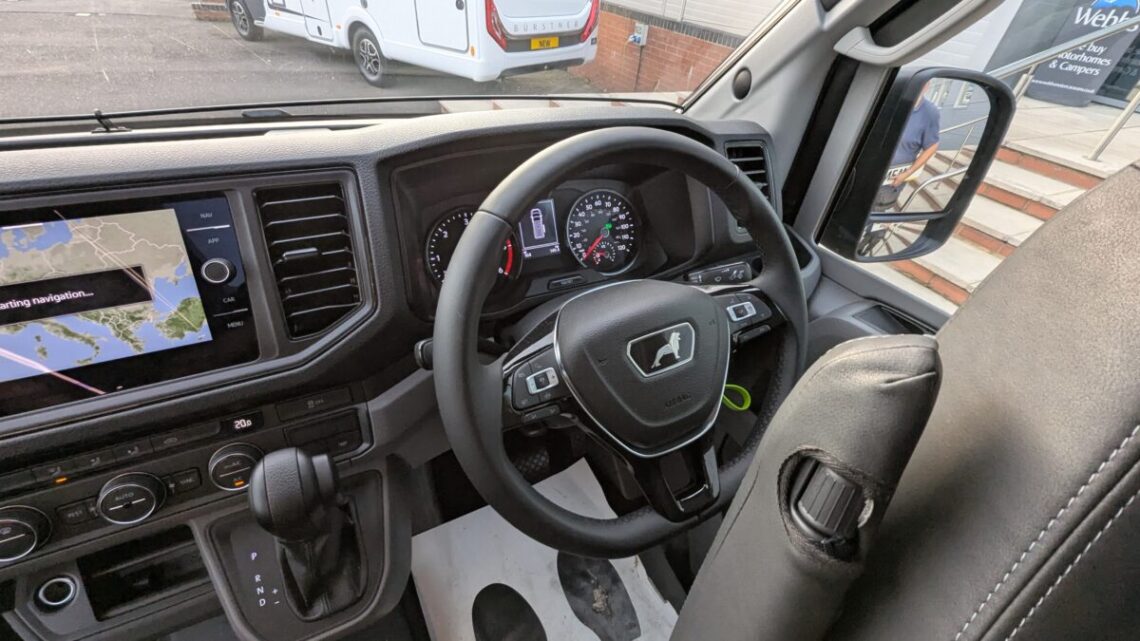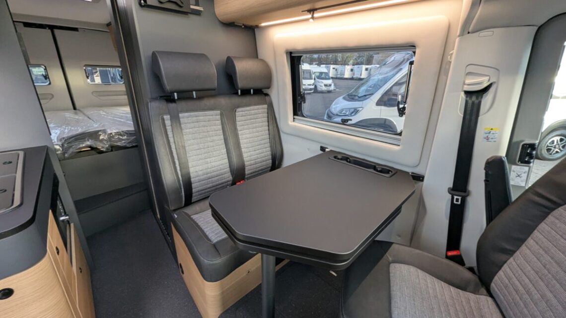 At 6.84m long this motorhome has a notably spacious interior with a large double bed fixed bed in the rear with a small cut out at he bottom to allow for either person to get out of bed without disturbing the other! The open-plan design creates a seamless flow between driving cab and living area. Swivel cab seats, a flexible dinette, and a panoramic roof window enhance the sense of space and comfort. Enjoy extras like a touchscreen digital control panel, ambient LED lighting, solar panel, heated steering wheel! Don’t miss your Chance to own an unregistered Adria Twin Max 680 SLB, supplied with manufacture warranty at a great discounted rate!