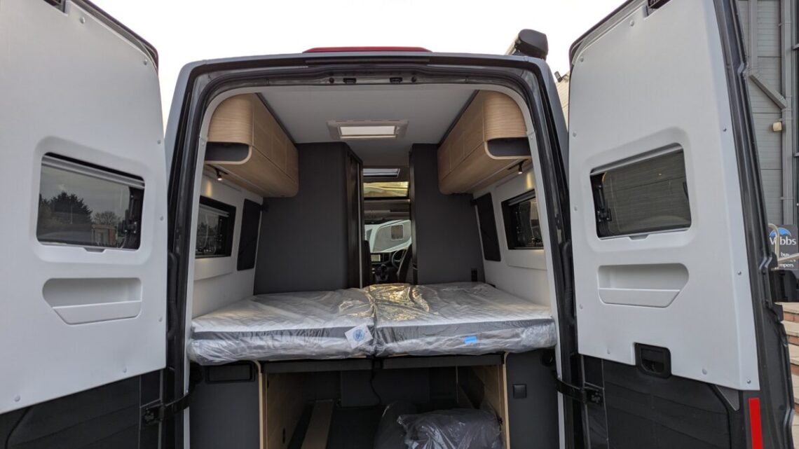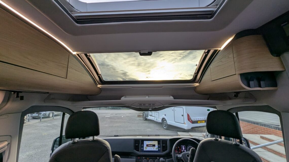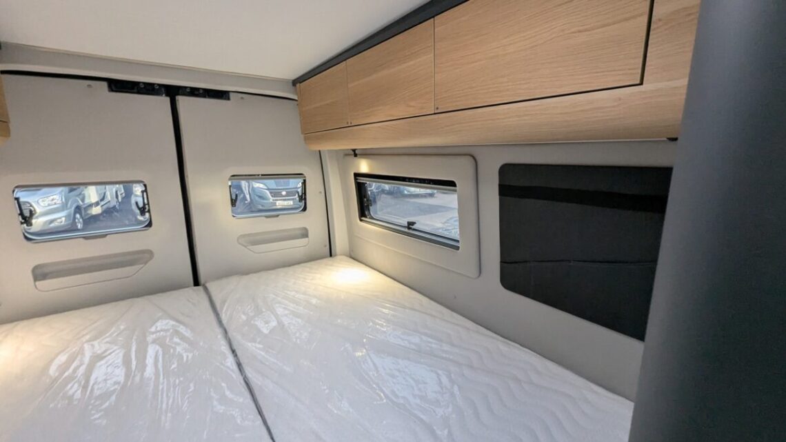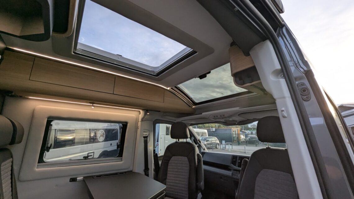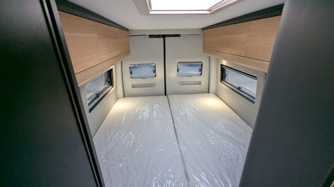 At 6.84m long this motorhome has a notably spacious interior with a large double bed fixed bed in the rear with a small cut out at he bottom to allow for either person to get out of bed without disturbing the other! The open-plan design creates a seamless flow between driving cab and living area. Swivel cab seats, a flexible dinette, and a panoramic roof window enhance the sense of space and comfort. Enjoy extras like a touchscreen digital control panel, ambient LED lighting, solar panel, heated steering wheel! Don’t miss your Chance to own an unregistered Adria Twin Max 680 SLB, supplied with manufacture warranty at a great discounted rate!