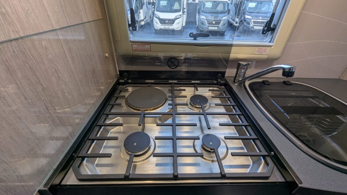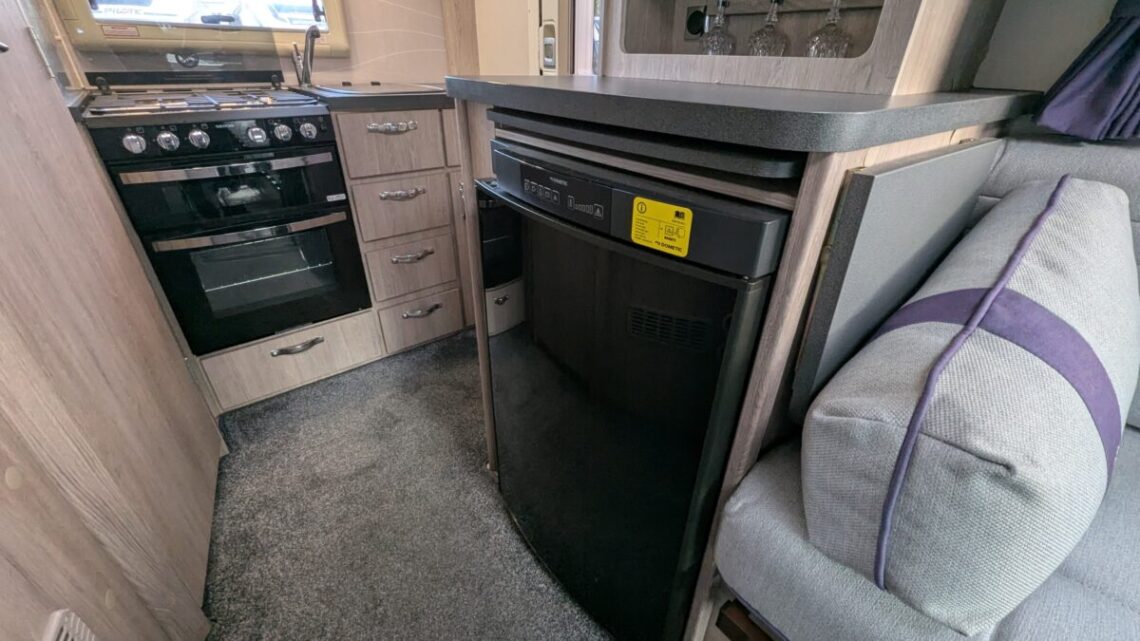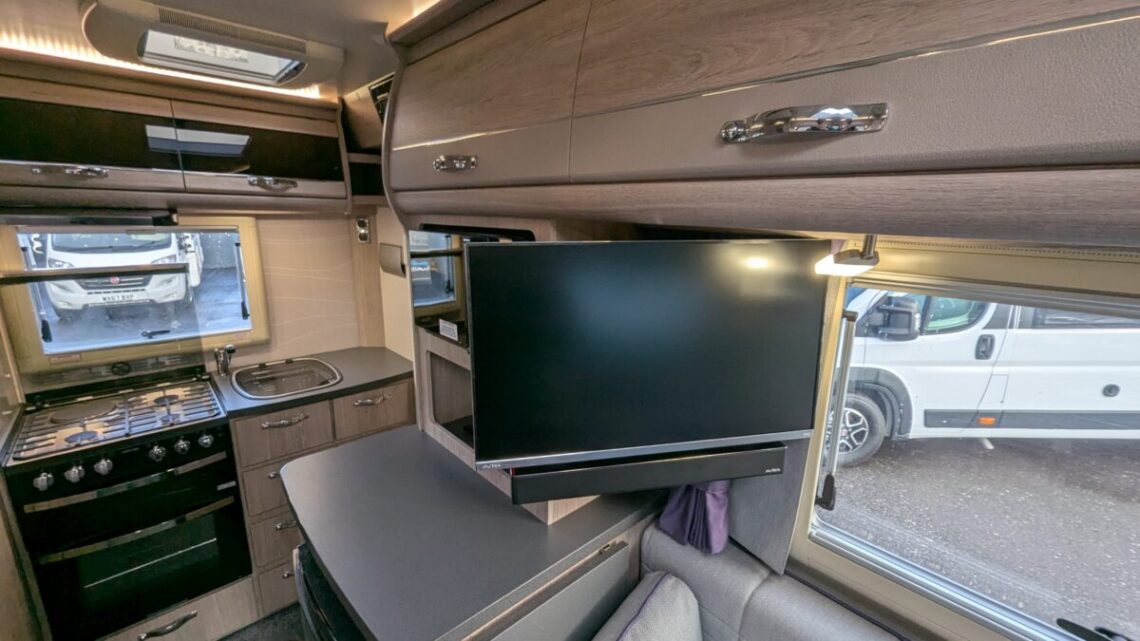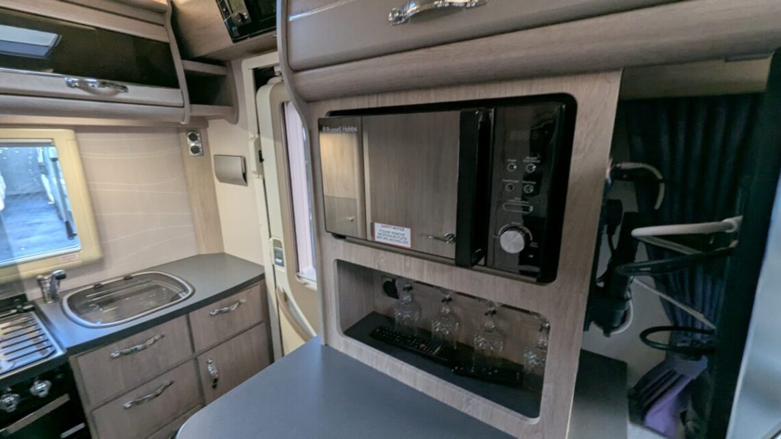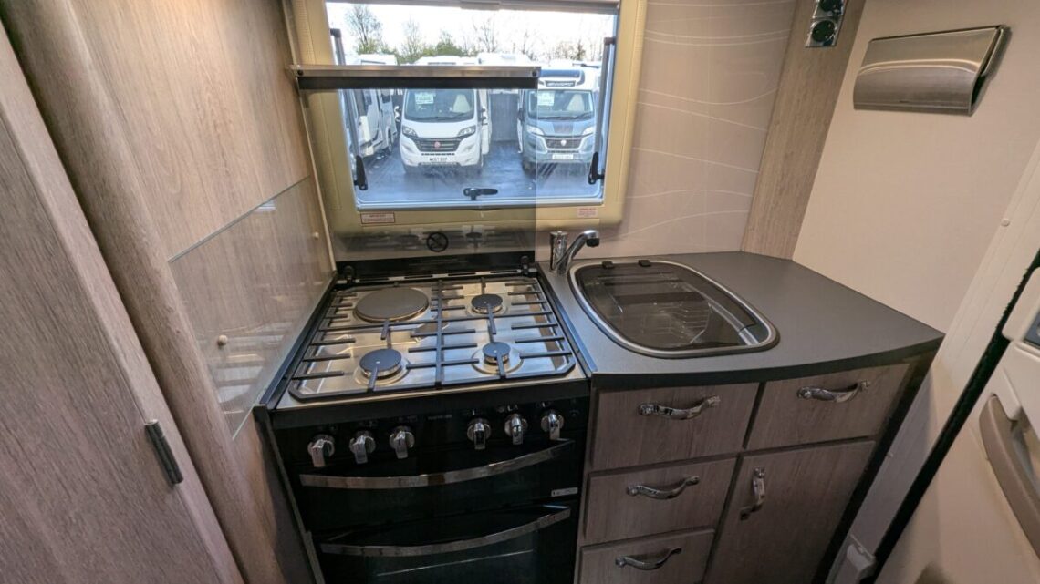 Enhanced by an effortless automatic gearbox that makes long journeys a pleasure rather than a chore. From the moment you step inside, the quality craftsmanship and attention to detail that Auto-Sleepers are known for is immediately apparent. The well-equipped kitchen ensures you can enjoy home-cooked meals wherever you travel, featuring a full oven and grill, a microwave, a dual-fuel hob, and a fridge.
