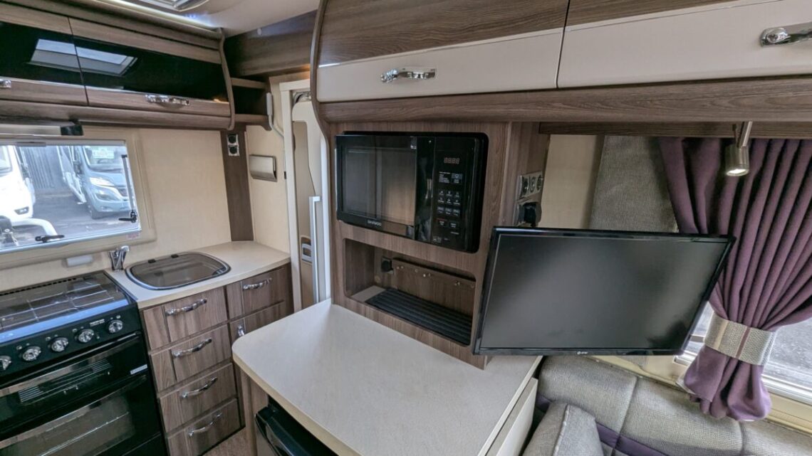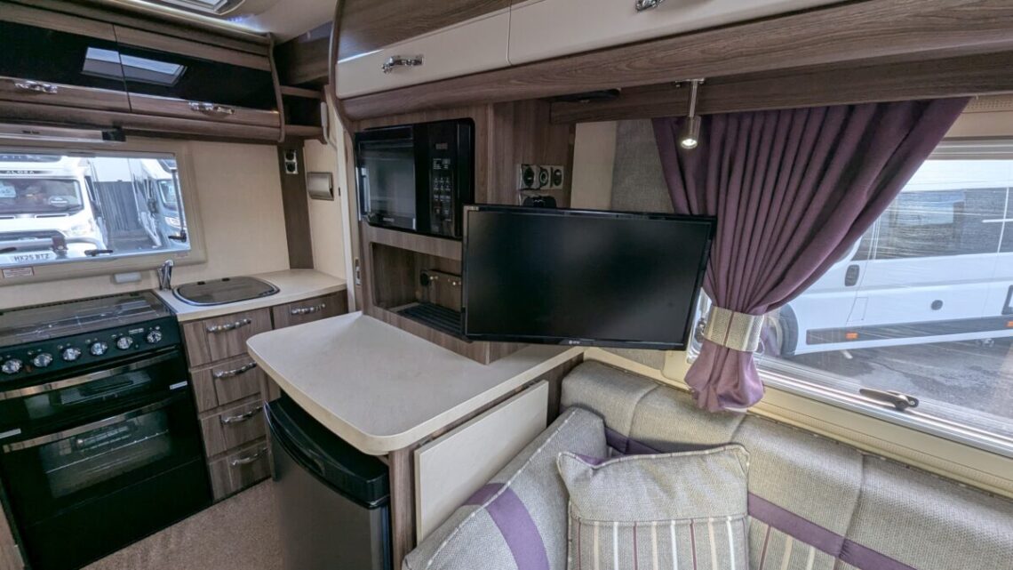 The Auto-Sleeper Broadway EK is a beautifully designed, compact coach built motorhome that delivers premium comfort in an easy-to-drive package. With only 18,168 miles on the clock this motorhome could be the perfect option for you! fitted with many extras for example, Awning, Solar panel, TV ariel, BBQ Point, and external mains point all to make those holidays much more enjoyable! The end-kitchen layout is a real highlight, offering generous worktop space, a full cooker, fridge, and plenty of cupboards—perfect for those who enjoy cooking on the road. The washroom is impressively appointed, with a separate shower, swivel toilet, and vanity unit, providing true home-from-home convenience. At night, the lounge easily converts into a spacious and comfortable sleeping area, ensuring a great night’s rest wherever you stop.