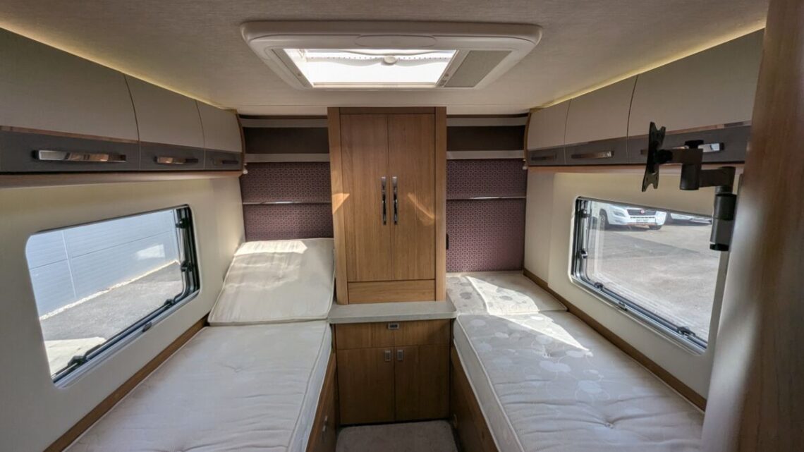 The Auto-Trail Delaware S is a premium British-built coach built motorhome designed for comfort, space and effortless long-distance touring. This motorhome has less than 14,000 miles on the clock and has been meticulously cared for by its previous owner! The rear bedroom provides twin fixed single beds, offering excellent comfort and easy access, while the lounge area can convert into an additional double bed to accommodate up to four people. A fully equipped central kitchen ensures you have everything needed for cooking on the road, including a hob, oven and grill, microwave and a large fridge freezer. The motorhome also benefits from a separate shower cubicle and toilet, giving the convenience and privacy of a full bathroom wherever your travels take you. This motorhome features an external shower and BBQ point, awning and large fridge all to make those holidays that bit more comfortable!