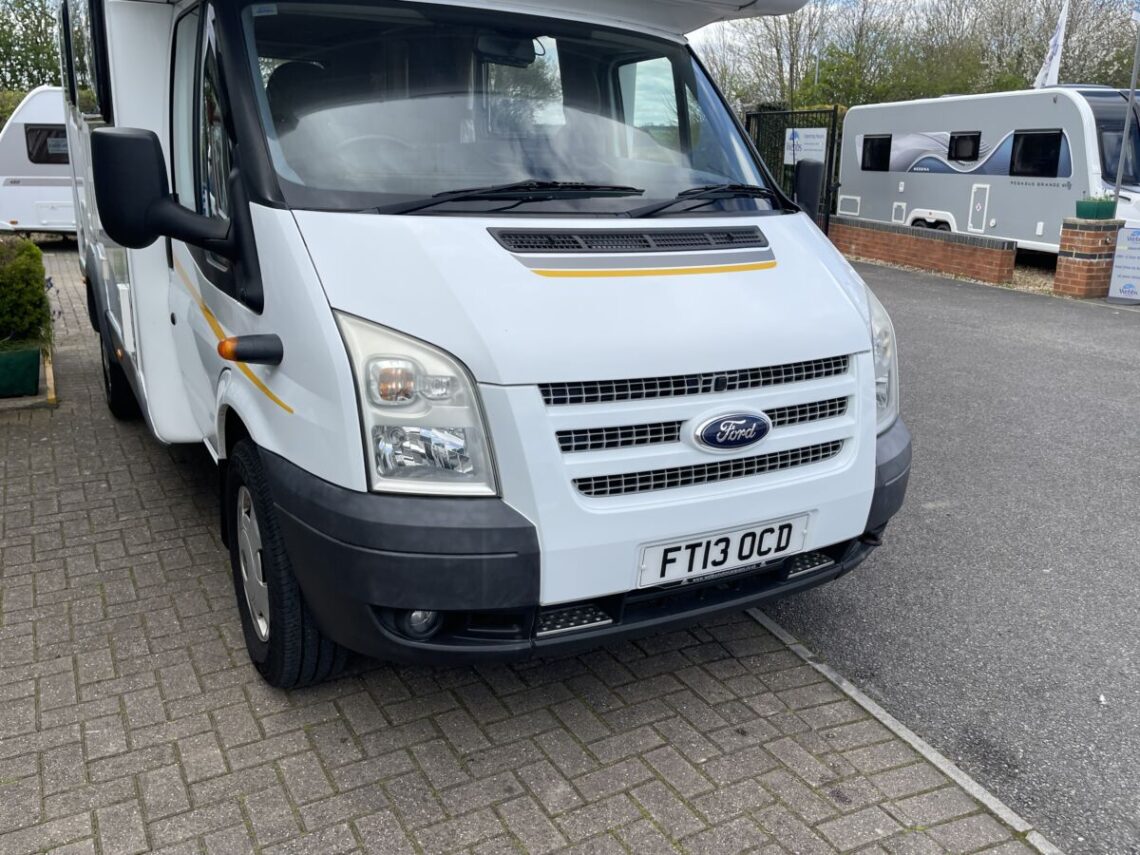 Compact and easy to drive, this 2‑berth motorhome features a practical end kitchen, complete with hob, oven, grill, fridge, and good storage. The comfortable lounge area converts into a spacious double bed. With only 33,157 miles on the reliable Ford Transit base, it’s ideal for couples looking for a ready‑to‑go touring van. This example was previously supplied and serviced by us and will come with a variety of service checks at point of sale.