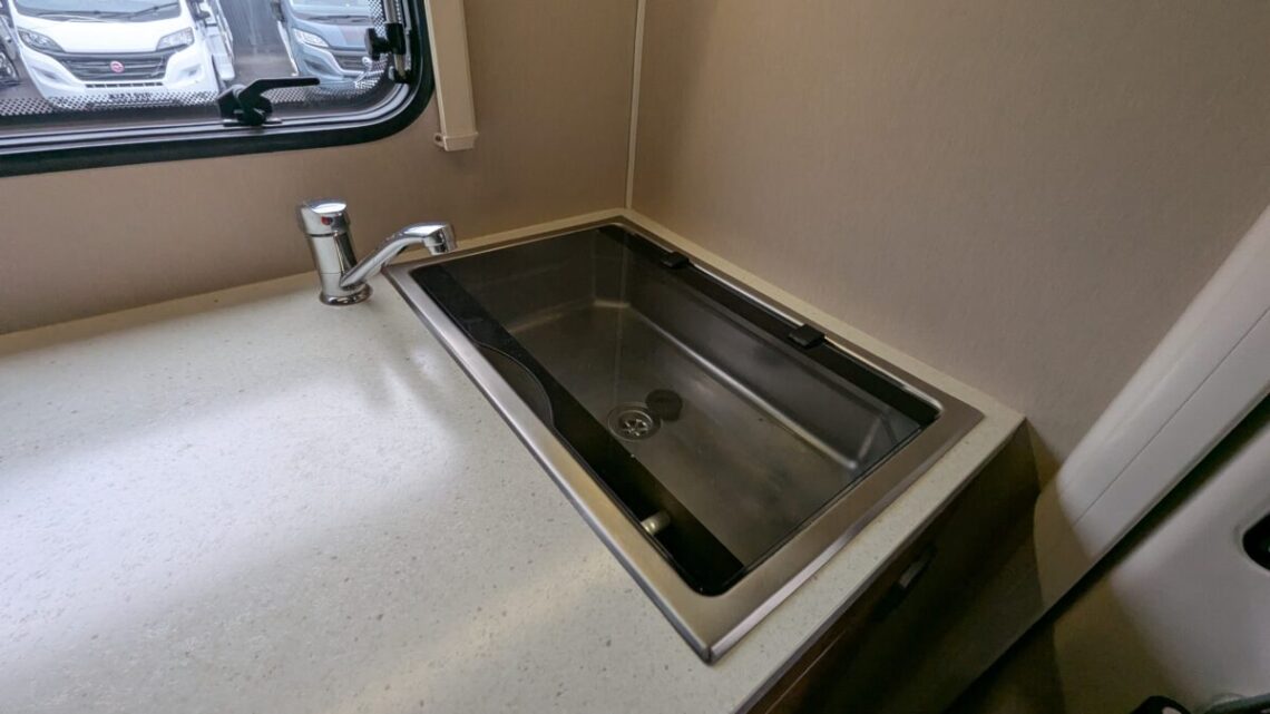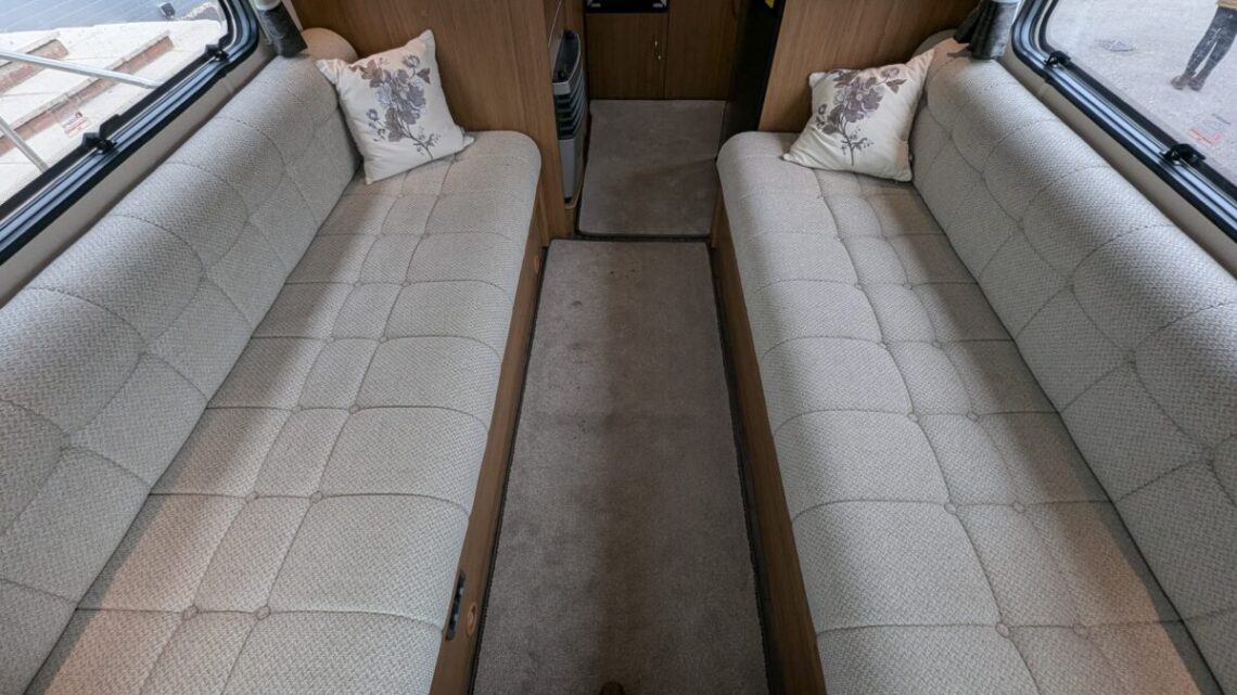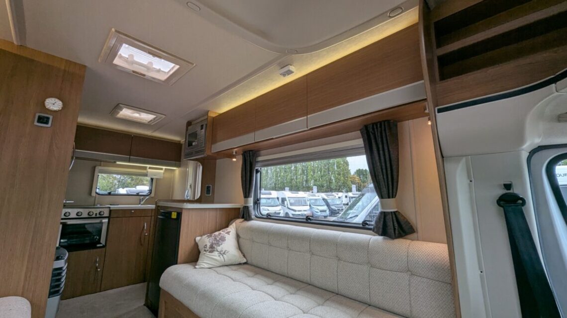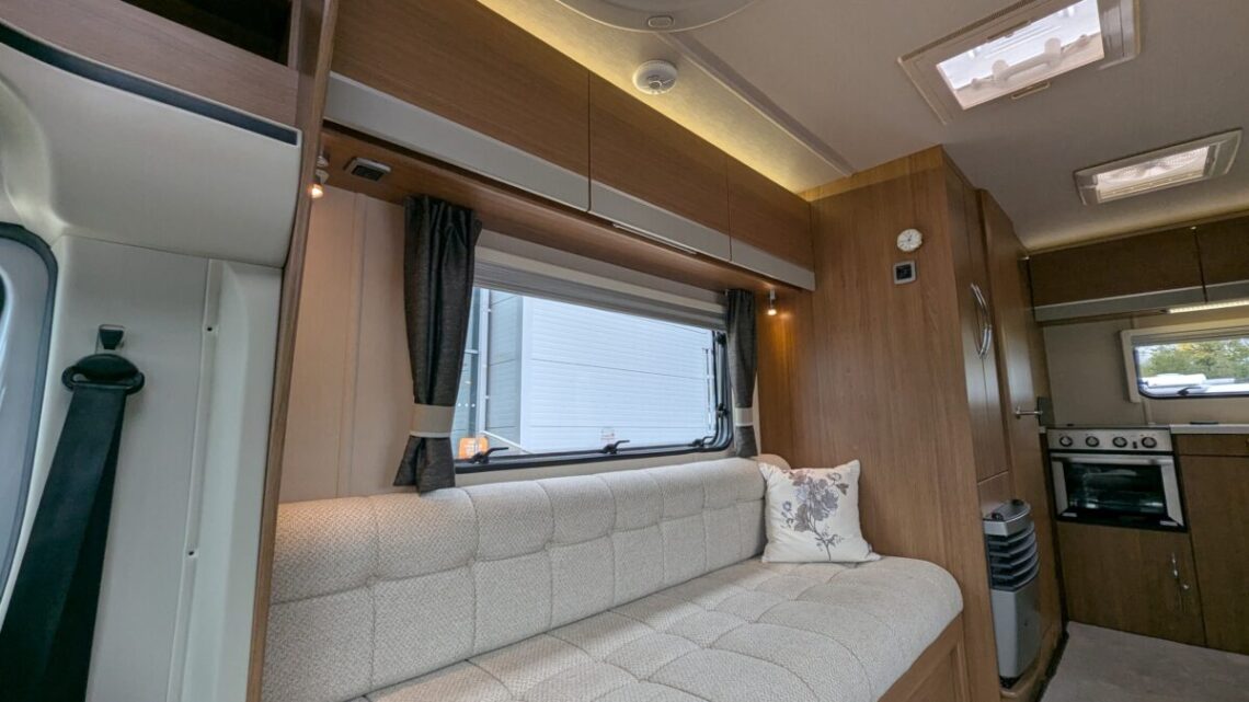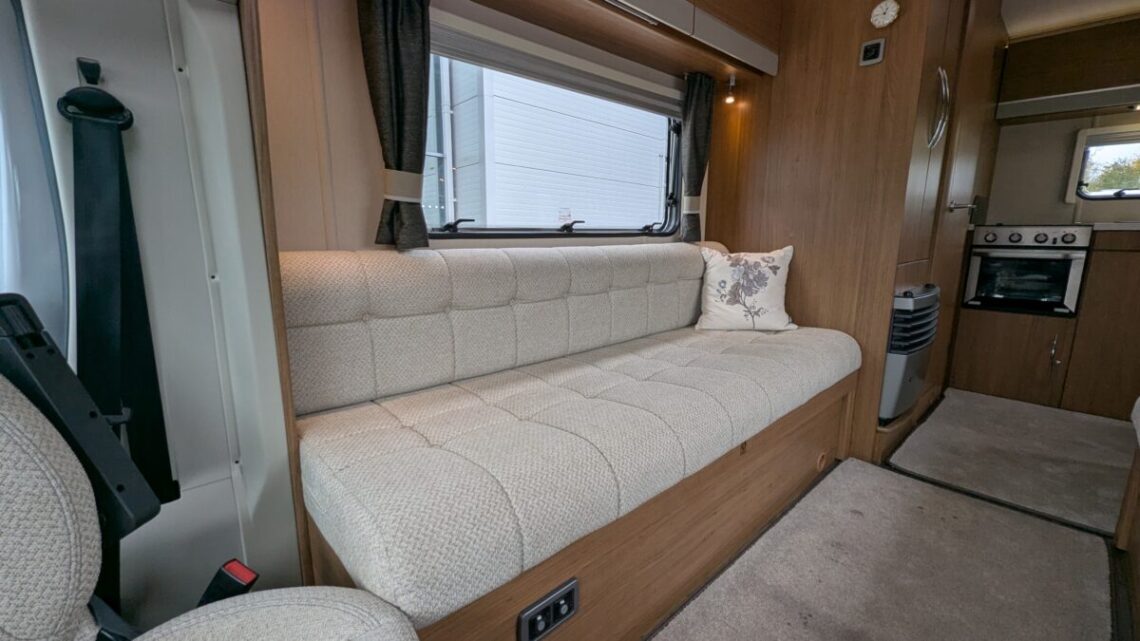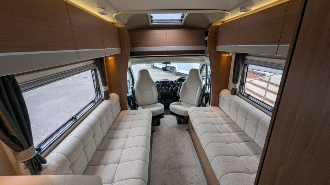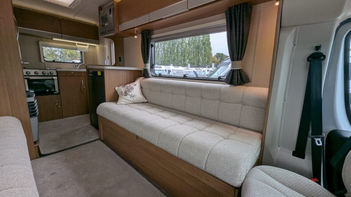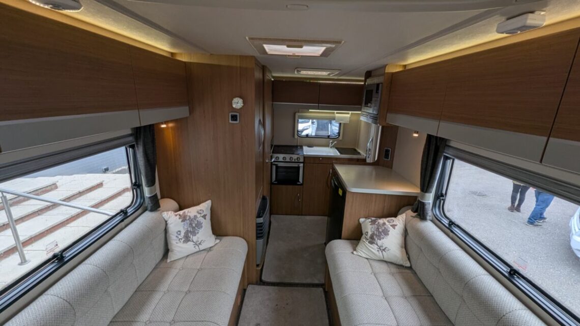 Previously sold by Webbs this motorhome has been well looked after having only done 16,923 miles! At just over 6.3 metres long, the T-615 is incredibly easy to drive and park, yet it offers an impressively spacious interior that maximizes every inch of space. For added driveability this motorhome is equipped with reversing camera, cruise control and air conditioning! It’s sleek coach built profile is both stylish and practical, offering improved insulation and headroom over van conversions, making it suitable for year-round adventures. The central lounge features two opposing bench seats that can comfortably seat up to four people, with the addition of swivel cab seats creating a sociable and open-plan feel. At night, the benches quickly convert into either two single beds or a large transverse double, providing sleeping flexibility.