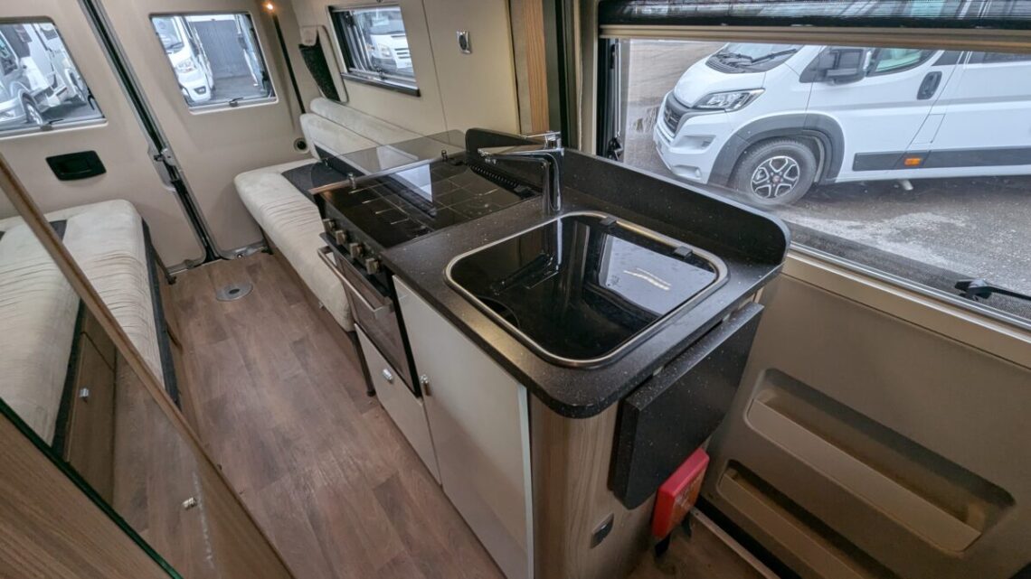 The Autocruise Rhythm is an ideal option for couples or solo travellers with its 2 single beds or spacious double bed across the back.  The van is the ever popular 2.2l Peugeot Boxer with a 6 speed manual transmission which is in great condition and has only done 39,989 miles. In the centre there is the kitchen area which is much more well equipped than you would expect for a motorhome of this size, with a sink, oven, grill, 3 gas hobs, 3 way fridge and a microwave. The washroom opposite this also has everything you need with a toilet, shower and a neat fold out sink. Enjoy useful features such as awning, reversing camera and solar panel!