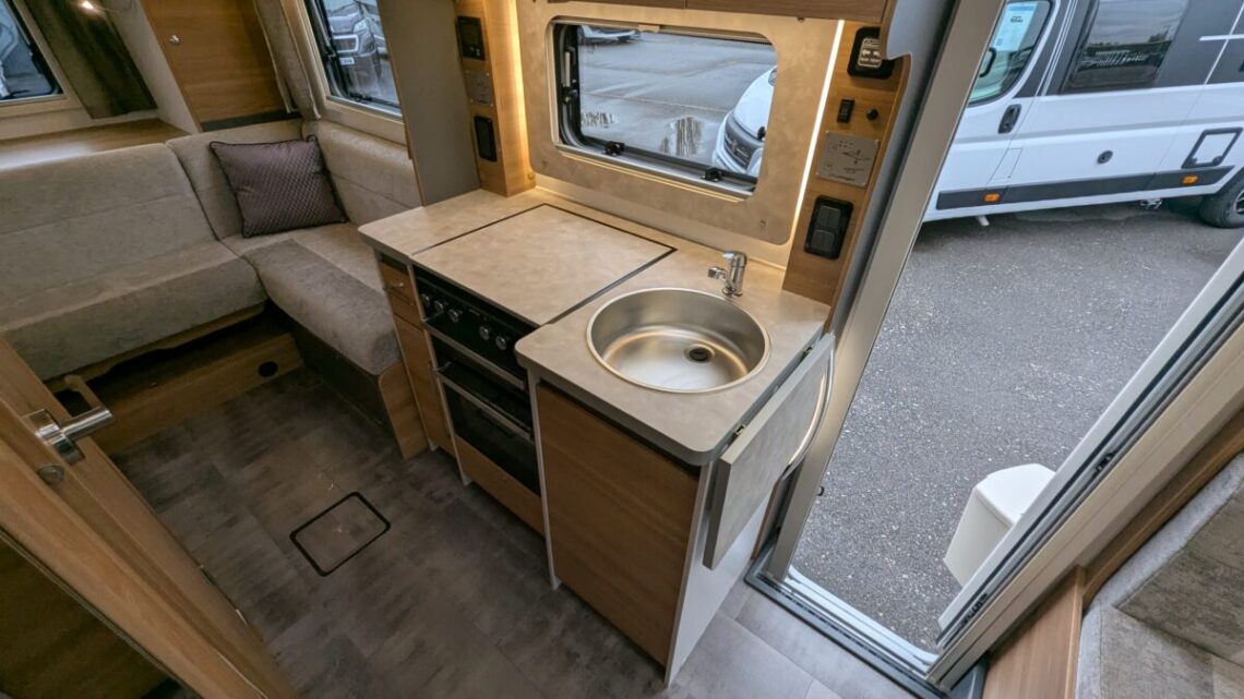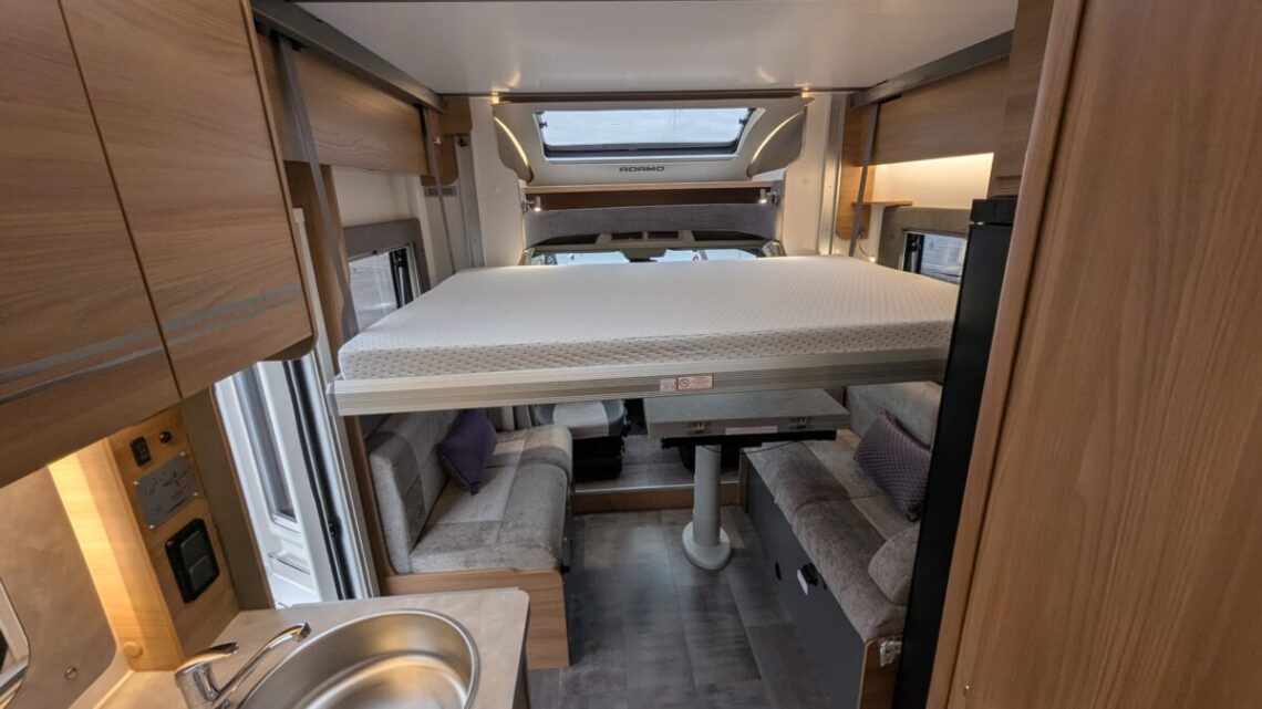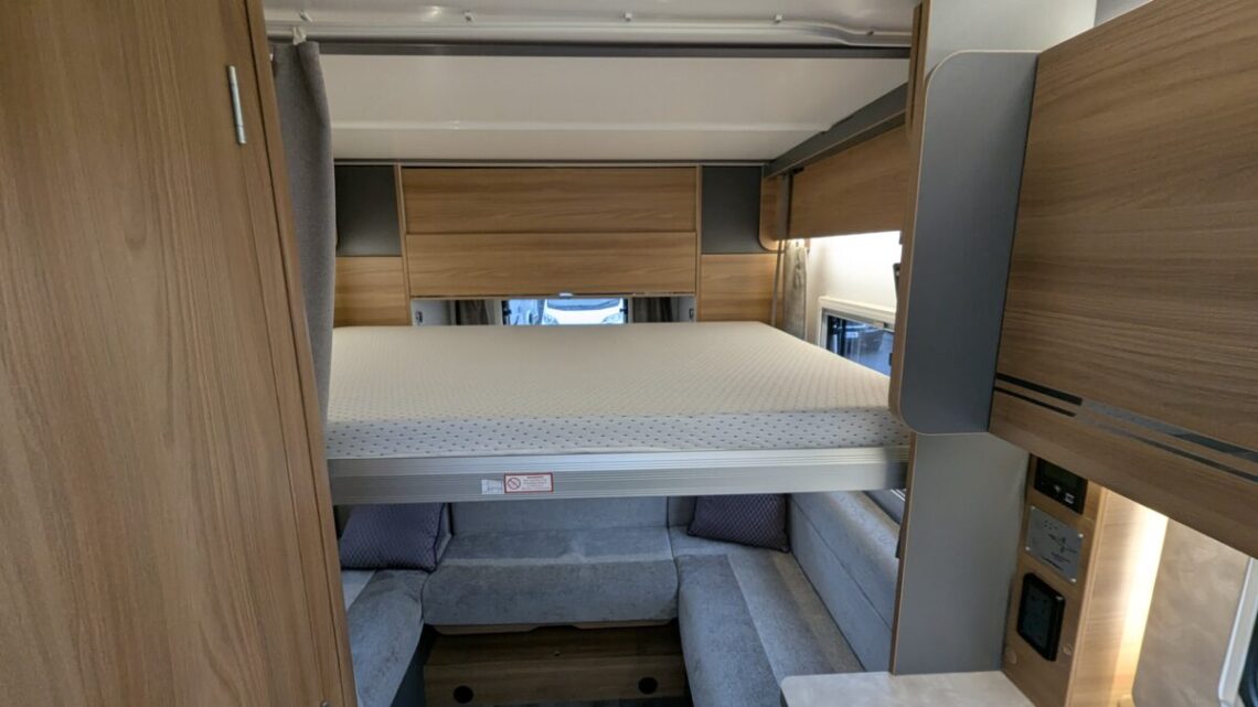At 7.48 metres in length, the Adamo 75-4DL provides an impressively spacious living environment thanks to its desirable dual-lounge layout. The front flexi-lounge serves as a comfortable social or dining space and cleverly converts into a travel area with secure belted seats when you’re on the move. The separate rear lounge creates a relaxing retreat, perfect for unwinding at the end of the day. Both lounges feature electric drop-down double beds, allowing you to enjoy maximum daytime living space without sacrificing comfort. With useful driving extras such as Cruise control, air conditioning and radio this motorhome could be the perfect option for you!