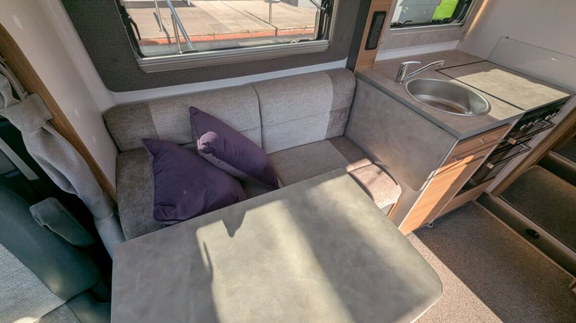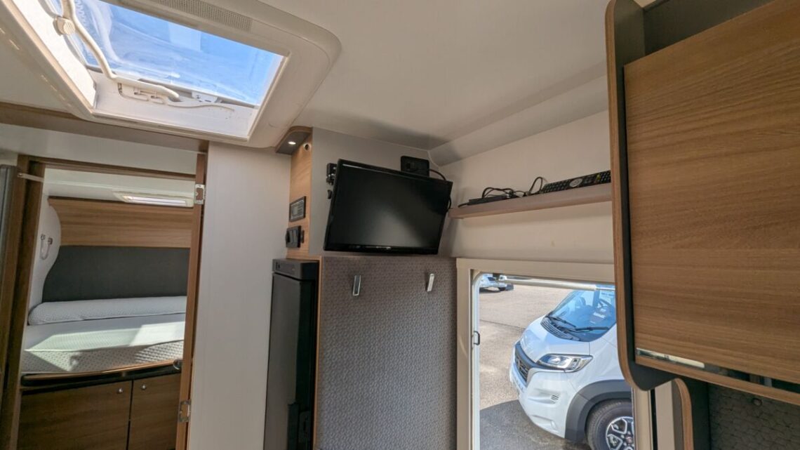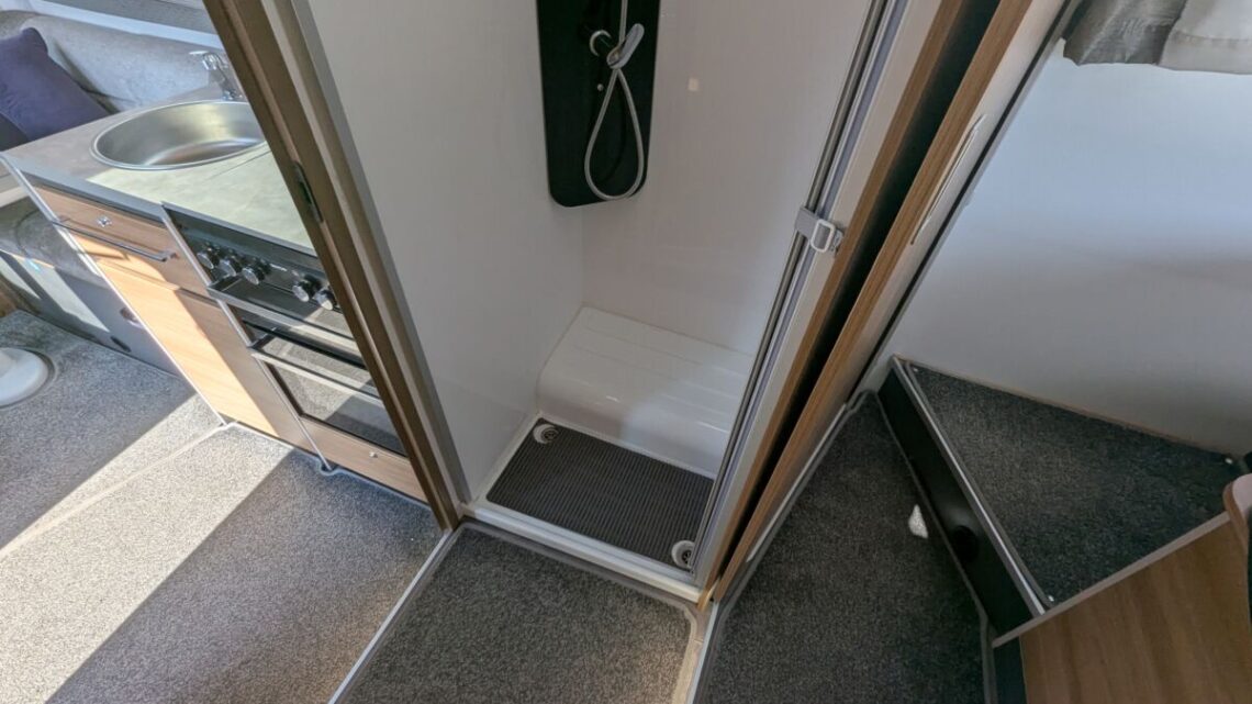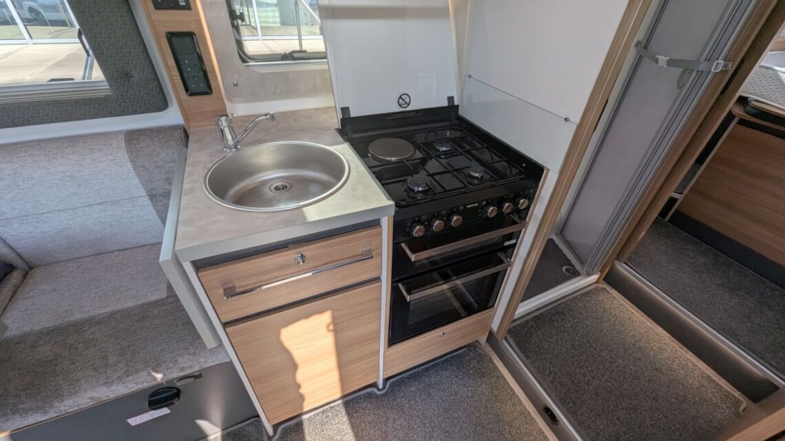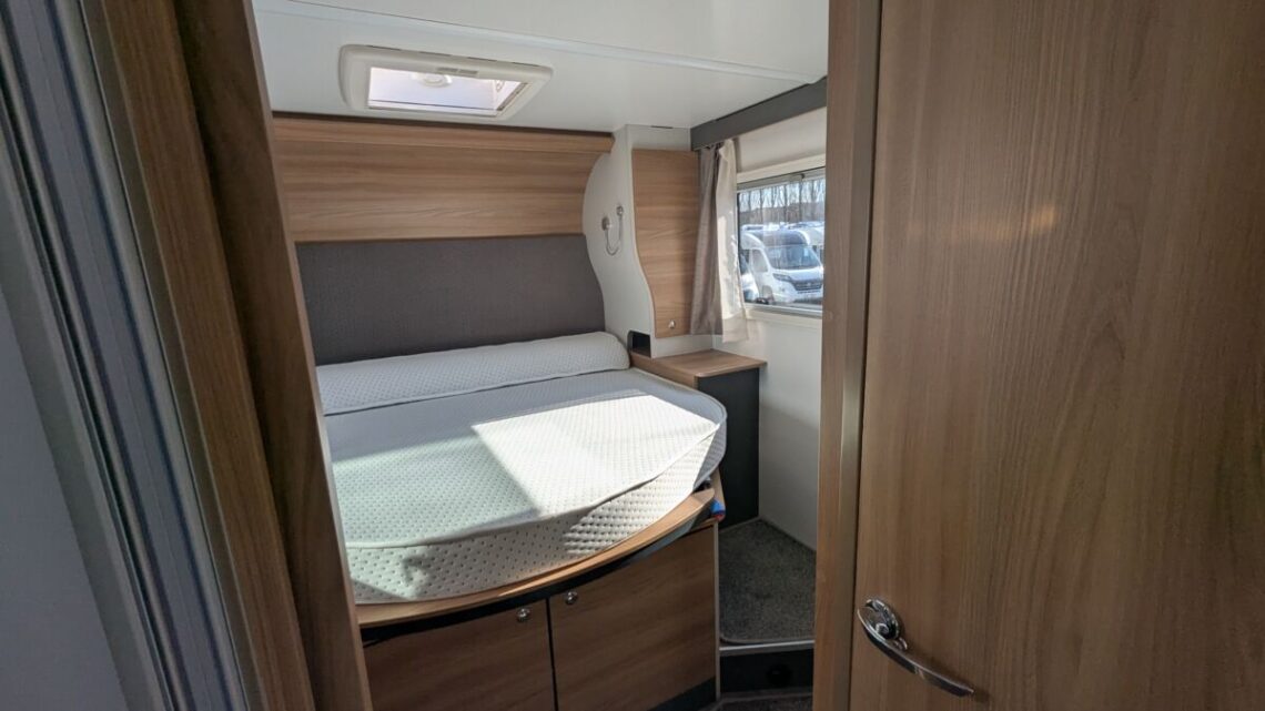 To the rear, the standout feature is the luxurious fixed island bed, offering true comfort with easy access from both sides and plenty of storage underneath – perfect for longer trips or extended touring. The central kitchen is fully equipped for life on the road, featuring an oven, grill, hob, and a large fridge freezer, making meal preparation simple and convenient. Opposite, the well-appointed washroom includes a separate shower, delivering all the comforts of home wherever you go.