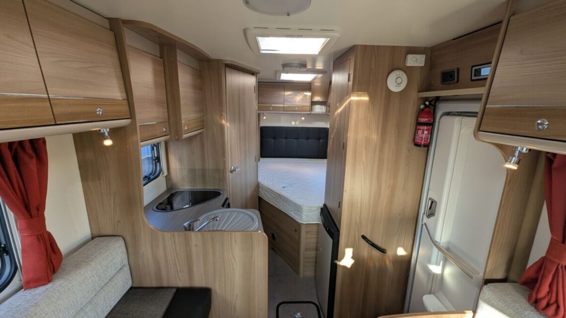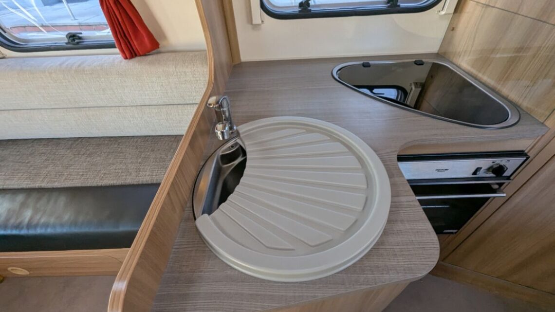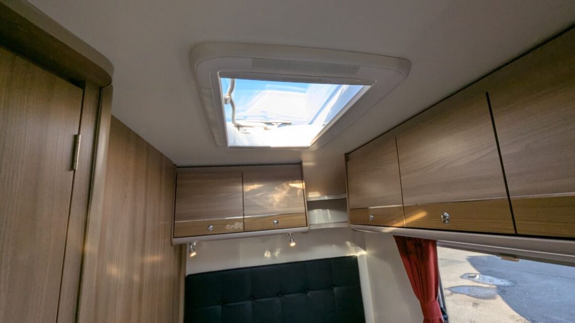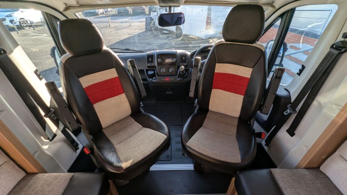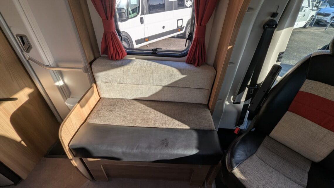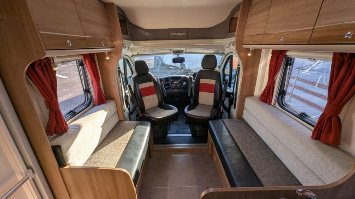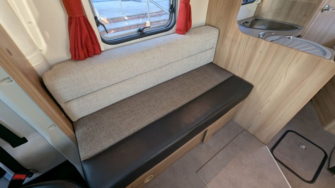 Inside, the layout is bright, spacious and thoughtfully designed. The front lounge area features comfortable bench seating along with swivel captain’s chairs, creating a welcoming space for relaxing, dining or entertaining. This area easily converts into an additional double bed when required, making the motorhome ideal for couples or small families.
