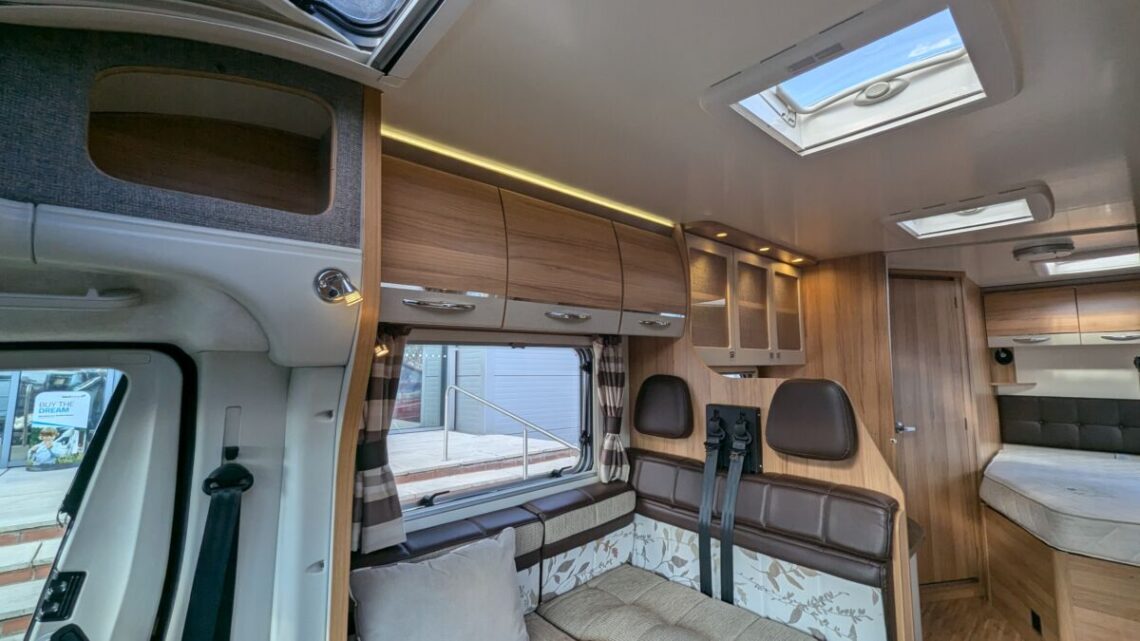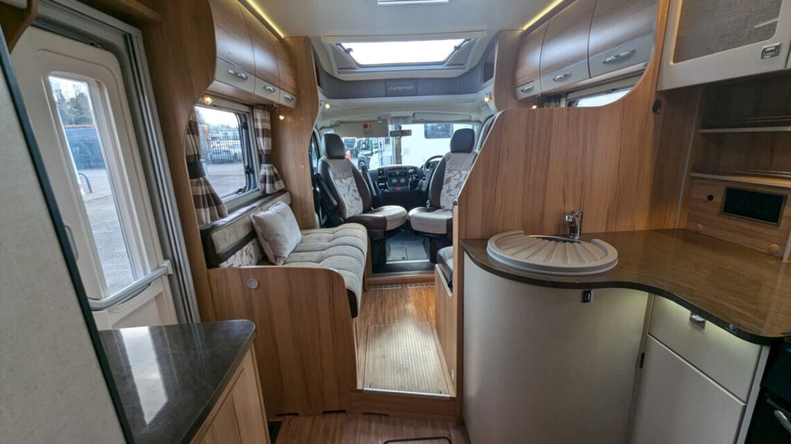 Built on the reliable Peugeot Boxer chassis with a 2.2L HDi 130 bhp engine and smooth 6-speed gearbox, the Autograph 745 delivers a confident and enjoyable driving experience. Designed for year-round use, the Autograph 745 features Alde wet central heating and excellent insulation, ensuring warmth and comfort in all seasons. The front lounge offers a bright and comfortable seating area with swivel cab seats, effortlessly converting into an additional double bed for guests. Midway through the vehicle, a fully equipped kitchen provides everything you need on the road, including a hob, oven, fridge, and ample storage – perfect for cooking up meals wherever your journey takes you. With its 4 travel seats, practical layout, and impressive storage throughout, this motorhome is perfect for couples or families looking to explore in style.