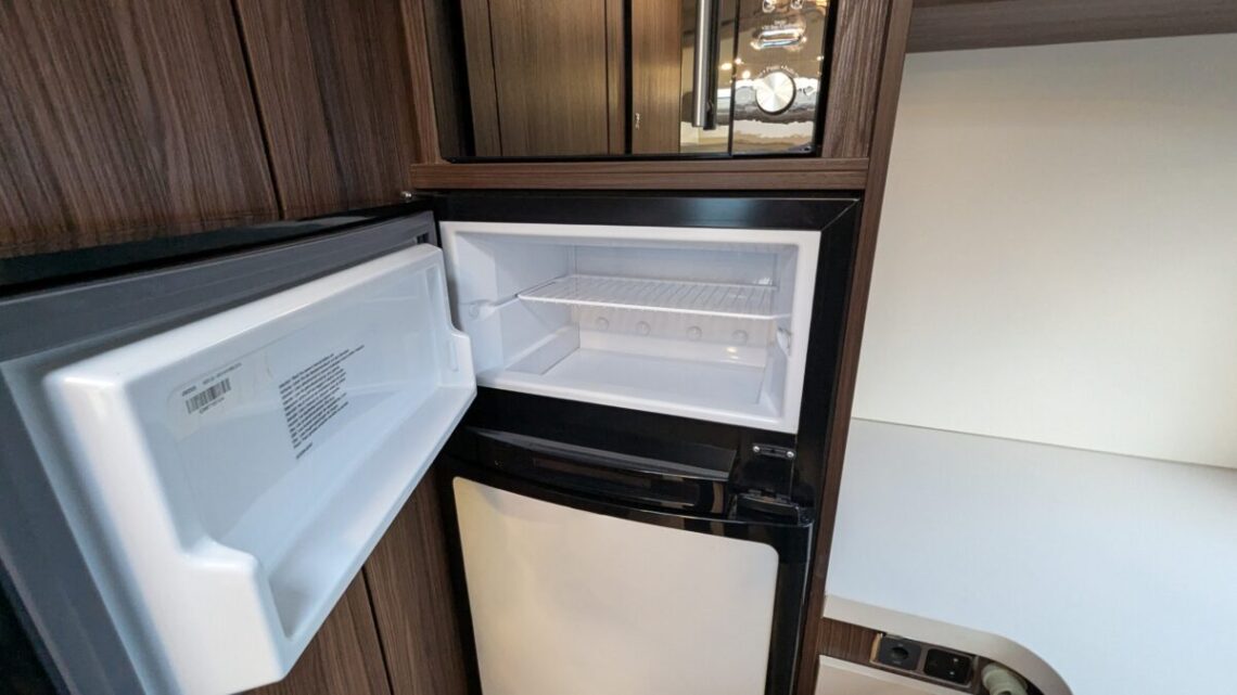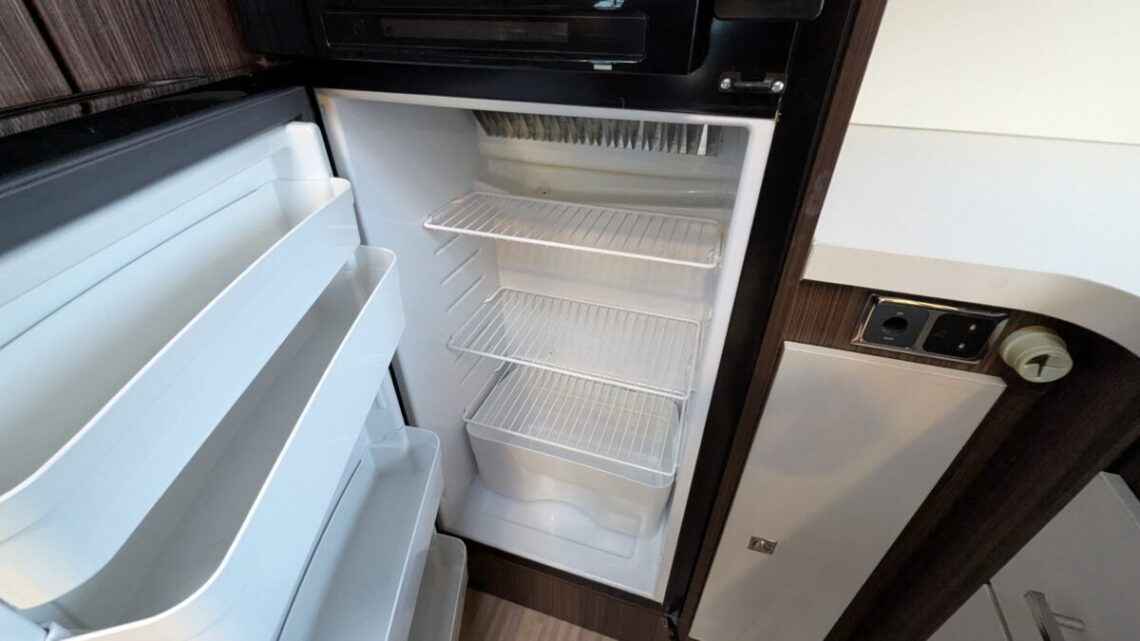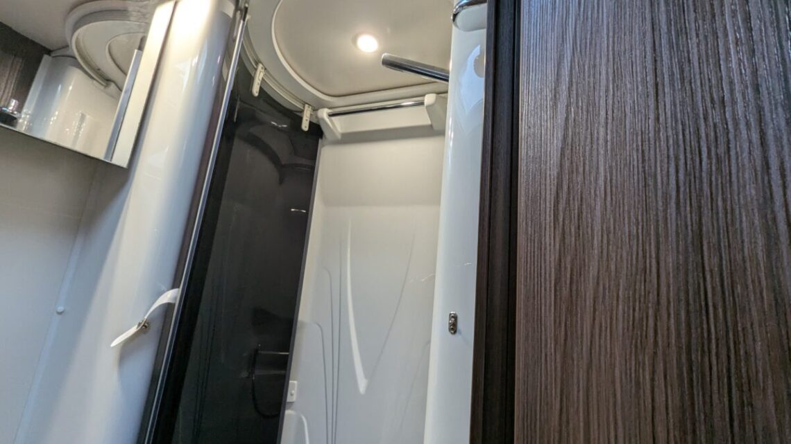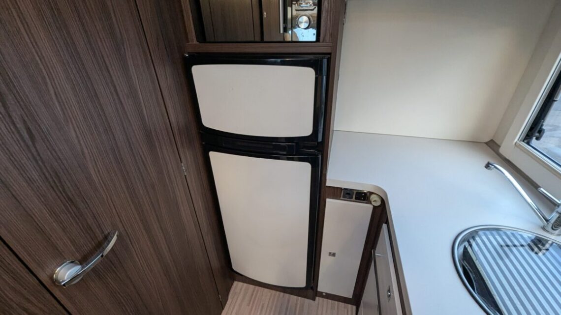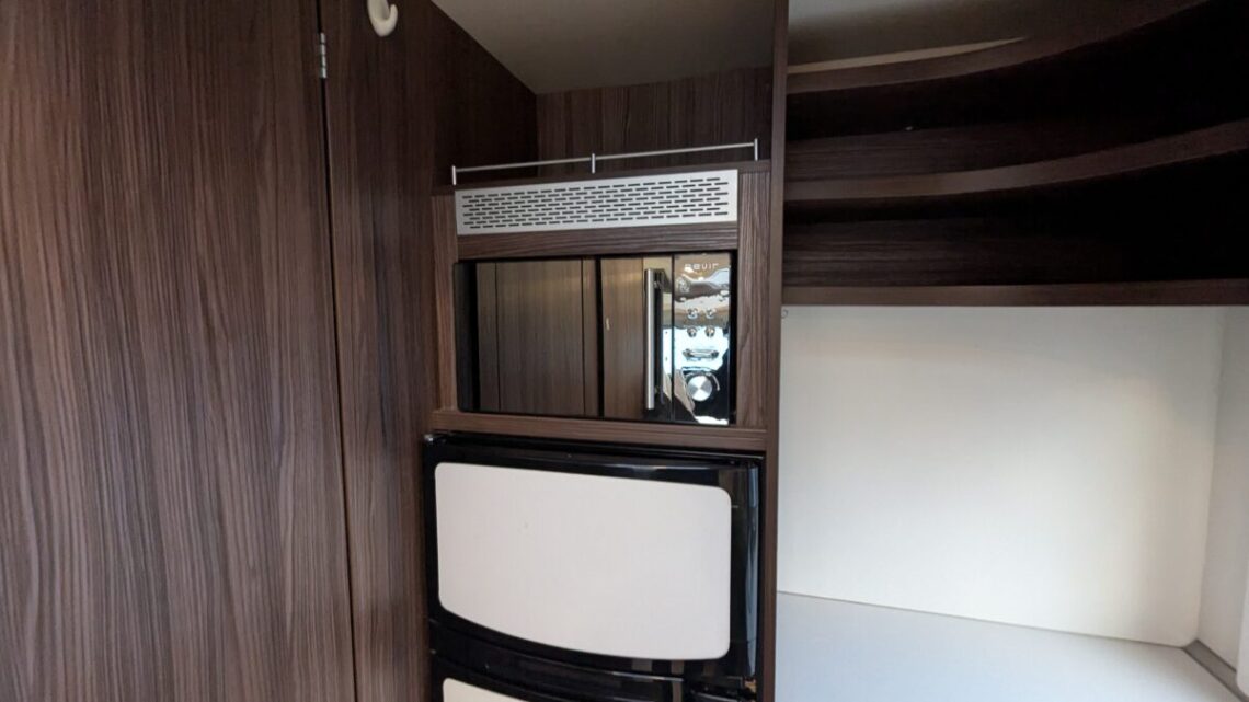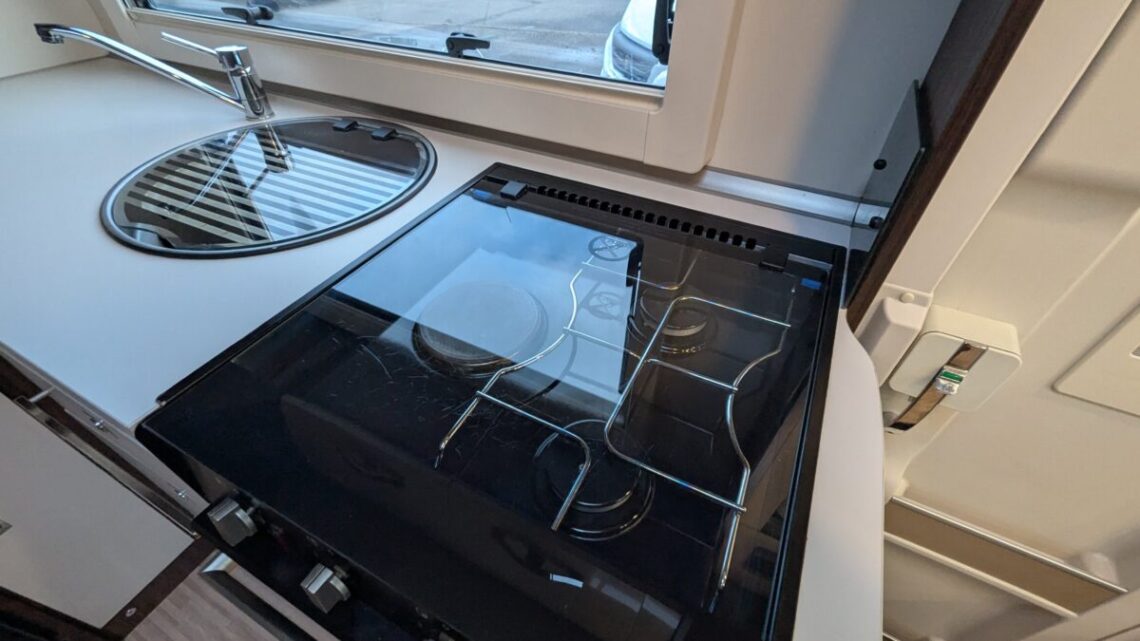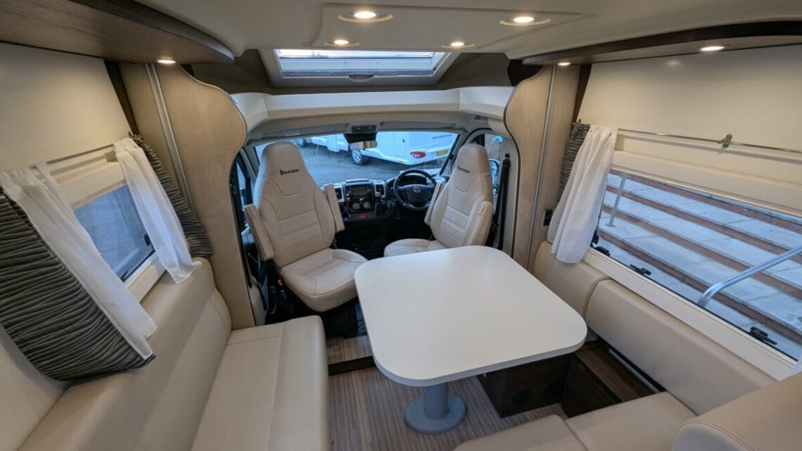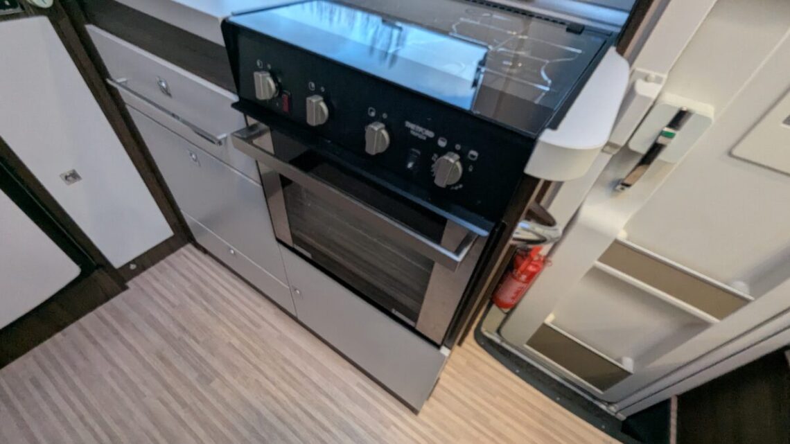 At the rear of the vehicle, you’ll find a well-appointed kitchen complete with generous worktop space, ample storage, and all the appliances you need to prepare meals on the go. When evening arrives, an electric drop-down double bed lowers effortlessly from above, offering a comfortable sleeping area without compromising daytime space. The lounge seating can also be converted into an additional double bed, making the Mileo 202 a highly flexible 4-berth option suitable for guests or families.