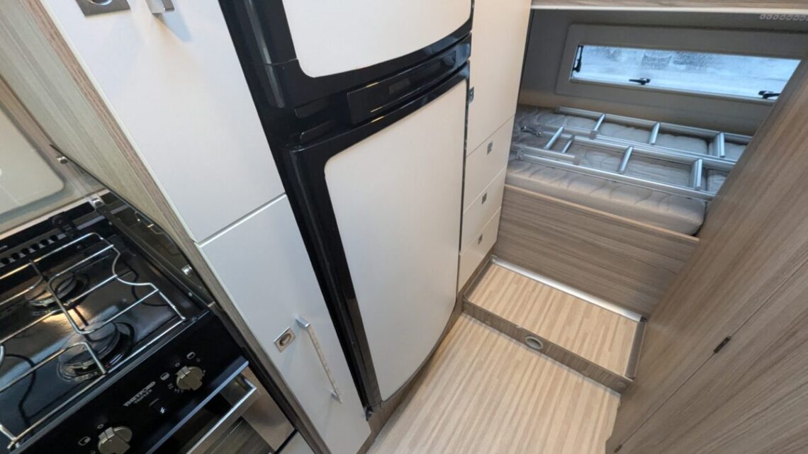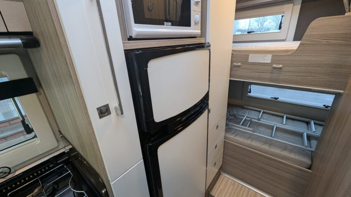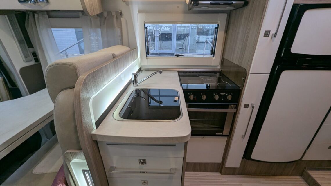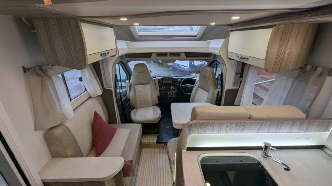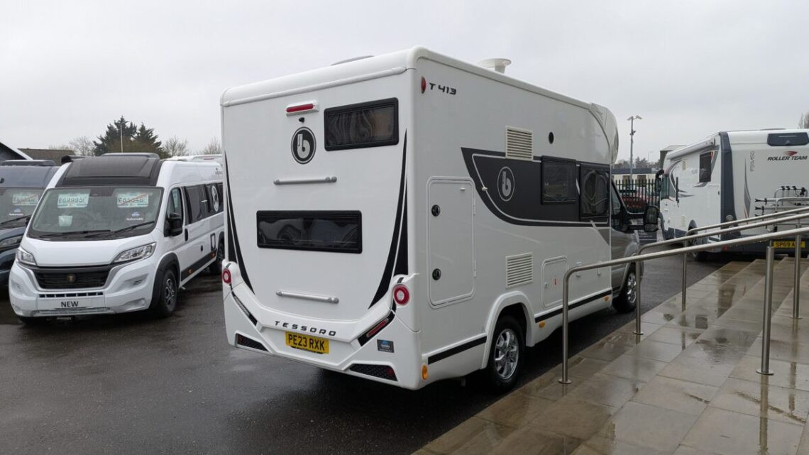 Built on the well regarded Ford Transit Chassis with 2.0l 170 Bhp Diesel Engine and an automatic gearbox this motorhome delivers effortless performance whether you’re cruising through scenic countryside or setting off on an extended touring adventure. Inside, the Tessoro T413 boasts a clever and flexible layout designed for modern family travel. Up front is a welcoming living and dining area with swivel cab seats, generous seating and a comfortable electric drop-down double bed that maximises living space by day. In the centre, a fully equipped kitchen features everything you need to cook on the go – hob, oven, grill, microwave and a tall fridge freezer – making family meals a pleasure whether you’re perched lakeside or exploring a new region. Opposite, you’ll find a well-appointed washroom with a separate shower and practical cassette toilet. This motorhome features useful extras such as, BBQ point, Shower point, awning all to make those outdoor days even more fun!