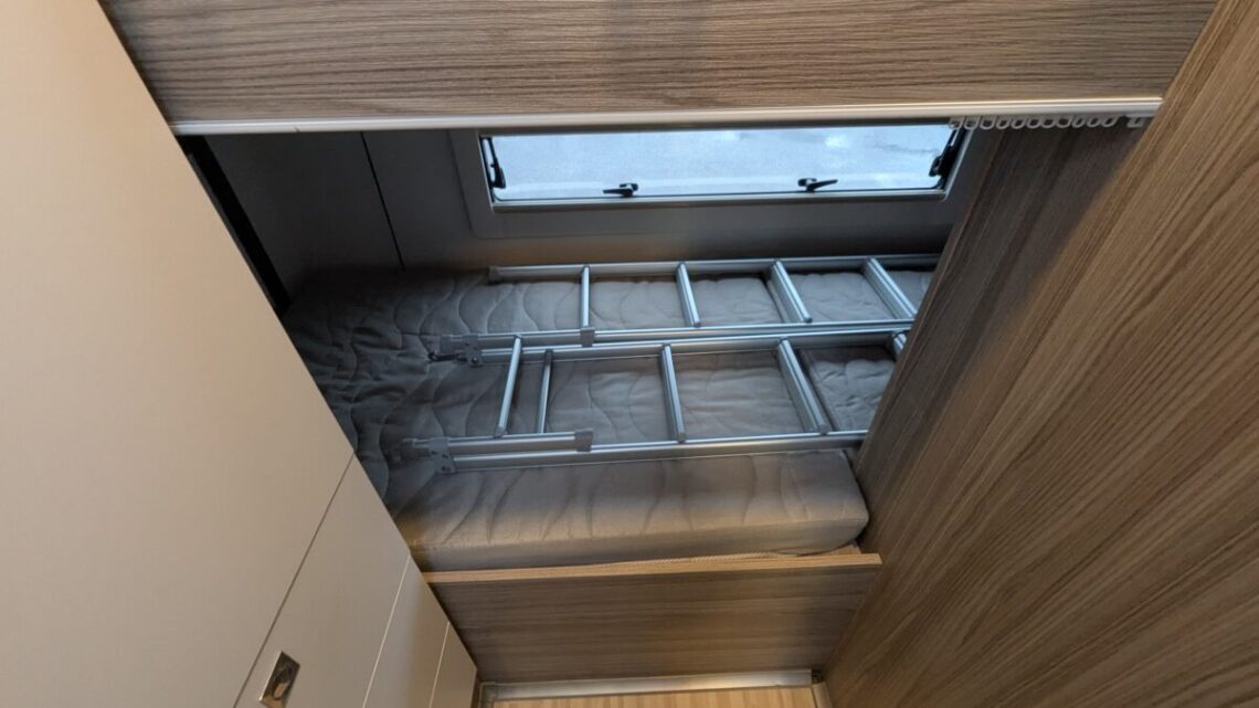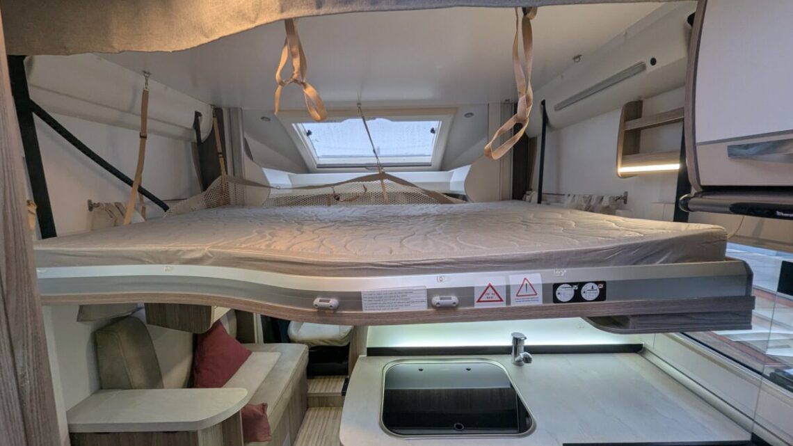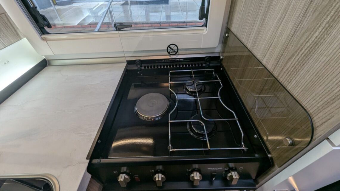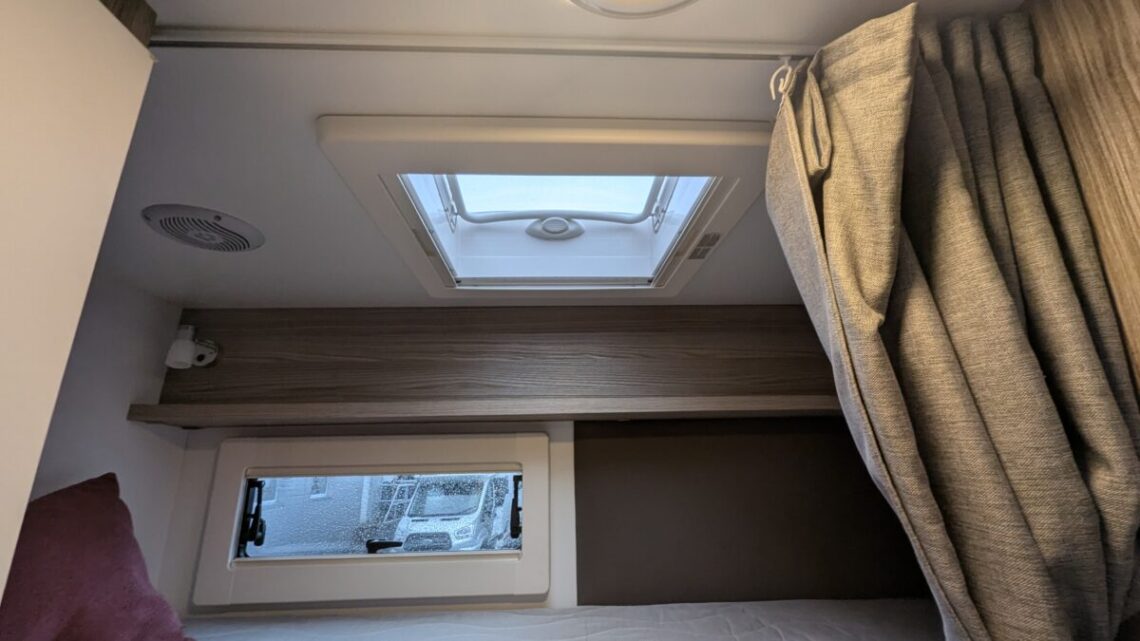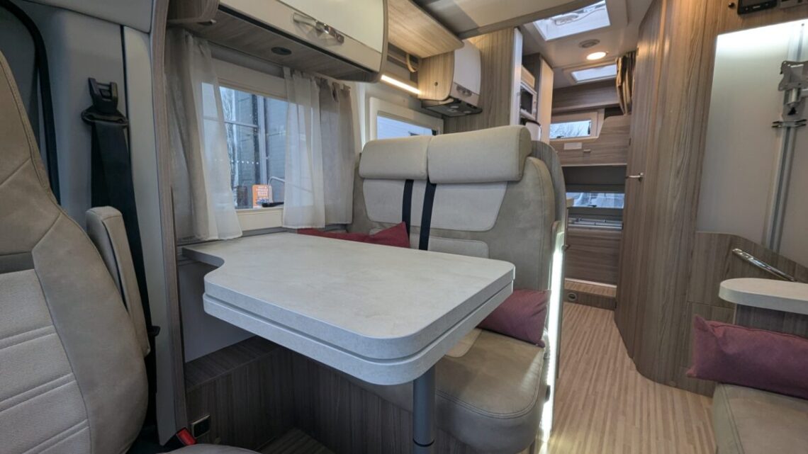 Built on the well regarded Ford Transit Chassis with 2.0l 170 Bhp Diesel Engine and an automatic gearbox this motorhome delivers effortless performance whether you’re cruising through scenic countryside or setting off on an extended touring adventure. Inside, the Tessoro T413 boasts a clever and flexible layout designed for modern family travel. Up front is a welcoming living and dining area with swivel cab seats, generous seating and a comfortable electric drop-down double bed that maximises living space by day. In the centre, a fully equipped kitchen features everything you need to cook on the go – hob, oven, grill, microwave and a tall fridge freezer – making family meals a pleasure whether you’re perched lakeside or exploring a new region. Opposite, you’ll find a well-appointed washroom with a separate shower and practical cassette toilet. This motorhome features useful extras such as, BBQ point, Shower point, awning all to make those outdoor days even more fun!