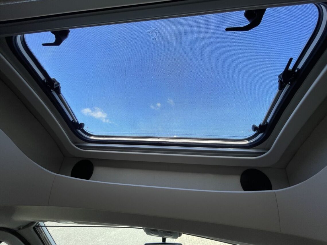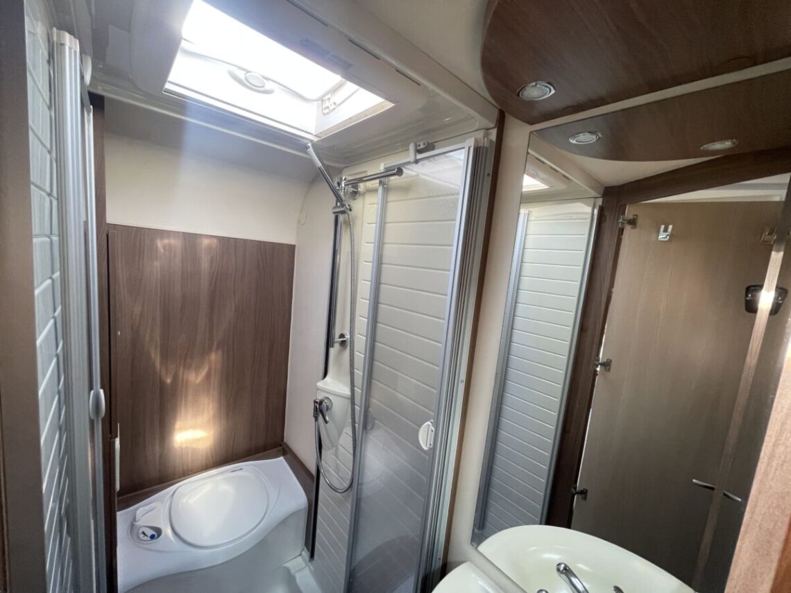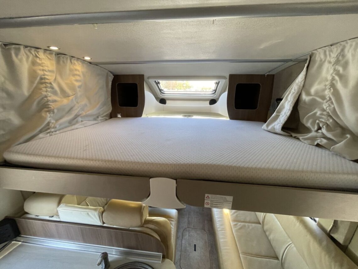 Built on the robust Fiat Ducato chassis, the Ixeo IT700 is powered by a 2.3L Multijet engine, providing reliable performance and efficient fuel consumption. Measuring 6.99 meters in length, 2.34 meters in width, and 2.75 meters in height, the Ixeo IT700 is compact enough to navigate various terrains while offering ample interior space. The motorhome features a low-profile design, enhancing its aerodynamic efficiency and overall aesthetic appeal. Inside, the Ixeo IT700 is designed to accommodate up to four people comfortably, with four belted travel seats. The interior layout includes a fixed rear French double bed and an electronically adjustable drop-down double bed over the lounge area, providing flexible sleeping arrangements. The kitchen is equipped with modern appliances, including a three-burner hob, a large slimline fridge, and a gas oven and grill, making meal preparation convenient and enjoyable.