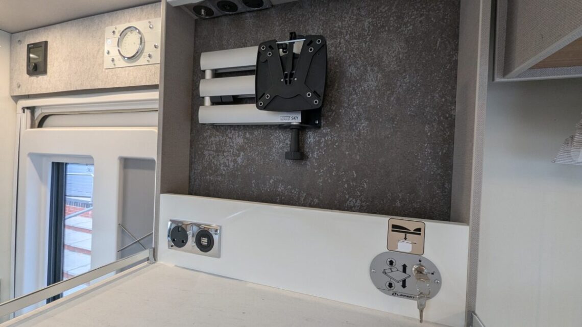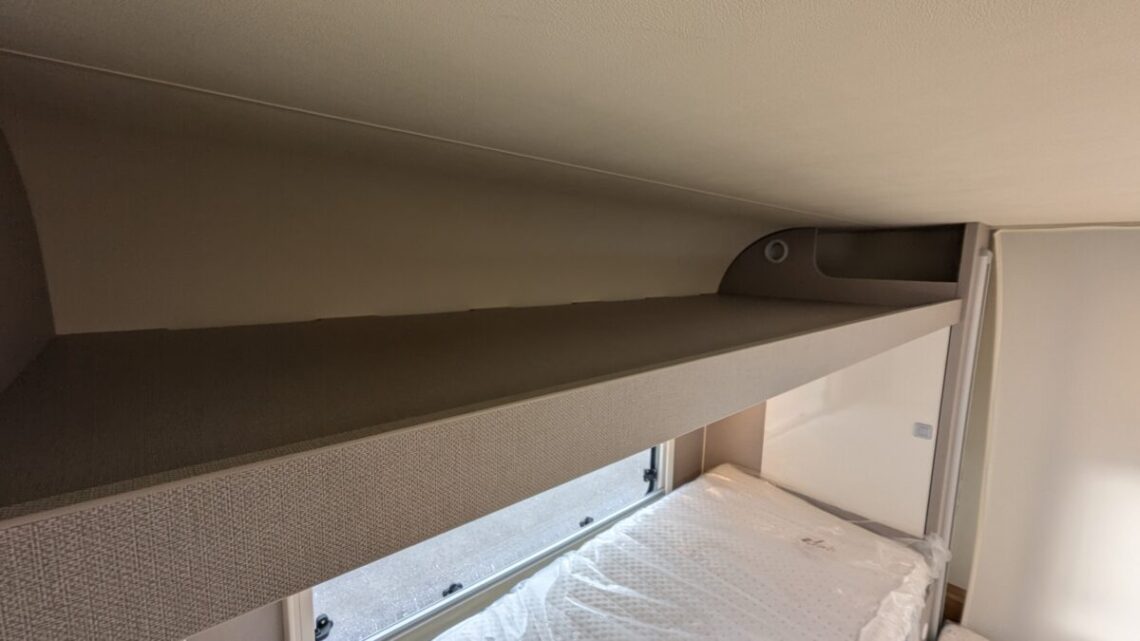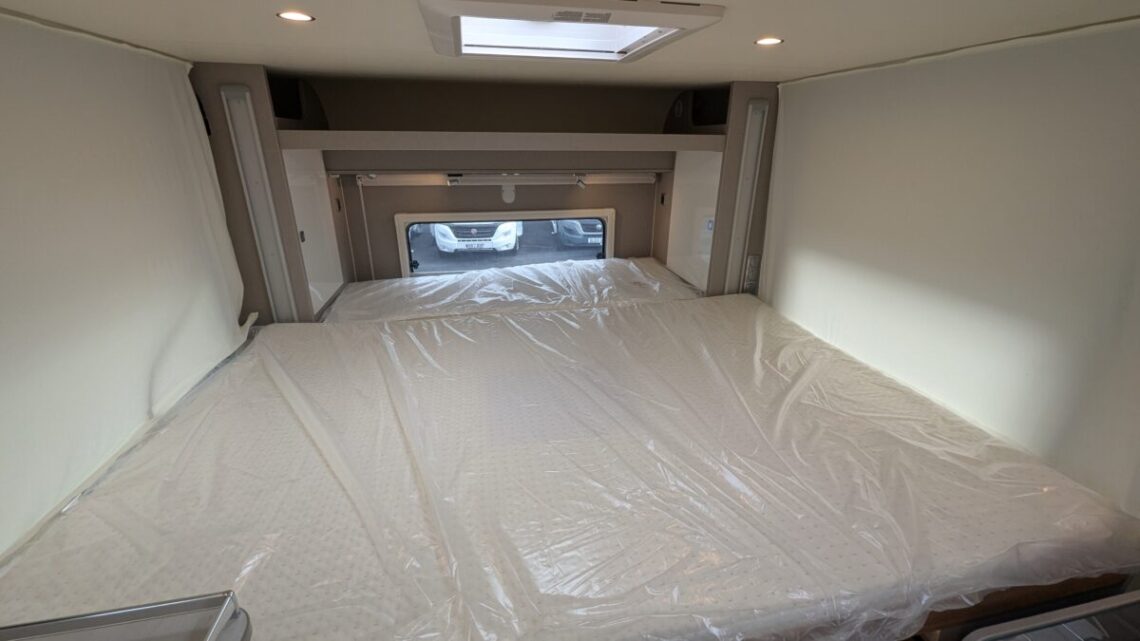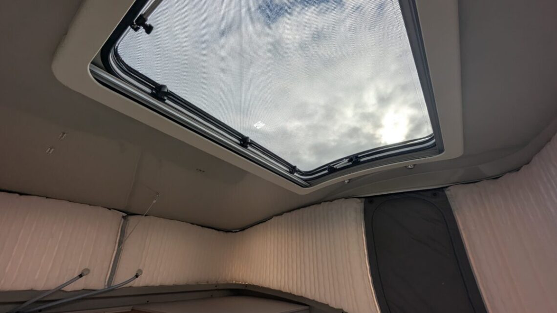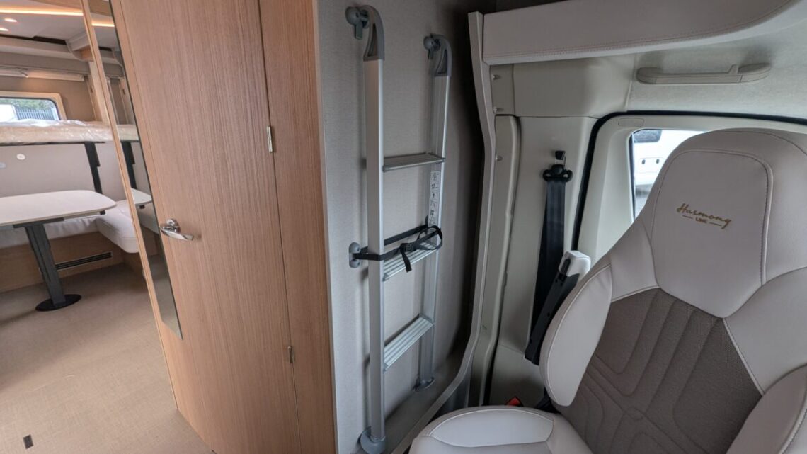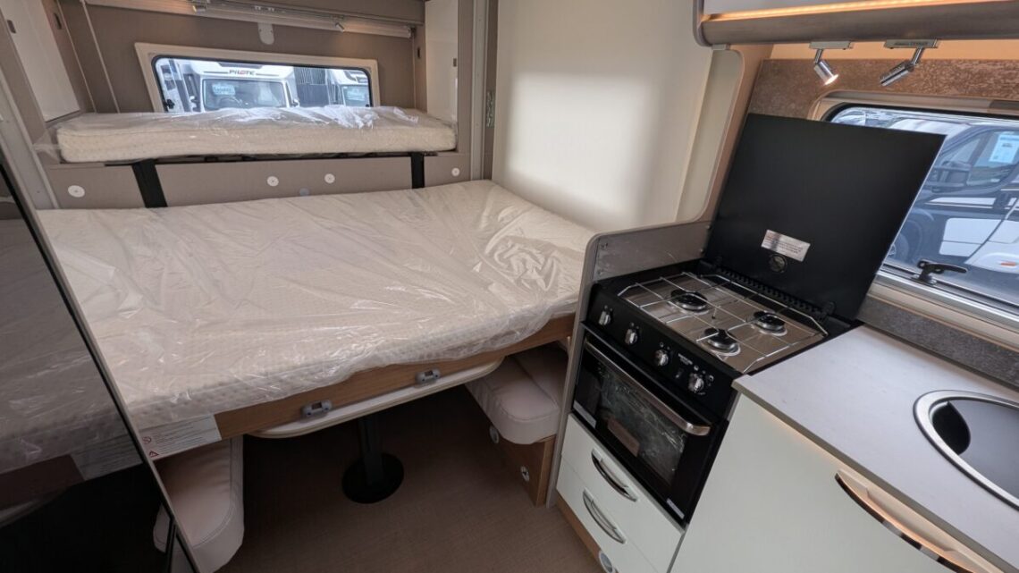 The Lyseo Gallery T649G is like stepping into a modern loft apartment that just happens to travel with you. Its most striking feature is the innovative inflatable “gallery” roof: when you park up, the roof rises in under two minutes, revealing a bright, full-height upstairs bedroom. This isn’t a cramped bunk—it’s a true second floor, with a staircase leading up to a spacious, light-filled retreat where you can stretch out, read, or gaze at the stars through the skylight.