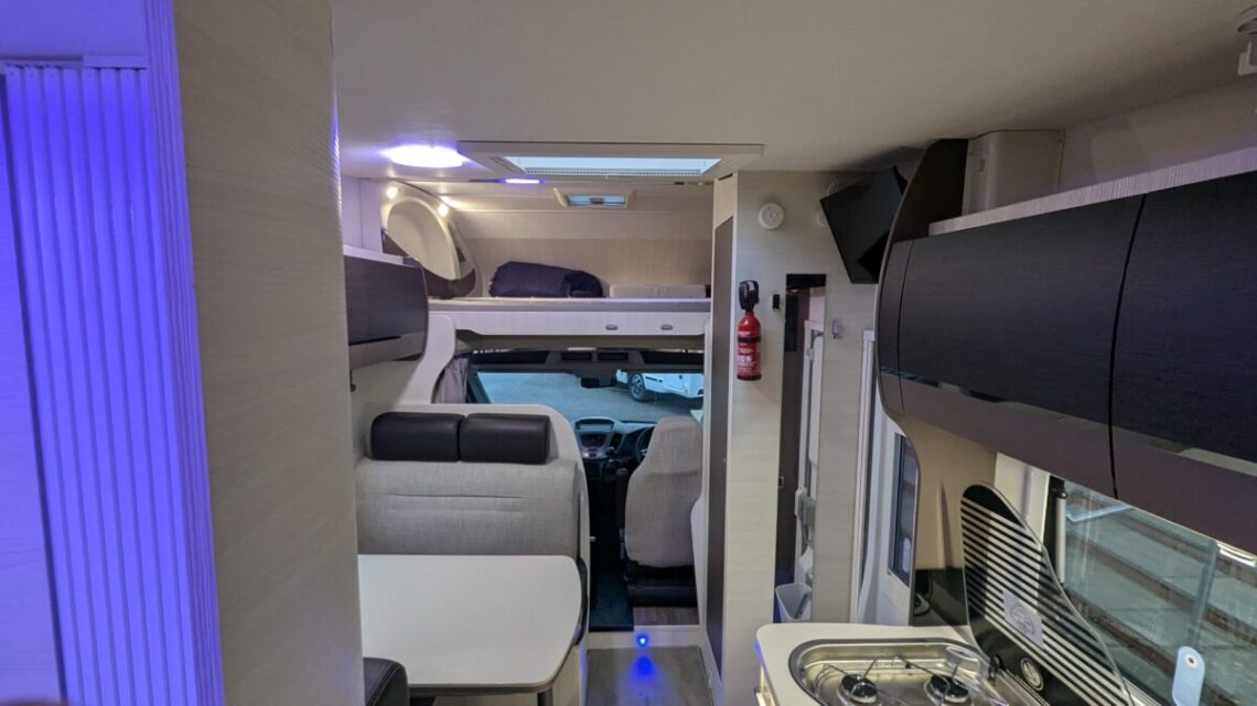 Driving the Chausson Flash C646 is smooth and comfortable thanks to the Ford Transit’s 2.0-litre diesel engine and six-speed manual gearbox. Features such as cab air-conditioning, cruise control, and modern media connectivity help make long journeys more enjoyable. Despite offering full family accommodation, the motorhome remains easy to manoeuvre and park thanks to its compact footprint.