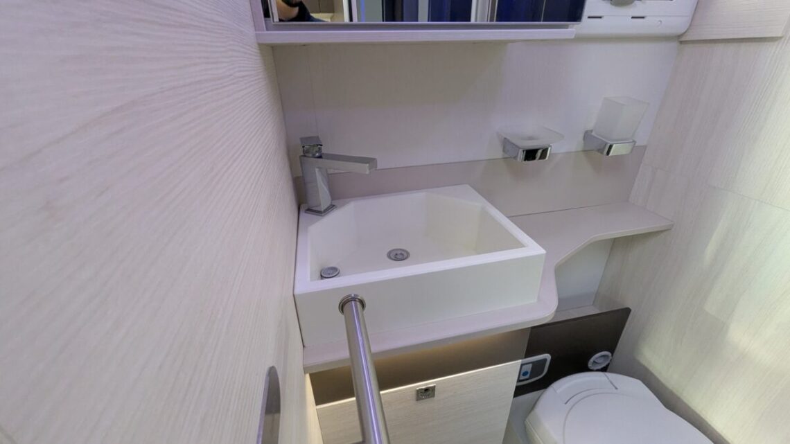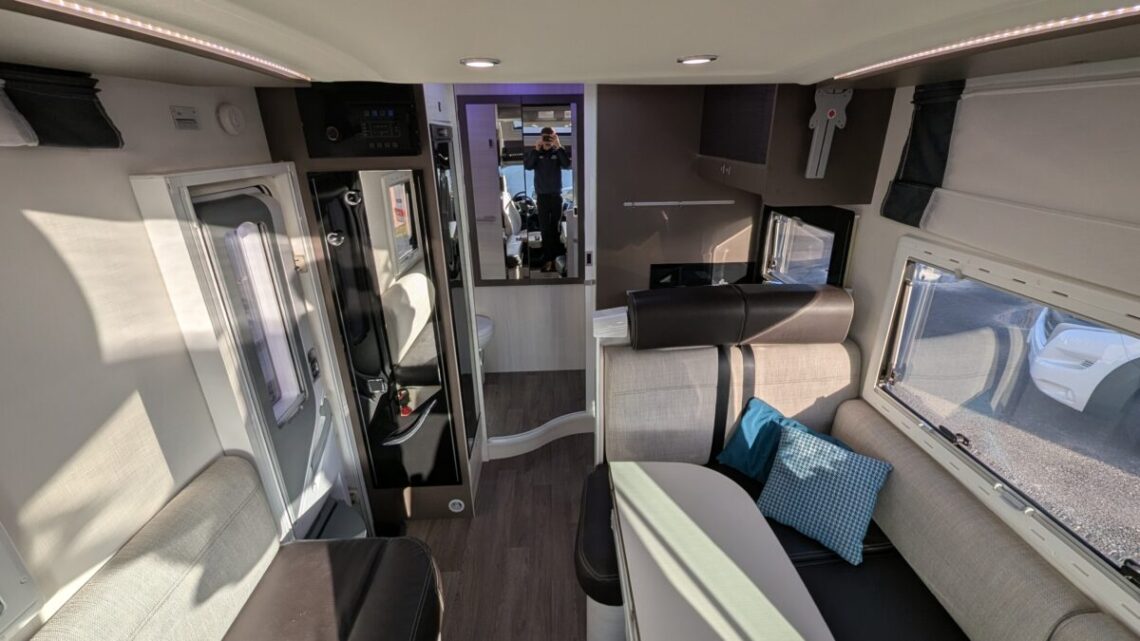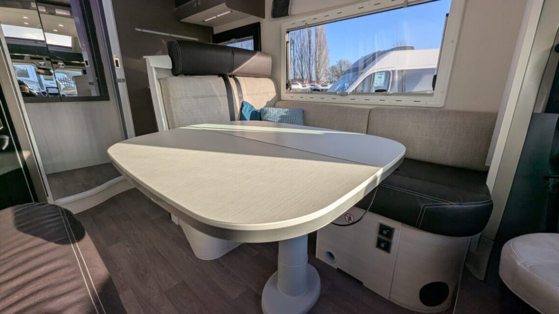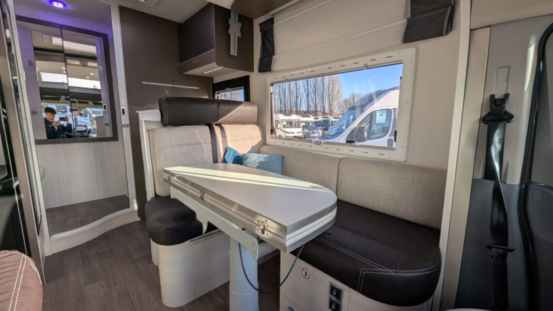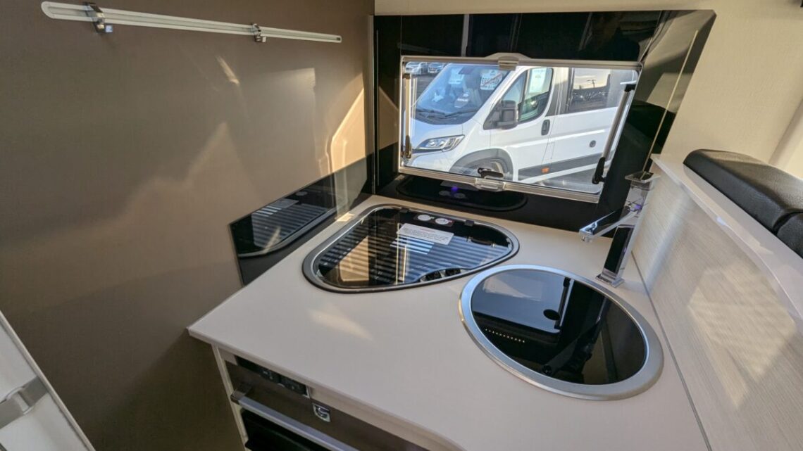 Inside, the Welcome 530 features a bright and welcoming living area with a smart, functional layout. The lounge provides a comfortable space to relax and easily converts into a sleeping area, making it well suited for both short breaks and longer trips. Large windows allow plenty of natural light, creating an open and airy feel throughout. The kitchen is well equipped for life on the road, offering a hob, sink, fridge and generous storage for food and utensils. This allows you to enjoy home-style cooking wherever your travels take you. The washroom is practical and private, providing the convenience of a self-contained motorhome.