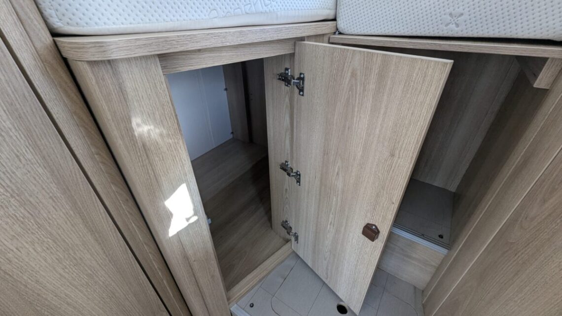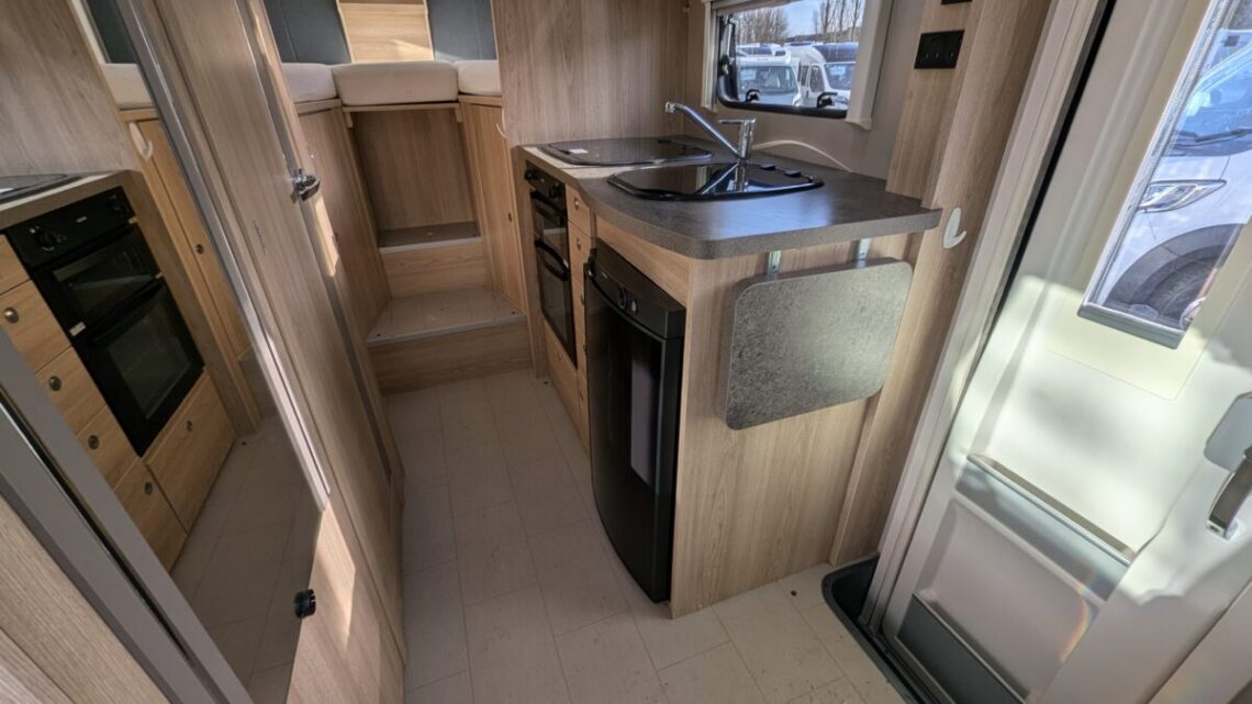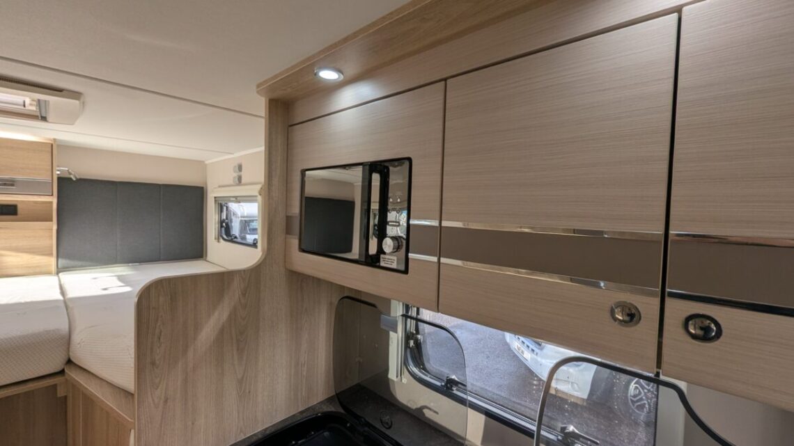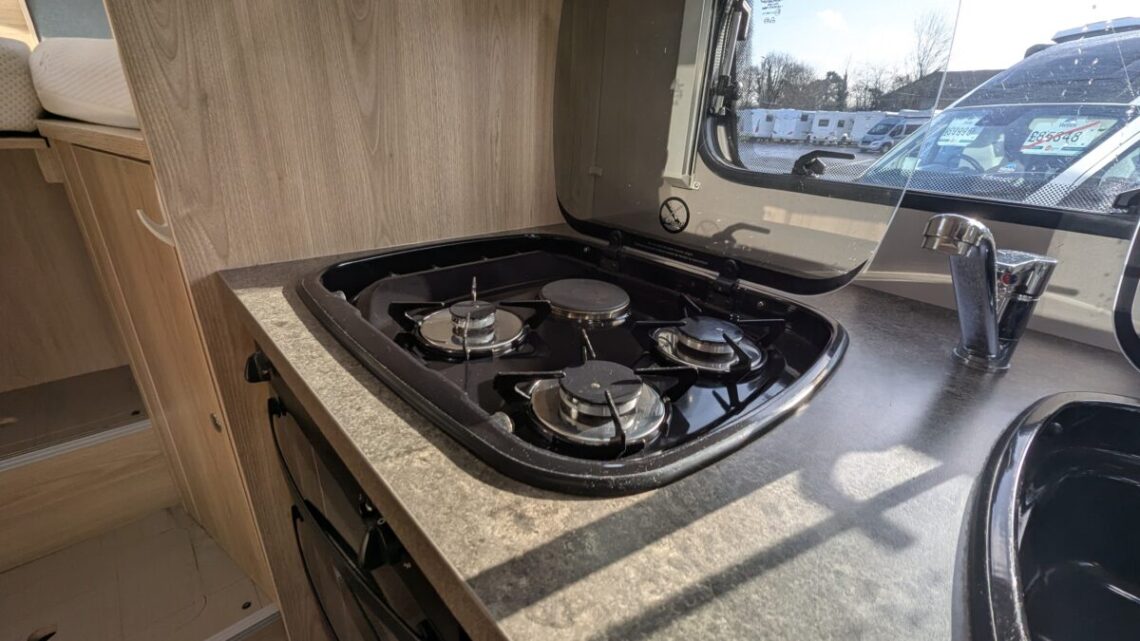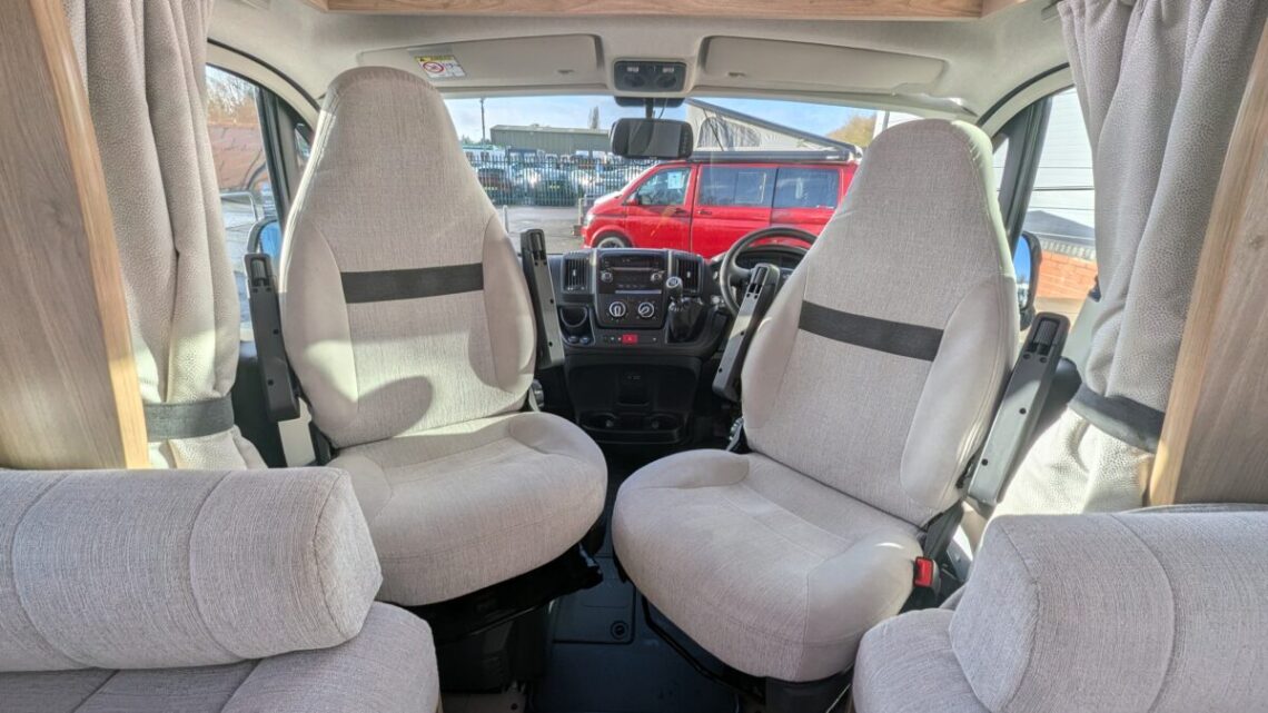 This Stunning example from Elddis features many useful extras such as, reversing camera, awning, cruise control and air-conditioning all to make those fun adventures even more enjoyable! Built on the reliable Peugeot Boxer chassis with a 2.2L 140 bhp engine and engineered for smooth driving. Step inside to discover a smart interior layout designed with real touring life in mind. At the rear you’ll find a raised sleeping area that can be arranged as two comfortable singles or a luxurious double bed, with a large garage/storage space conveniently accessed from the outside — ideal for bikes, luggage or outdoor gear. Up front, the lounge seating with fold-away travel seats easily converts into a further double sleeping area if needed, giving flexible accommodation for up to four travellers.