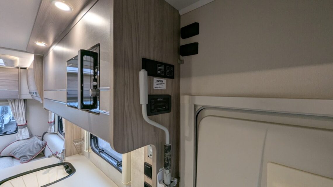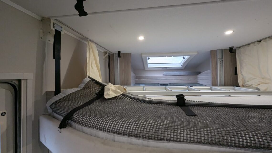 The Elddis 196 is a 6‑berth motorhome with a very family‑friendly, flexible layout. At the rear, it features a spacious lounge with two sofas that convert into a comfortable double bed. Moving forward, the central kitchen sits on one side with a hob, oven/grill, fridge, microwave, and sink, while the washroom is opposite, containing a shower, cassette toilet, and basin. Toward the front, there’s a four‑seat dinette with belted travel seats that also converts into another double bed. Above this dinette is an electric drop‑down double bed, providing the third sleeping area. This motorhome also features useful extras such as, external shower and BBQ point, solar panel and Heated Cab seats!