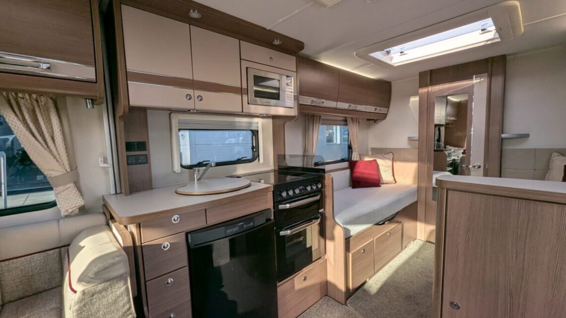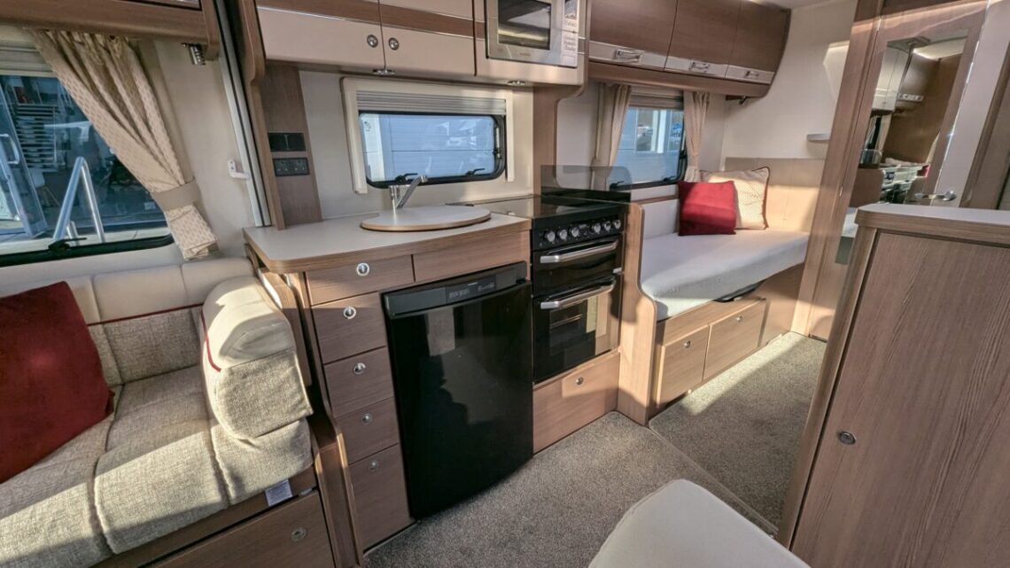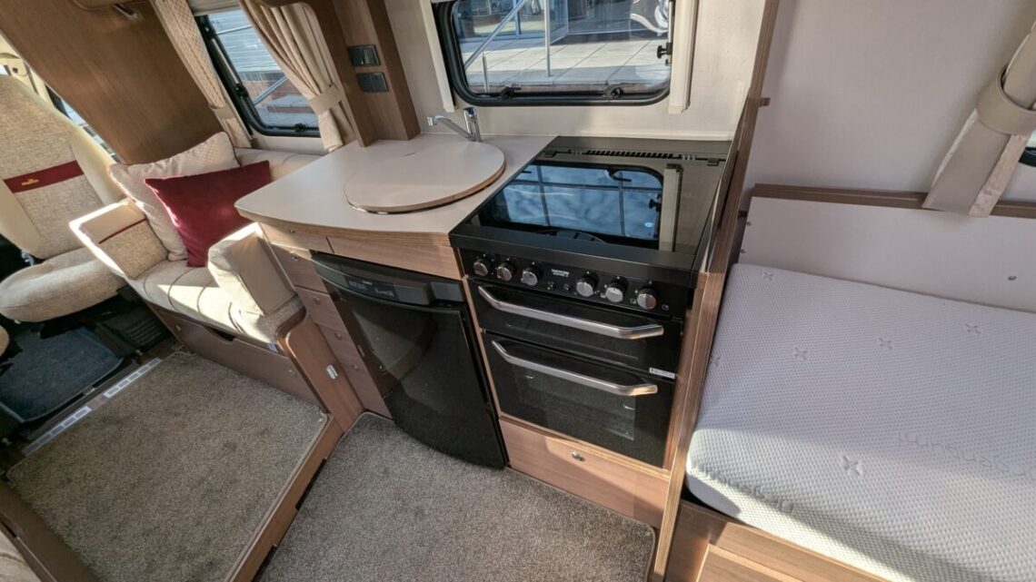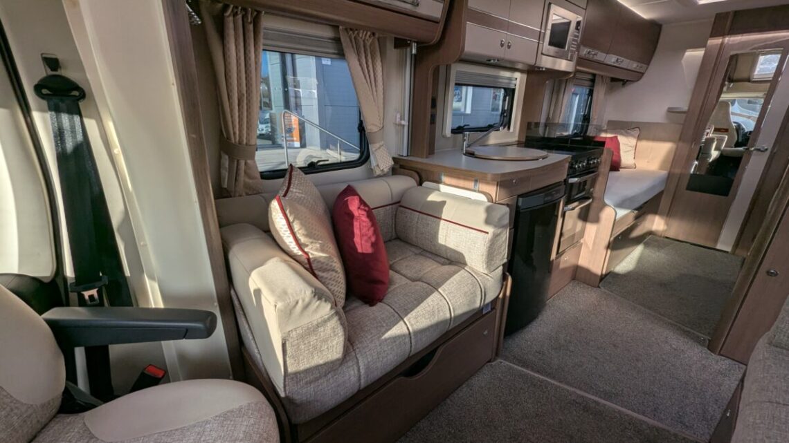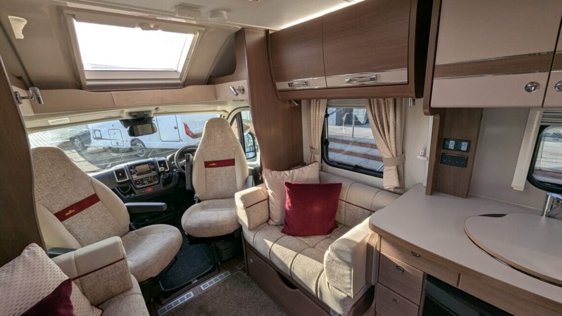 Enjoy year-round adventures with Alde wet central heating, a fully equipped kitchen featuring oven, grill, hob, microwave, and fridge/freezer, plus swivel cab seats for a sociable living space. Built on the reliable Peugeot Boxer chassis, this motorhome combines smooth driving with modern convenience.