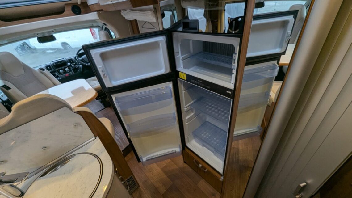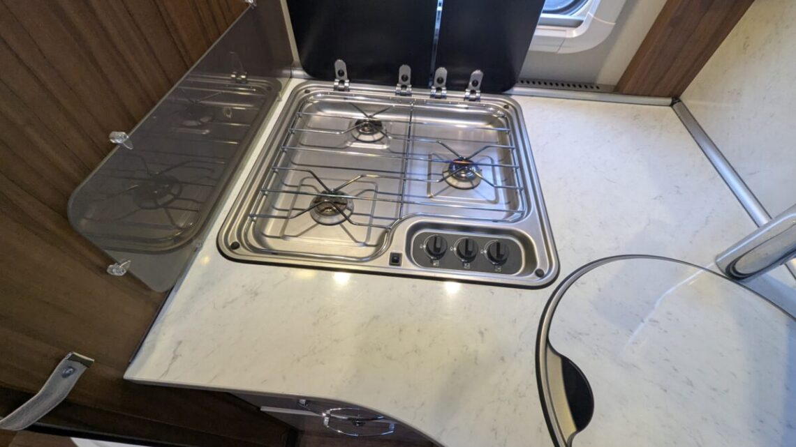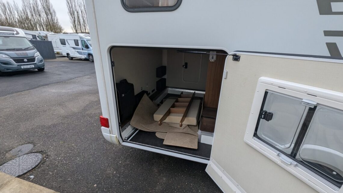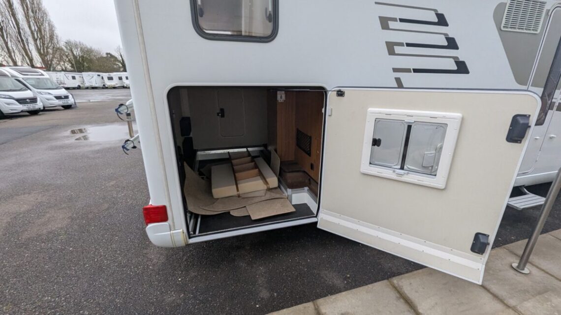 The central kitchen provides everything you need for cooking on the go, including a hob, grill, and a large fridge/freezer. There’s also a generous rear garage for bikes, outdoor gear or holiday essentials.