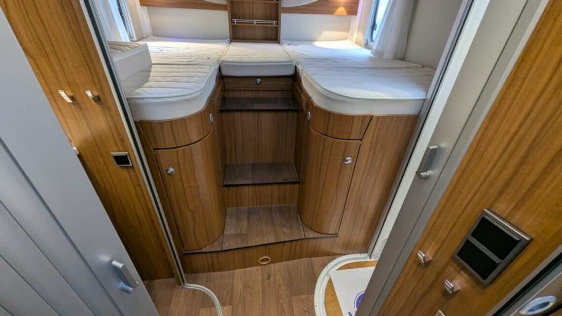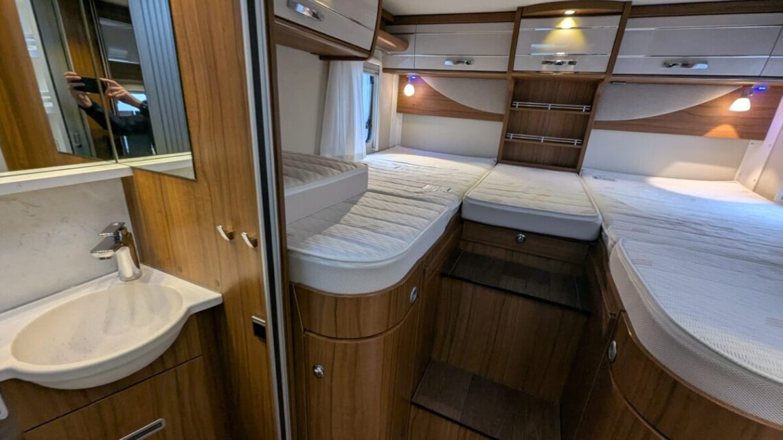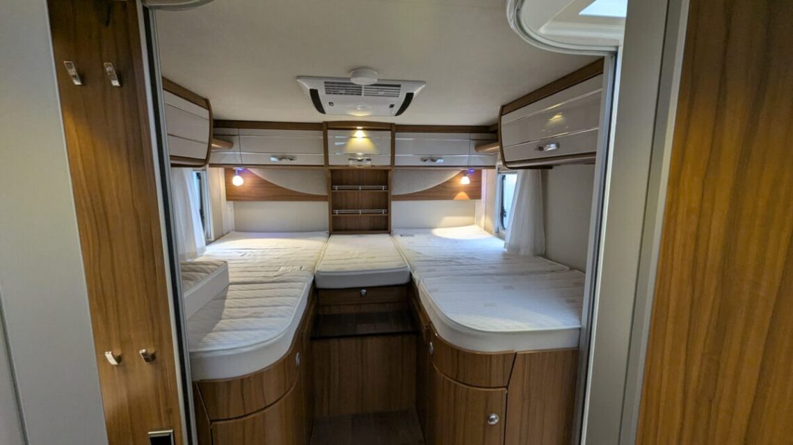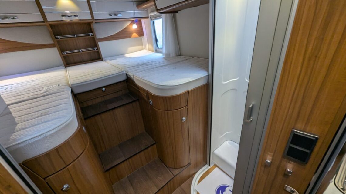 Our example has both the optional drop down double bed and the single dinette conversion, making it a 5 berth.