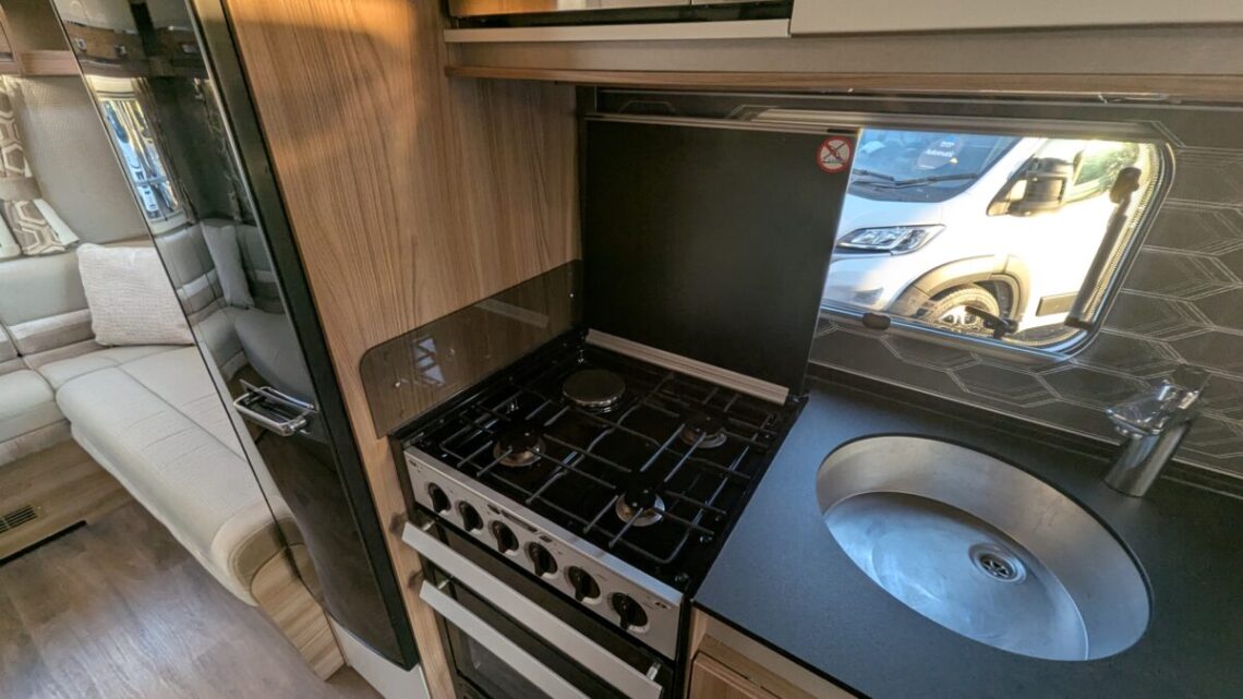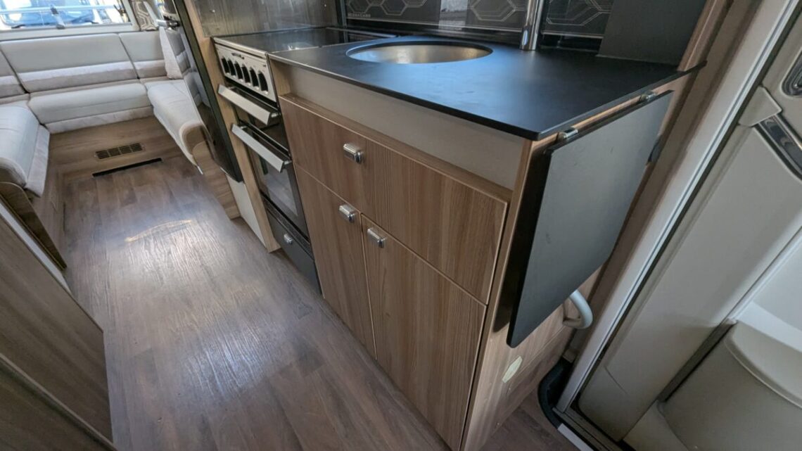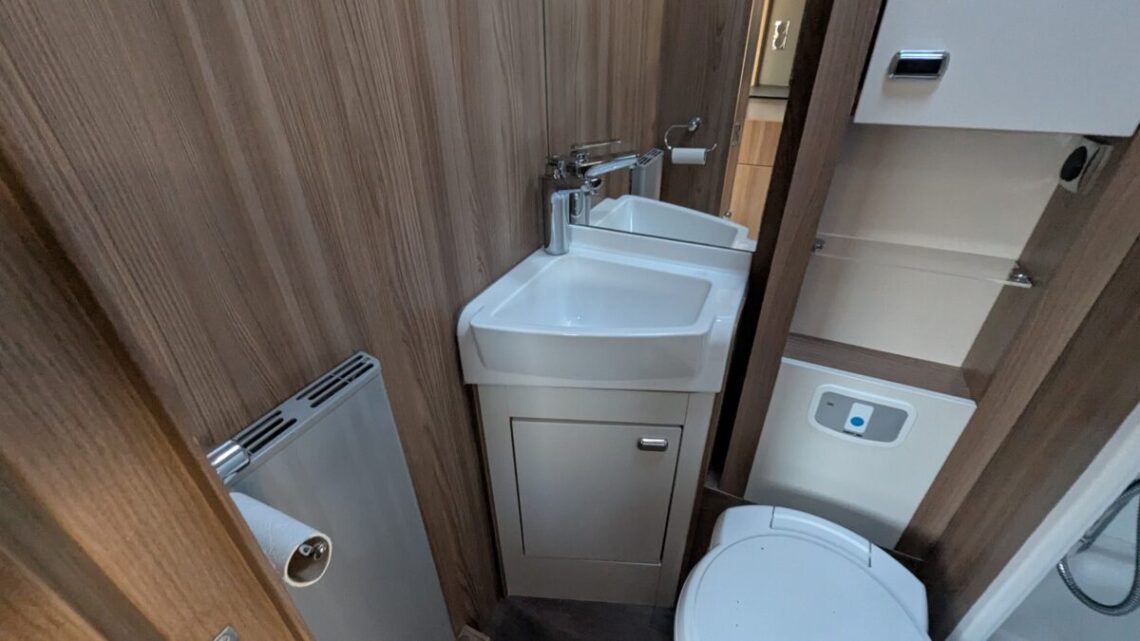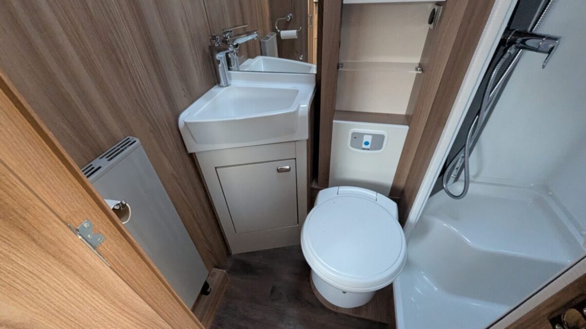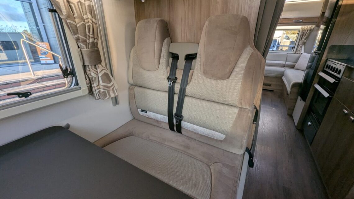 The 6-berth and 6-belt layout is cleverly designed to maximise comfort and flexibility, offering a generous rear lounge that easily converts into a large double bed, a drop-down double over the lounge, and a front dinette that transforms into an additional bed. The central kitchen is impressively equipped with a full oven and grill, hob, microwave, and ample storage, making meal preparation simple and enjoyable wherever your travels take you. Opposite, the washroom includes a separate shower, washbasin, and cassette toilet, ensuring comfort and convenience on the road.