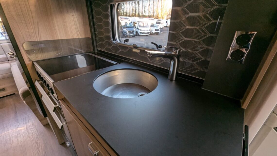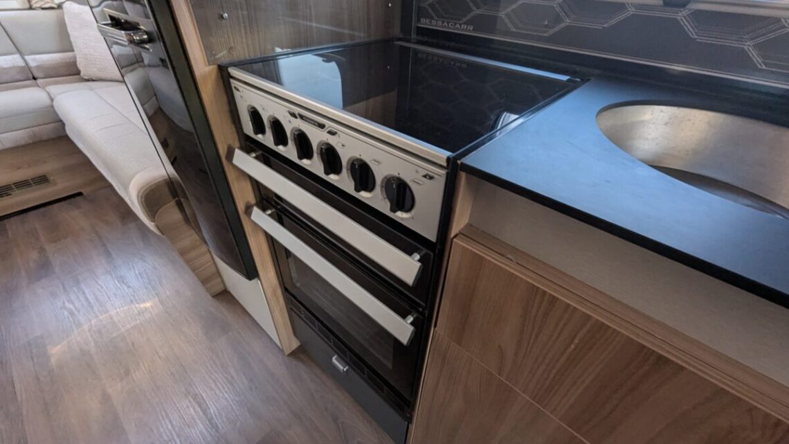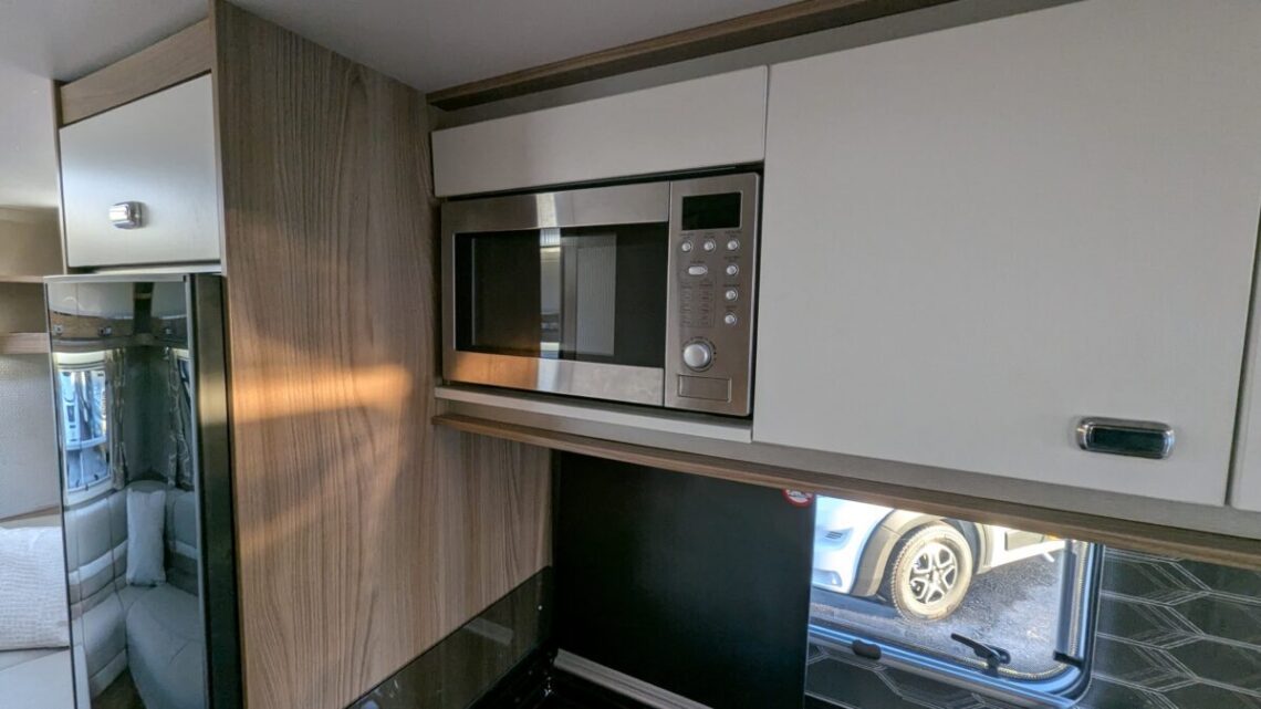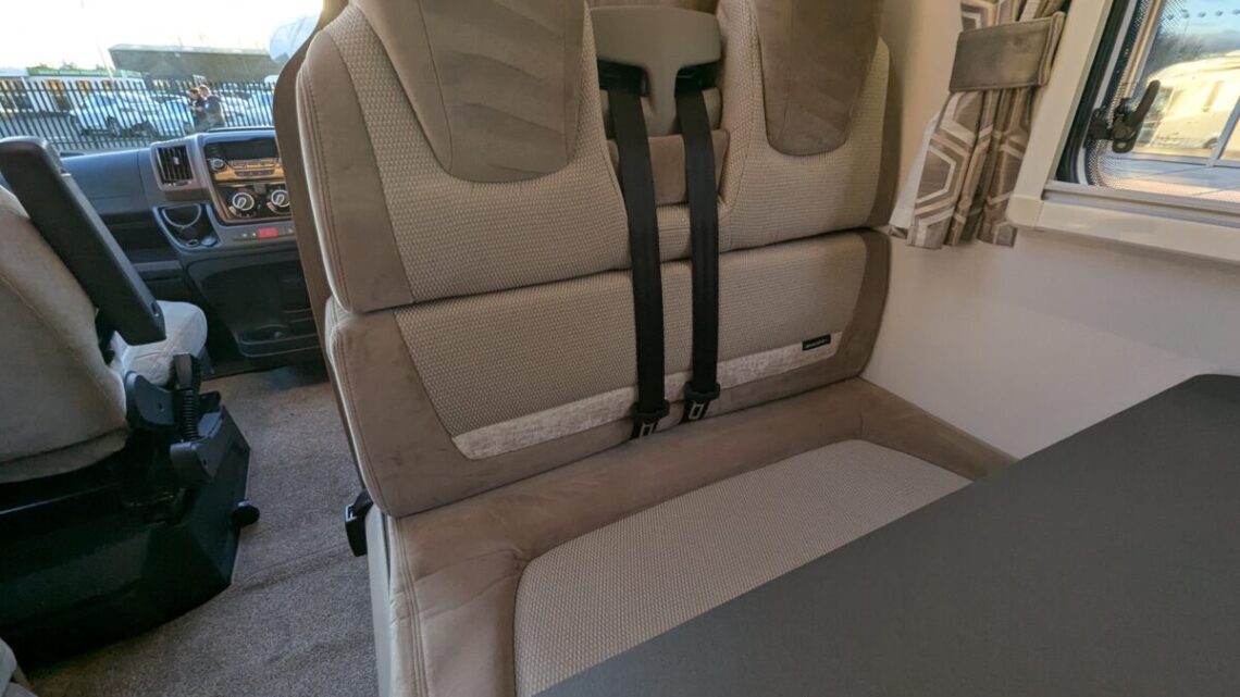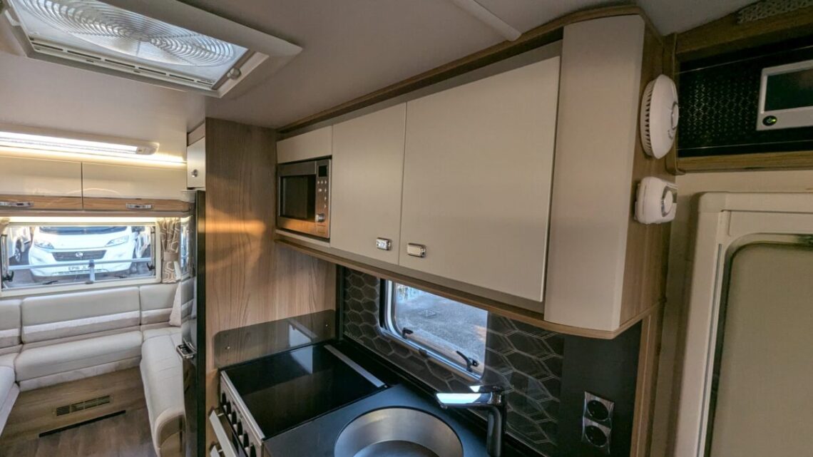 The 6-berth and 6-belt layout is cleverly designed to maximise comfort and flexibility, offering a generous rear lounge that easily converts into a large double bed, a drop-down double over the lounge, and a front dinette that transforms into an additional bed. The central kitchen is impressively equipped with a full oven and grill, hob, microwave, and ample storage, making meal preparation simple and enjoyable wherever your travels take you. Opposite, the washroom includes a separate shower, washbasin, and cassette toilet, ensuring comfort and convenience on the road.