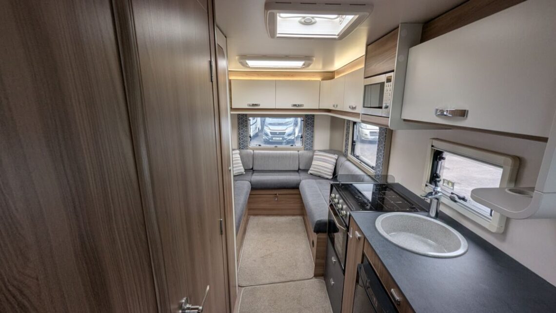 Built on a reliable Fiat Ducato chassis with a responsive diesel engine and smooth manual transmission, the Escape 622 delivers effortless driving and excellent road manners wherever your journey takes you. Inside, thoughtful layout and quality finishes create a welcoming sanctuary on wheels. The rear U-shaped lounge offers a relaxing space to unwind by day and easily converts into a cosy double bed by night — perfect for restful nights under the stars. A well-appointed kitchen with hob, oven and fridge gives you all the essentials to prepare delicious meals on the road, while the convenient washroom area ensures comfort and privacy throughout your trip. This vehicle features useful extras such as, BBQ pint and Wind out awning all to make those summer days even more enjoyable!